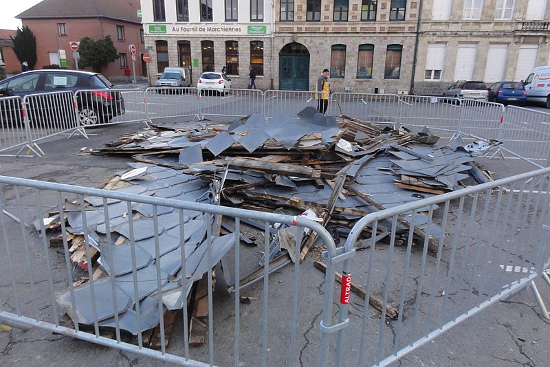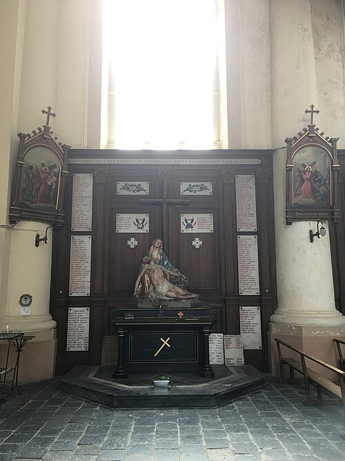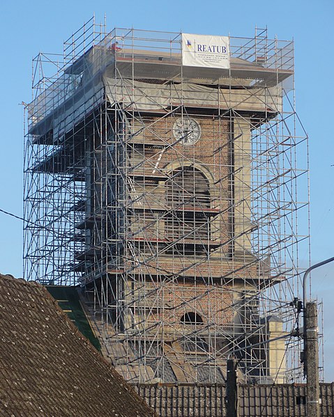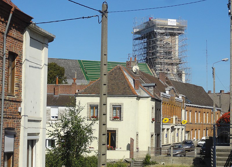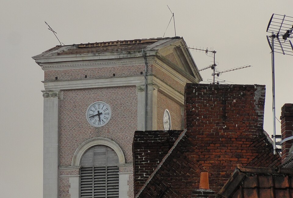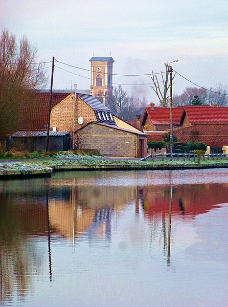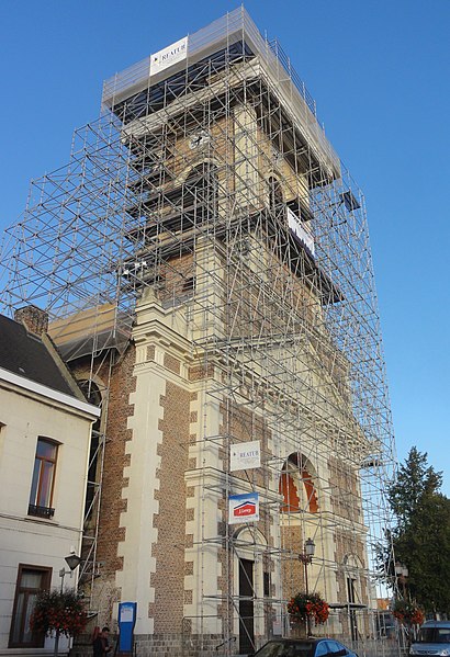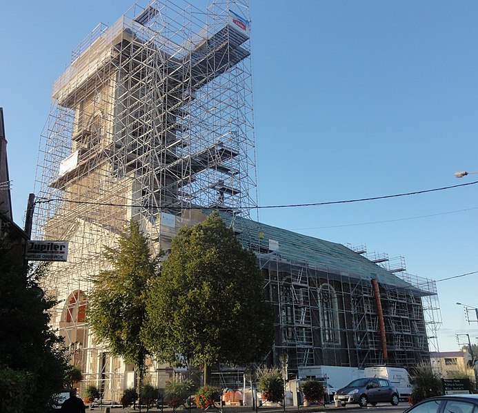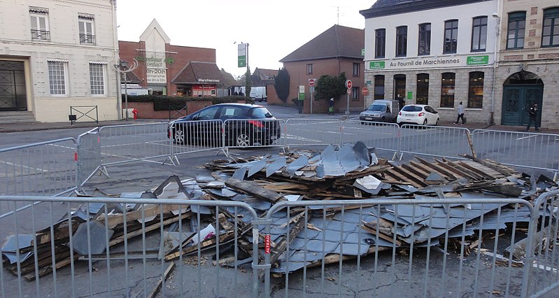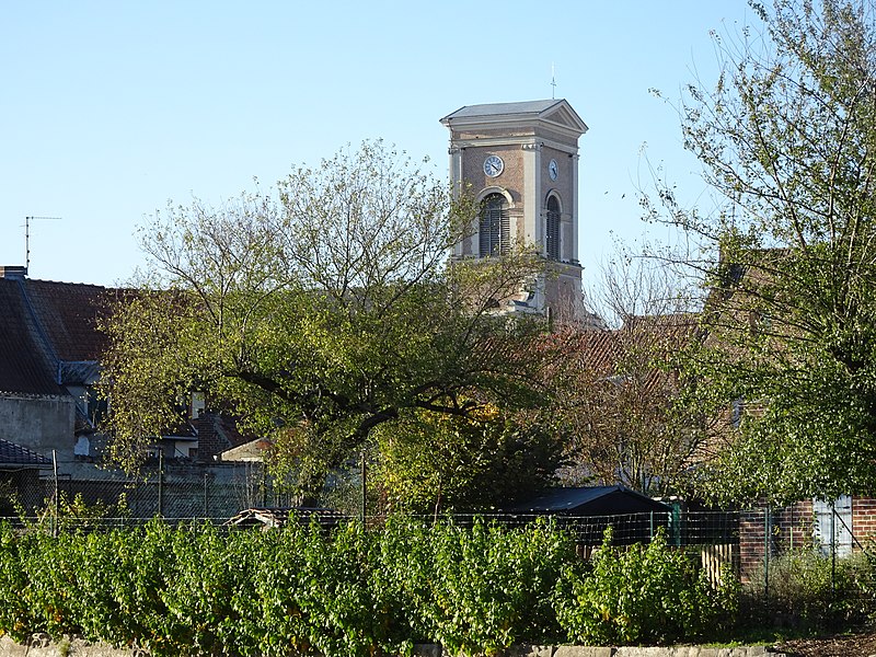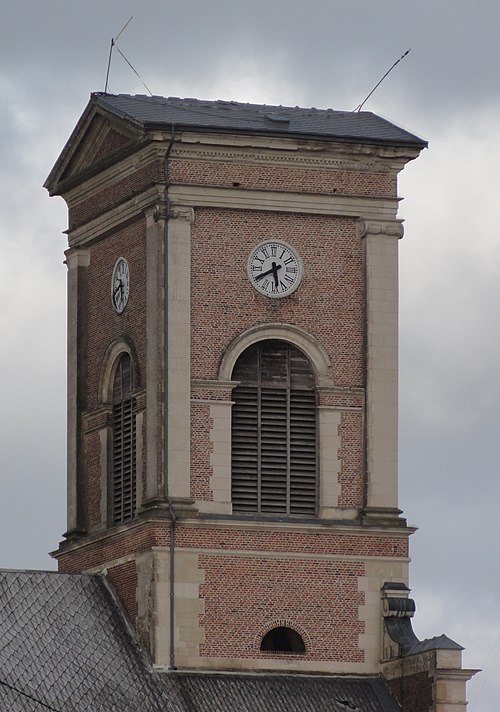 L’église Sainte-Rictrude, dédiée à sainte Rictrude, est située à Marchiennes dans le département du Nord. Depuis le Moyen Âge, une église paroissiale entourée d’un cimetière se trouvait à proximité de la place, à l’écart de l’abbaye bénédictine ; cette ancienne église, datée du XIVe ou du XVe siècle, fut fragilisée par la foudre qui atteignit son clocher en 1742 et jugée trop petite pour la population. Par ordonnance de l’évêque d’Arras en date du 8 octobre 1779, la pratique du culte y fut interdite et la reconstruction fut décidée la même année et confiée à l’architecte lillois Jacques-François-Joseph Lesaffre. Après le transfert du cimetière à l’extérieur de la ville en 1785, les travaux commencèrent à la fin de 1786 et le gros œuvre fut achevé lorsque, le 18 décembre 1790, la tour s’effondra sur la nef, stoppant les travaux. Après la Révolution, l’architecte lillois B. A. Dewarlez-Lepers prit en charge la reconstruction des voûtes et de la tour ; les travaux furent adjugés en 1811 et achevés en 1815, mettant fin, selon les sources, à trente-cinq ans sans lieu de culte. Dewarlez dessina également le mobilier dont seules subsistent les stalles et la clôture qui les surmonte, tandis que l’aménagement intérieur et l’ameublement furent complétés ou renouvelés tout au long du XIXe siècle. En 1864, l’architecte tourquennois Charles Maillard conçut une décoration architecturale intérieure plus riche : voûtes, arcs et baies furent ornés d’un décor de plâtre. La façade, dessinée par Lesaffre, repose sur un soubassement en grès et s’élève en brique, associée à des pierres calcaires blanches d’Hordain et du Tournaisis ; elle relève d’un courant néoclassique. La façade et le clocher furent restaurés en 1902‑1903 et, lors du conseil municipal du 20 mai 1903, la devise « Liberté, Égalité, Fraternité » fut gravée sur le fronton. L’édifice a été inscrit aux monuments historiques par arrêté du 6 mai 1992. Le clocher a fait l’objet d’une restauration en 2001; la façade a été refaite de mars à août 2011 pour un coût total de 181 354 €, réparti entre la réfection des pierres et la couverture, et l’orgue a été remis en état. Enfin, le 3 janvier 2018, la moitié nord de la toiture du clocher a été arrachée par la tempête Eleanor.