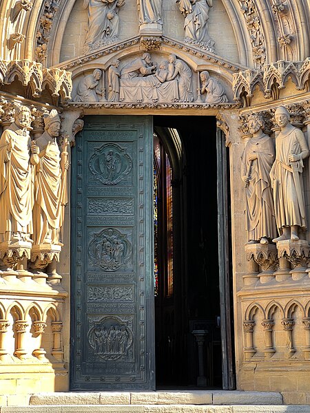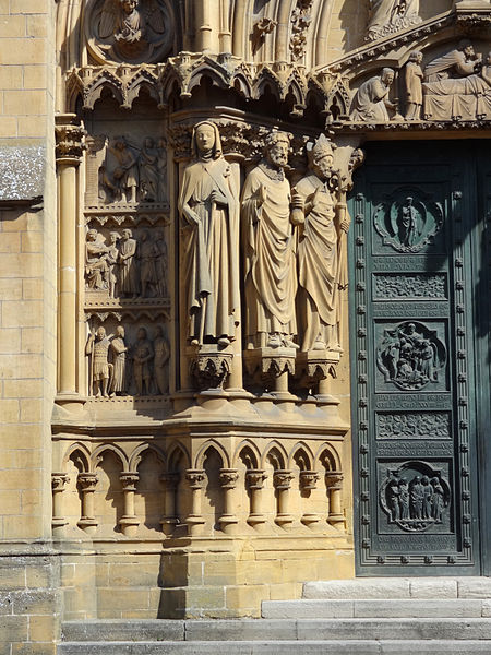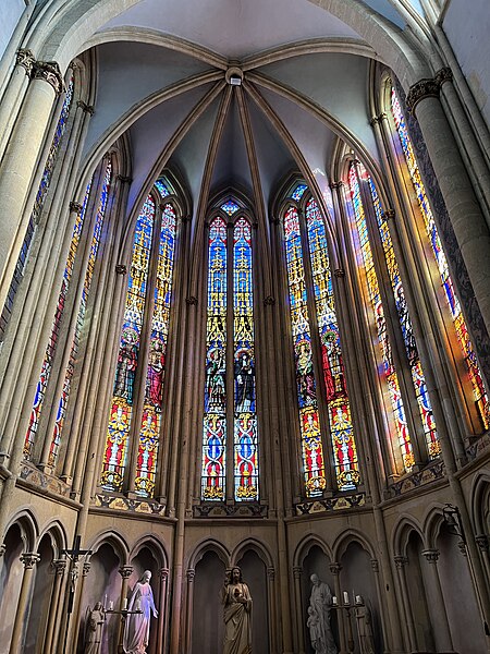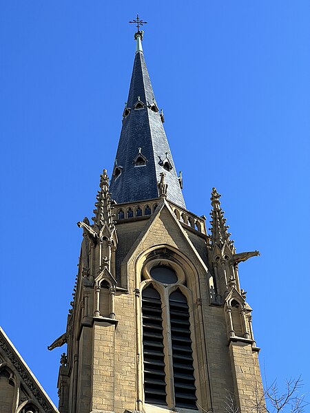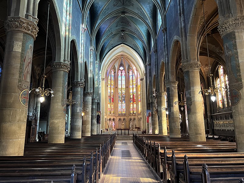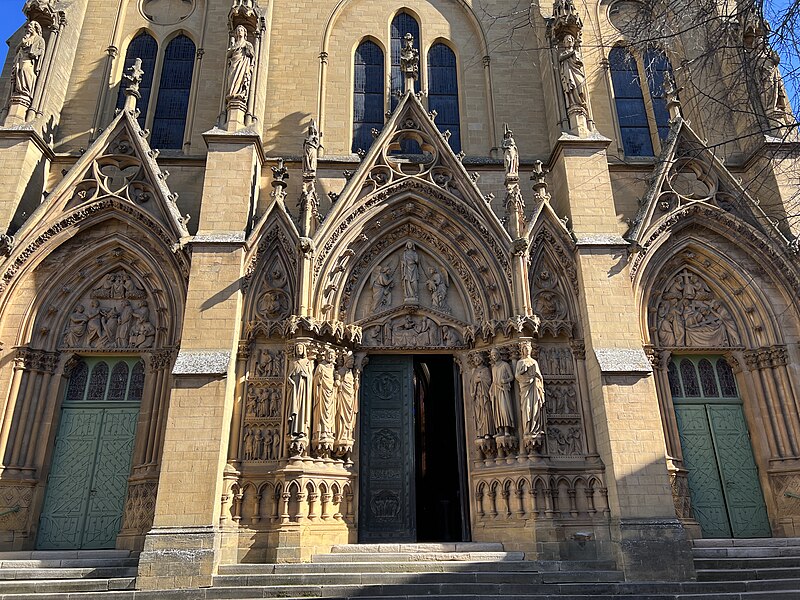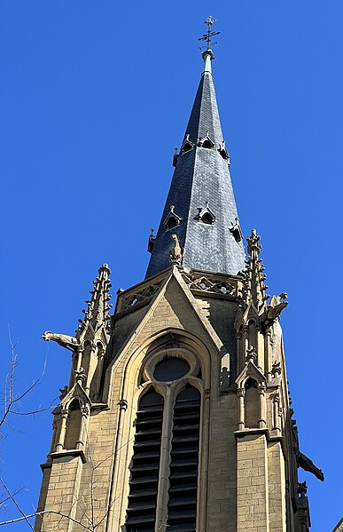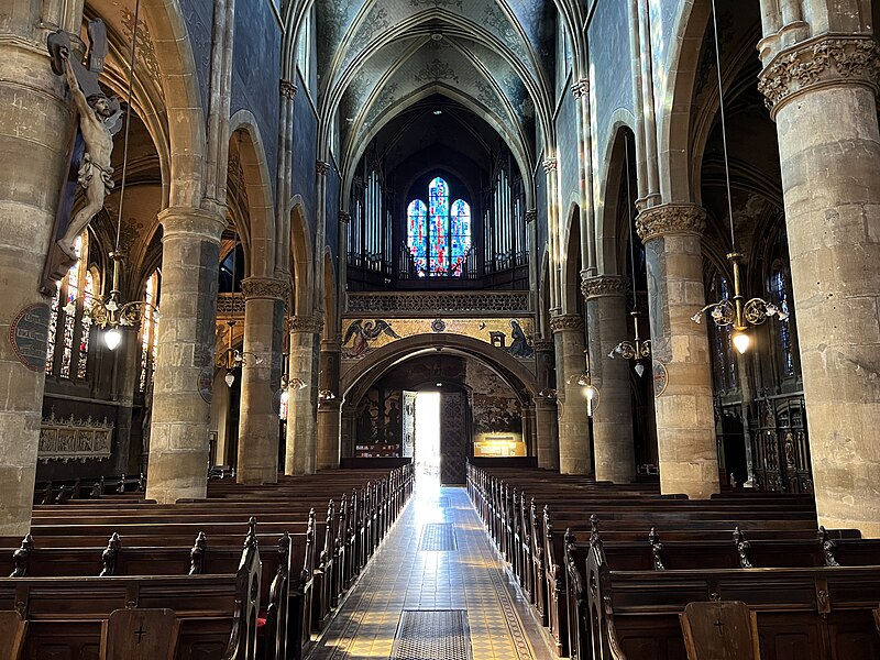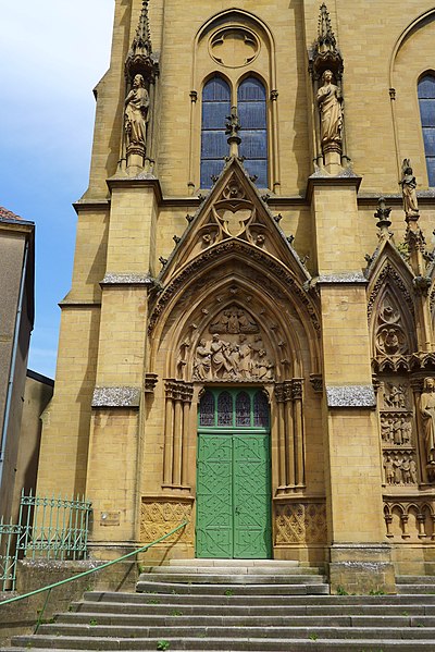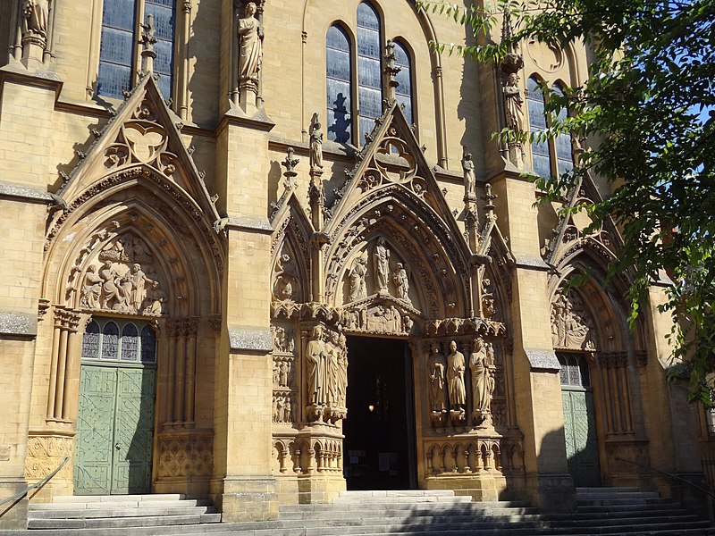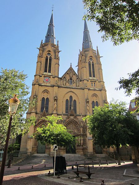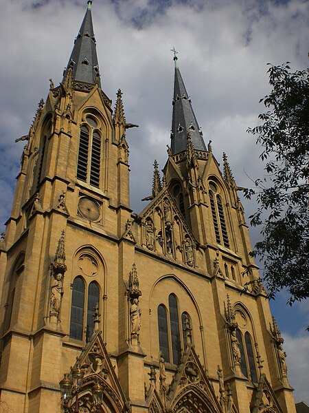 L’église Sainte-Ségolène, édifice catholique situé place Jeanne-d’Arc sur la colline Sainte‑Croix dans le quartier de l’Ancienne Ville à Metz (Moselle), est classée au titre des monuments historiques depuis 1981 et classée dans son ensemble depuis 2013 ; elle est aujourd’hui utilisée par la paroisse franco‑polonaise de Metz. Les premières mentions d’une chapelle dédiée à sainte Ségolène remontent aux IXe–Xe siècles et une mention apparaît encore en 912 dans le cartulaire de l’abbaye de Gorze ; de cet édifice primitif subsiste vraisemblablement la crypte sous le chœur. Au XIIIe siècle, en raison de l’urbanisation du quartier, on édifie une église gothique plus vaste, construite en pierre de Jaumont ; elle conserve le chœur, les absidioles et trois travées de la nef. L’édifice fut agrandi à la fin du Moyen Âge par l’adjonction d’un porche gothique flamboyant et fit l’objet d’importants travaux au XIXe siècle dirigés par l’architecte Conrad Wahn, qui modifièrent profondément son aspect. Lors de ces transformations (1896‑1898) seules la partie du chœur et trois travées furent conservées ; la nef fut élargie, la cour supprimée et le porche et le clocher du XVe siècle remplacés par une façade néo‑gothique comportant trois portails et deux tours à flèches jumelles, inspirée de l’église Sainte‑Élisabeth de Marbourg. La statuaire des portails est l’œuvre du sculpteur Dujardin et la porte centrale en bronze fut réalisée par Eugène Vallin en 1903 ; l’inauguration du nouvel édifice eut lieu en 1898. Lors de travaux antérieurs, en 1850, des restes de peintures murales datant des XIIIe au XVIe siècles avaient été découverts, puis disparus en 1898. L’intérieur présente des caractéristiques du gothique messin des XIIIe siècle et l’on retrouve, outre le chœur, des piliers, des fenêtres, des nefs latérales terminées par des absidioles et des chapiteaux remarquables à l’arc ogival du chœur. Le mobilier comprend notamment deux statues du XVe siècle représentant saint Ferréol et saint Ferjeux ainsi qu’une statue en bois stuqué de sainte Ségolène datée du XVIe siècle (inscrite au titre des monuments historiques). L’église possède de nombreux vitraux : une crucifixion et plusieurs médaillons zoomorphes du XIIe siècle, la crucifixion de l’absidiole nord dédiée à la Vierge étant considérée comme le plus ancien vitrail de Lorraine ; de style rhénan, il montre le Christ en croix entouré de la Vierge et de saint Jean‑Baptiste, la croix étant ornée de rinceaux et encadrée par la lune et le soleil. D’autres verrières datent des XIIIe, XVe et XVIe siècles, et le chœur conserve des vitraux du verrier messin Laurent‑Charles Maréchal posés entre 1848 et 1855. L’orgue, construit en 1890 par la manufacture Dalstein‑Haerpfer de Boulay, comporte 31 jeux répartis sur deux claviers et pédalier ; un relevage minimal réalisé en 2000 par le facteur Laurent Plet a permis son usage pédagogique pour le Conservatoire de Metz et pour des concours, mais l’instrument nécessite une restauration complète. L’orgue dispose notamment de tirasses pour le Grand Orgue et le Récit, d’un accouplement Récit/Grand Orgue, de trémolos, d’une expression pour le Récit, d’un crescendo non fonctionnel et de pédales de combinaisons (piano, forte, tutti). La sonnerie comporte sept cloches de volée : le bourdon Jean‑Marie en si b2 fondu en 1931 par Causard de Colmar (5 276 kg) ; Joseph en ré b3 fondu en 1897 par Bour & Guenser de Metz (1 964 kg) ; Ségolène en mi b3 fondu en 1897 par Bour & Guenser (1 310 kg) ; Marguerite en fa3 fondue en 1897 par Bour & Guenser (935 kg) ; Jean‑Baptiste en sol b3 fondu en 1897 par Bour & Guenser (796 kg) ; Gabriel en la b3 fondu en 1929 par Causard de Colmar (562 kg) ; et Marie en mi4, fondue en 1811 par NS Duviviers et Is Morice (105 kg), qui était la cloche de sacristie jusqu’en 1850. La photothèque illustre la façade néo‑gothique et ses portails, les tympans et les statues des abords, la Piéta, la statue de saint Ferréol, la mosaïque de l’archange saint Michel ainsi que la nef et le chœur gothique.