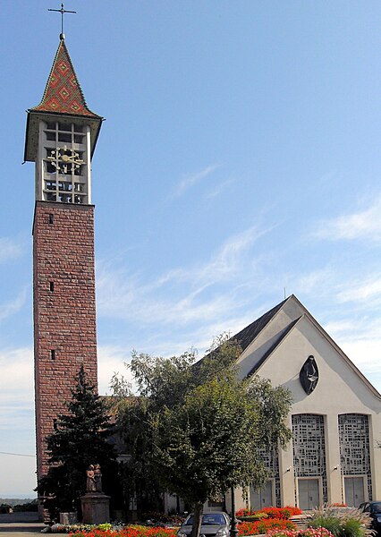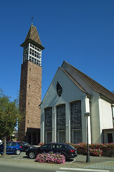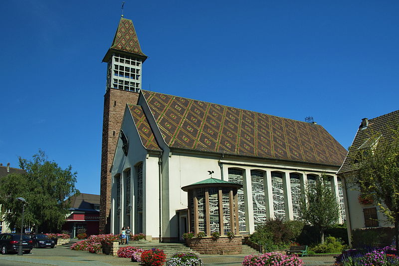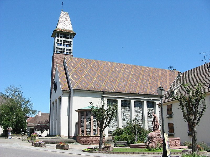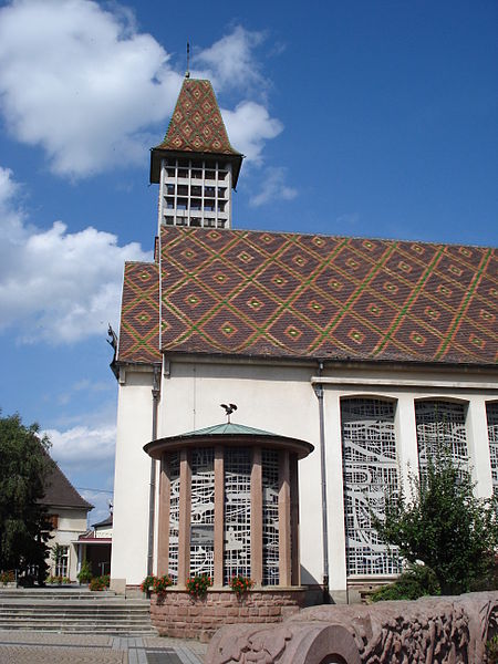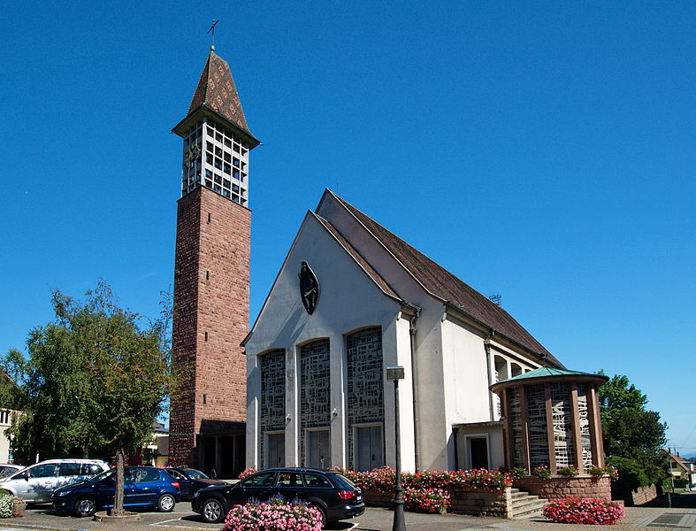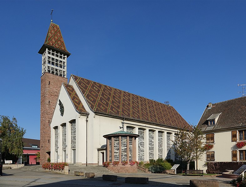 L'église catholique Saints-Pierre-et-Paul, située rue du Général-de-Gaulle à Bennwihr (Haut-Rhin), est inscrite au titre des monuments historiques depuis 1931. Une église y est attestée dès 777. Celle qui fut incendiée en 1494 a été reconstruite et consacrée en 1507. La nef et le chœur ont été refaits en 1779 d'après des plans attribués à Jean-Baptiste Alexandre Chassain (1777). L'ancienne tour-chœur gothique fut conservée comme clocher et surélevée d'un niveau. L'édifice a connu des restaurations en 1846 et en 1851, cette dernière comportant une nouvelle surélévation de la tour. L'église fut détruite lors des combats de décembre 1944 ; les peintures murales du rez-de-chaussée de la tour et l'armoire eucharistique de 1498, inscrites à l'Inventaire des Monuments Historiques, ont disparu. L'édifice actuel a été reconstruit par les architectes colmariens associés Pouradier-Duteil et Pillon en 1957 ; le clocher n'a été achevé qu'en 1959 et la consécration a eu lieu en 1960. De l'ancienne église ne subsiste que la table en grès à crossettes, avec inscription latine et date 1779, initialement placée au-dessus du portail occidental et désormais fixée sur le côté nord de l'église moderne.