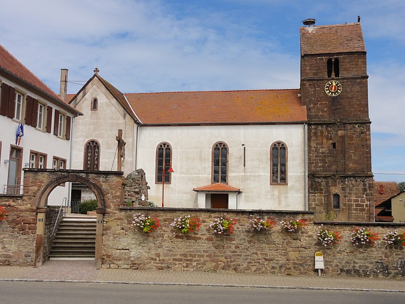 L'église paroissiale Saints-Vincent-et-Anastase, située à Schwenheim dans le Bas-Rhin, est inscrite au titre des monuments historiques depuis 1996. Un clocher remonte au XIIe siècle. La première église, citée dès le Xe siècle, avait pour patron saint Alban ; les patrons actuels, saint Vincent et saint Anastase, semblent être attestés depuis le XVe siècle. La tour-choeur orientée à l'est a été conservée et pourrait dater de la seconde moitié du XIIe ou de la première moitié du XIIIe siècle : ses élévations présentent des lésènes et une frise d'arceaux, et elle ouvre par des baies jumelées à colonnettes munies de tailloirs. Le rez-de-chaussée était autrefois voûté d'ogives retombant sur des colonnes à chapiteaux cubiques. Aujourd'hui cette tour sert de porche à la nouvelle église, dont la nef ancienne a été conservée mais surhaussée. Pour augmenter l'espace, un transept et un chœur tournés vers l'ouest furent ajoutés en 1854 ; la nouvelle église fut achevée en 1855.