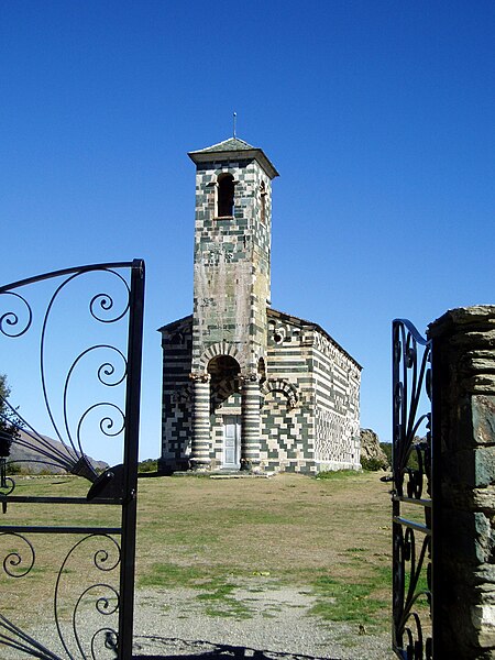 L'église Saint-Michel (San Michele) se situe sur la commune de Murato, en Haute-Corse, au lieu-dit San Michele, à l'entrée du village le long de la D5, à environ un kilomètre du bourg ; la clé se demande à la mairie, une messe y est célébrée le 8 mai et l'édifice est souvent ouvert au public durant la saison estivale. Petite église romane considérée comme l'une des plus belles de Corse, elle date du milieu du XIIe siècle et a été consacrée vers la fin du XIIIe siècle, alors que la Corse était sous l'influence de Pise. Son appareil polychrome, caractéristique du style pisan, alterne des pierres vertes (serpentinite) et blanches (calcaire) dessinant damiers et zébrures ; l'édifice rappelle les grands monuments de Pise et de Toscane par le choix des matériaux et des ornements, tout en restant de taille plus modeste, comme la plupart des bâtiments insulaires de cette époque. L'église est classée au titre des monuments historiques depuis 1840.