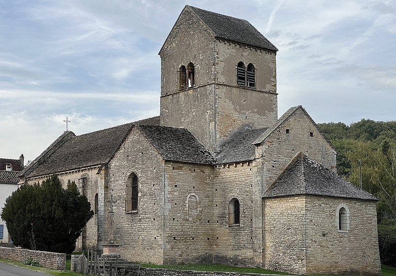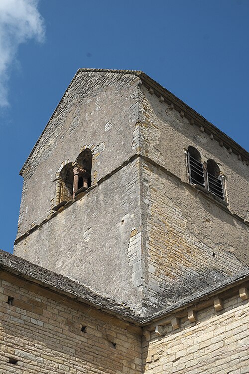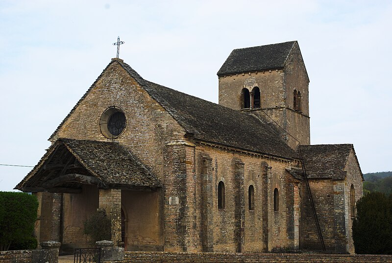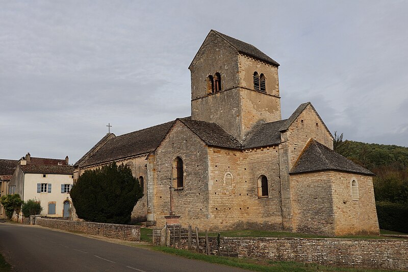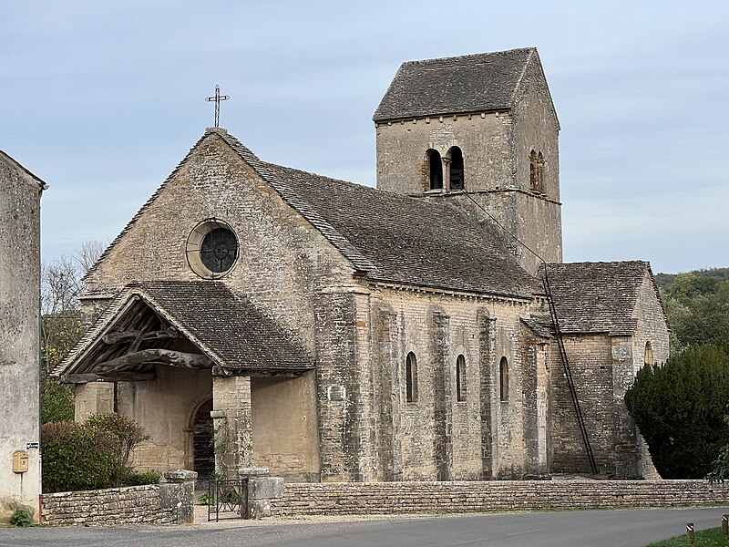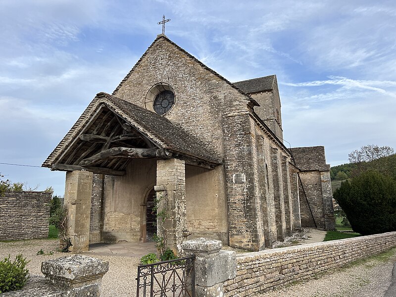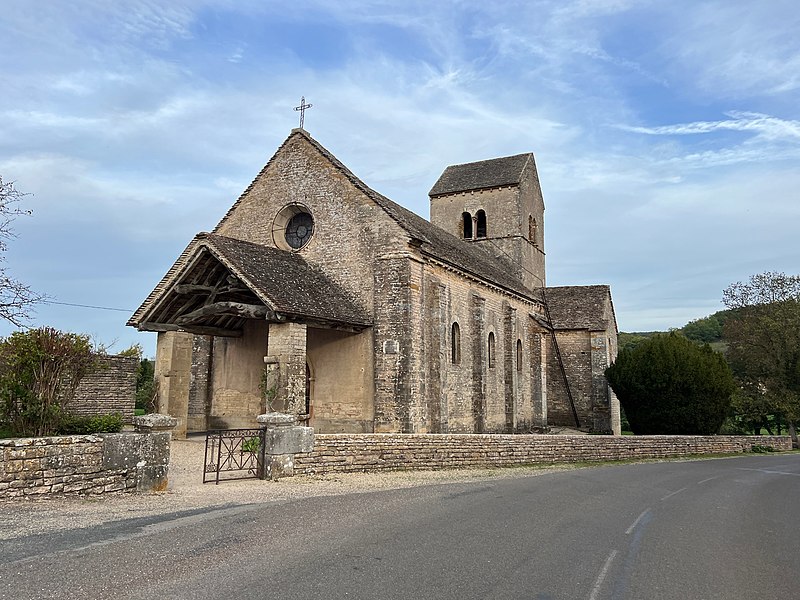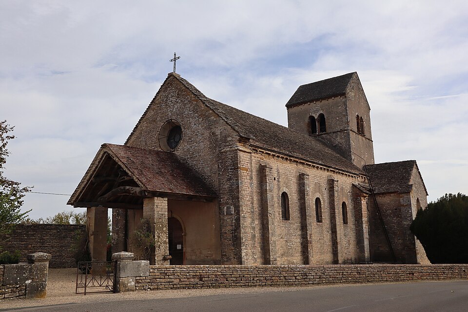 L'église Saint-Gervais-et-Saint-Protais d'Ozenay, remarquable ensemble d'architecture romane du XIIe siècle, se situe sur la commune d'Ozenay, en Saône-et-Loire, région Bourgogne-Franche-Comté. Elle a succédé à un premier édifice mentionné en 950, dont aucun vestige n'a subsisté. La construction semble s'être déroulée en deux campagnes : au milieu du XIIe siècle furent édifiés le chœur, le transept et la dernière travée de la nef, puis, à la fin du siècle, les trois premières travées de la nef. L'édifice a été remanié par la suite, probablement au XIIIe siècle, avec la pose d'une voûte sur la nef et l'aménagement du beffroi du clocher. Une importante campagne de restauration en 1751 a entraîné la construction d'une sacristie accolée au chevet, l'élargissement des ouvertures et l'aménagement d'un porche occidental, le portail portant une clé de voûte inscrite de la date 1751. Autrefois entourée du cimetière du village, l'église conserve plusieurs pierres tombales et une croix de pierre gravée de l'inscription O Crux Ave, rappelant le transfert du cimetière hors du bourg au XIXe siècle, entre Ozenay et le hameau de Gratay. Classée au titre des monuments historiques le 18 août 1931, elle a intégré en 2020, avec 126 autres sites du PETR Mâconnais Sud Bourgogne, les « Chemins du roman en Mâconnais Sud Bourgogne » et a bénéficié d'une signalétique spécifique ; elle relève de la paroisse de Tournus. Les toitures sont en laves et le clocher, de plan carré, est coiffé en bâtière ; à l'étage, les quatre faces présentent des baies géminées dont la colonnette centrale porte un petit chapiteau orné de crochets. Le clocher abrite une cloche bénite en 1814 par M. Passerat, curé d'Ozenay. Le mobilier comprend un autel principal trapézoïdal en marbre rose, incrusté de panneaux gris et orné d'un médaillon noir au centre, ainsi qu'un emmarchement décoré de marbres polychromes. L'autel secondaire méridional, du XVIIIe siècle, est en marbre rose et s'inscrit devant une toile peinte ; l'ancien autel nord en bois peint se trouve à l'entrée, le long du mur, et un meuble de sacristie le remplace dans le transept nord. Le retable baroque en bois foncé du XVIIIe siècle est flanqué des statues des saints Gervais et Protais, martyrs du IIIe siècle, vêtus de dalmatiques et tenant la palme ; saint Gervais, supplicié au fouet, porte un livre, tandis que saint Protais, décapité, est identifiable à son glaive. L'église a conservé une chaire, un banc réservé au châtelain et ses stalles latérales. Bâtiment consacré du diocèse d'Autun et affectataire de la paroisse Saint-Philibert-en-Tournugeois (siège à Tournus) dans le cadre de la loi de 1905, l'église d'Ozenay demeure un lieu de culte catholique.