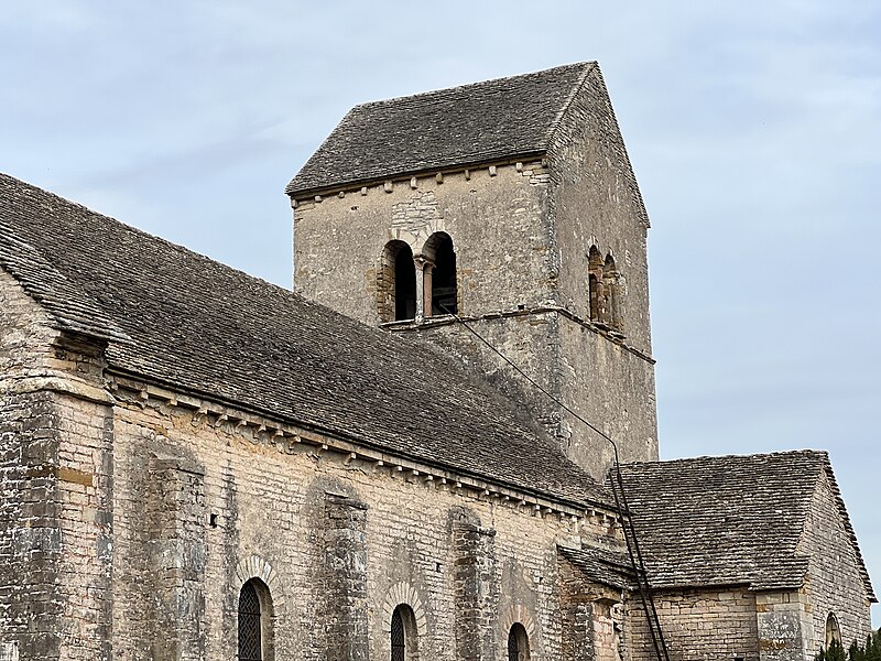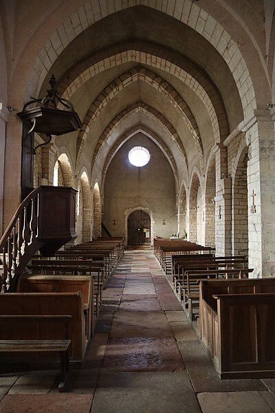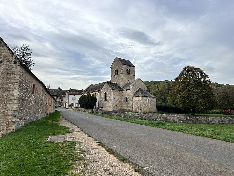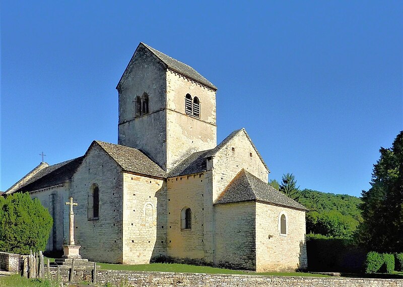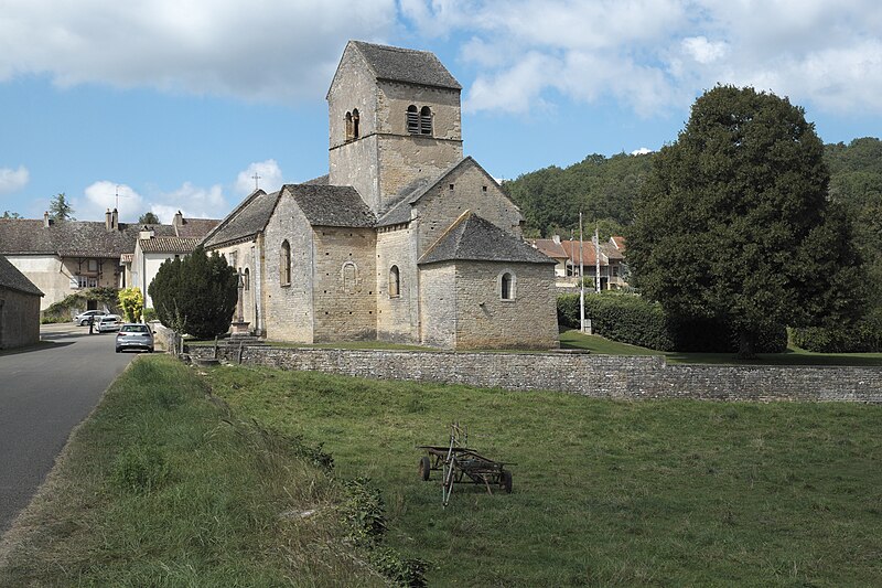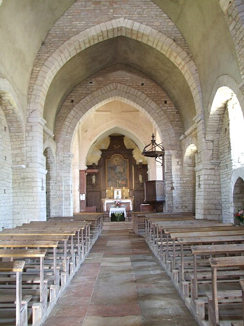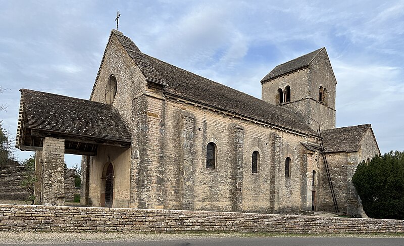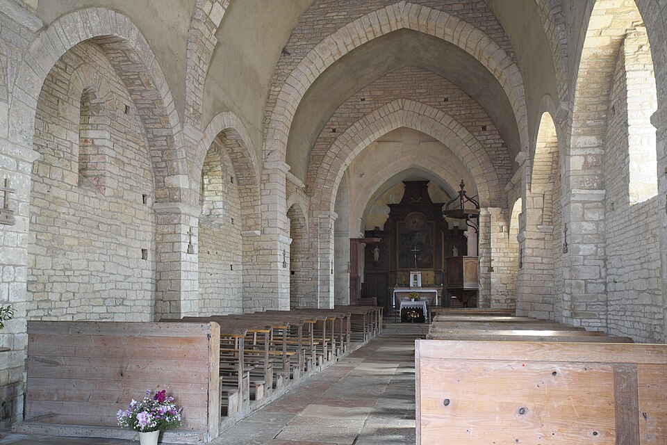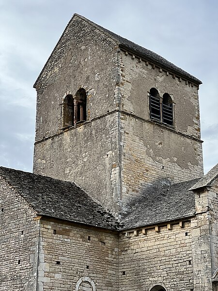 L'église Saint-Gervais-et-Saint-Protais d'Ozenay, remarquable ensemble d'architecture romane du XIIe siècle, se situe sur la commune d'Ozenay, en Saône-et-Loire, région Bourgogne-Franche-Comté. Elle a succédé à un premier édifice mentionné en 950, dont aucun vestige n'a subsisté. La construction semble s'être déroulée en deux campagnes : au milieu du XIIe siècle furent édifiés le chœur, le transept et la dernière travée de la nef, puis, à la fin du siècle, les trois premières travées de la nef. L'édifice a été remanié par la suite, probablement au XIIIe siècle, avec la pose d'une voûte sur la nef et l'aménagement du beffroi du clocher. Une importante campagne de restauration en 1751 a entraîné la construction d'une sacristie accolée au chevet, l'élargissement des ouvertures et l'aménagement d'un porche occidental, le portail portant une clé de voûte inscrite de la date 1751. Autrefois entourée du cimetière du village, l'église conserve plusieurs pierres tombales et une croix de pierre gravée de l'inscription O Crux Ave, rappelant le transfert du cimetière hors du bourg au XIXe siècle, entre Ozenay et le hameau de Gratay. Classée au titre des monuments historiques le 18 août 1931, elle a intégré en 2020, avec 126 autres sites du PETR Mâconnais Sud Bourgogne, les « Chemins du roman en Mâconnais Sud Bourgogne » et a bénéficié d'une signalétique spécifique ; elle relève de la paroisse de Tournus. Les toitures sont en laves et le clocher, de plan carré, est coiffé en bâtière ; à l'étage, les quatre faces présentent des baies géminées dont la colonnette centrale porte un petit chapiteau orné de crochets. Le clocher abrite une cloche bénite en 1814 par M. Passerat, curé d'Ozenay. Le mobilier comprend un autel principal trapézoïdal en marbre rose, incrusté de panneaux gris et orné d'un médaillon noir au centre, ainsi qu'un emmarchement décoré de marbres polychromes. L'autel secondaire méridional, du XVIIIe siècle, est en marbre rose et s'inscrit devant une toile peinte ; l'ancien autel nord en bois peint se trouve à l'entrée, le long du mur, et un meuble de sacristie le remplace dans le transept nord. Le retable baroque en bois foncé du XVIIIe siècle est flanqué des statues des saints Gervais et Protais, martyrs du IIIe siècle, vêtus de dalmatiques et tenant la palme ; saint Gervais, supplicié au fouet, porte un livre, tandis que saint Protais, décapité, est identifiable à son glaive. L'église a conservé une chaire, un banc réservé au châtelain et ses stalles latérales. Bâtiment consacré du diocèse d'Autun et affectataire de la paroisse Saint-Philibert-en-Tournugeois (siège à Tournus) dans le cadre de la loi de 1905, l'église d'Ozenay demeure un lieu de culte catholique.