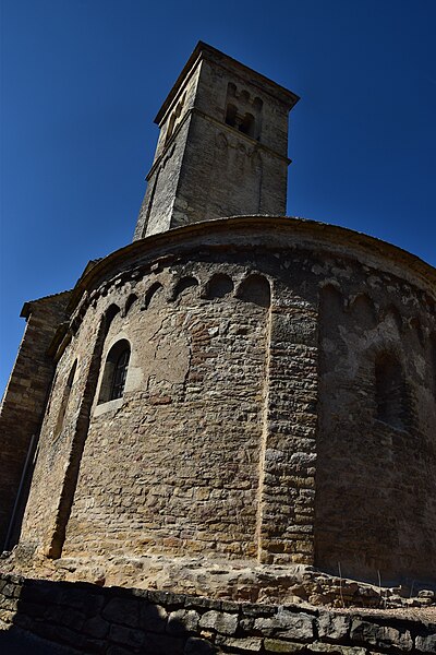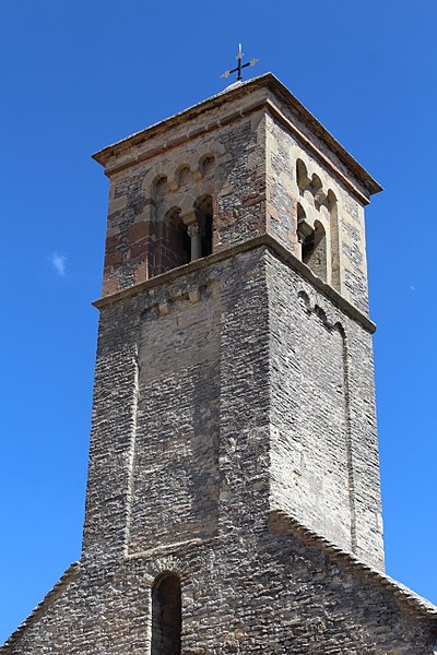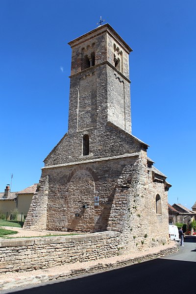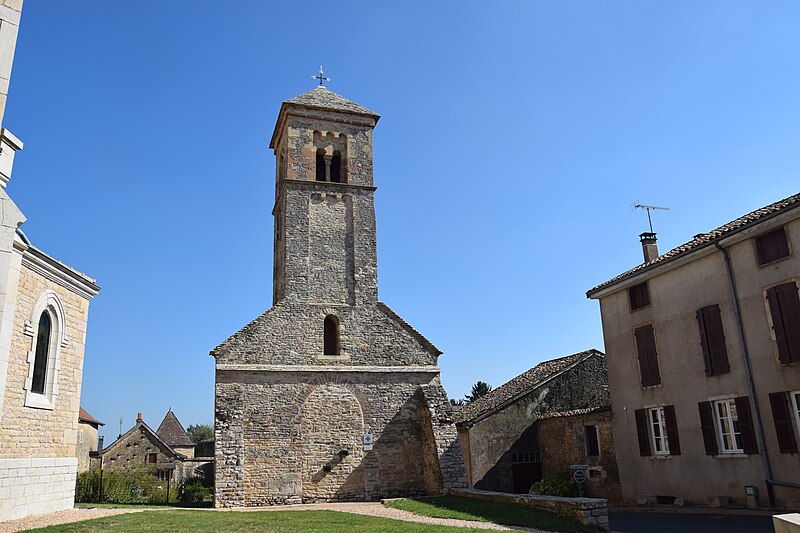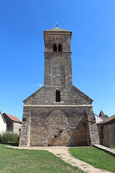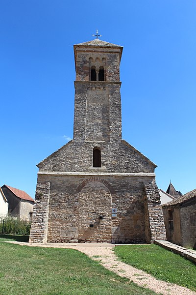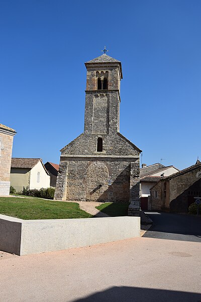 L'église, située à Saint-Martin-Belle-Roche en Saône-et-Loire (Bourgogne-Franche-Comté), présente un chevet et un clocher d'architecture romane. L'abside semi-circulaire, ornée de bandes lombardes, est percée de trois fenêtres profondes à simple ébrasement et couverte de lauzes. Le chevet est surmonté d'un clocher carré lui aussi décoré de bandes lombardes. Le dernier niveau du clocher, séparé du précédent par un cordon de pierre, ouvre sur chaque face une paire de baies géminées inscrites dans ce même décor. L'abside, le chœur et le clocher sont inscrits au titre des monuments historiques depuis le 27 janvier 1942. Les références indiquent notamment les portails de l'architecture chrétienne, de Saône-et-Loire, des monuments historiques français et du catholicisme.
