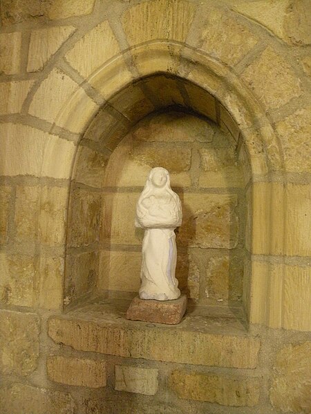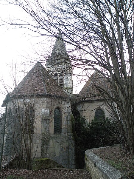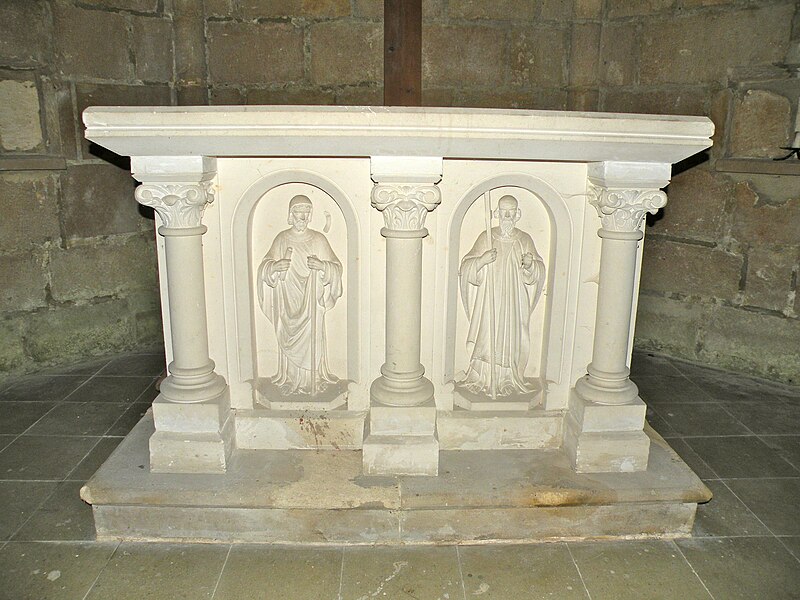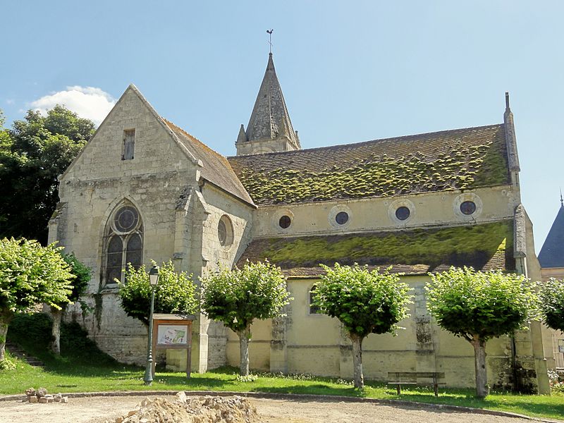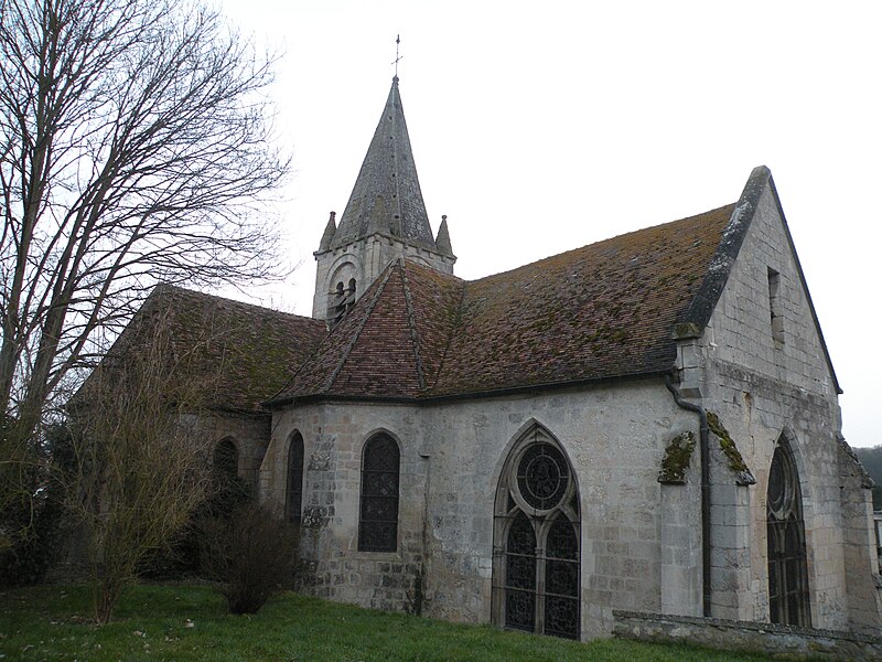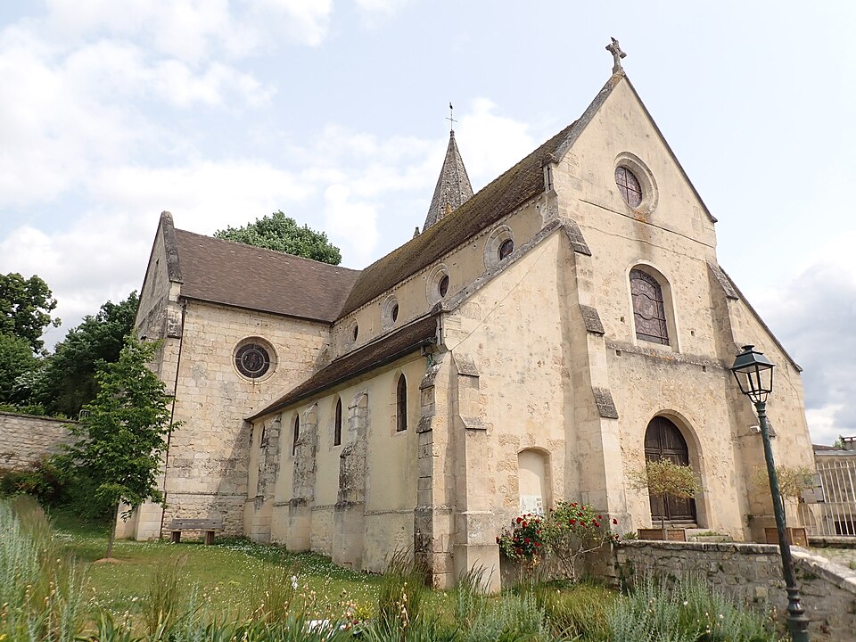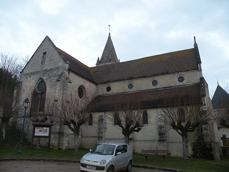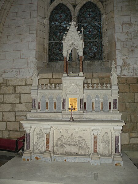Les bas‑côtés sont éclairés par des lancettes en arc brisé et bordés de bancs de pierre. L’arc triomphal ouvre sur un chœur stylistiquement proche de la nef mais légèrement dévié sur son axe ; ses voûtes d’ogives retombent sur des faisceaux de colonnettes à chapiteaux et sur des tailloirs à bec typiques de la première période gothique. Le chevet conserve trois fenêtres en tiers‑point et une ancienne piscine liturgique. Plusieurs percements et transformations intérieures résultent de restaurations anciennes, dont certaines—en particulier celles de 1925 concernant l’abside méridionale—ont été vivement critiquées pour leur exécution et leurs joints en ciment.