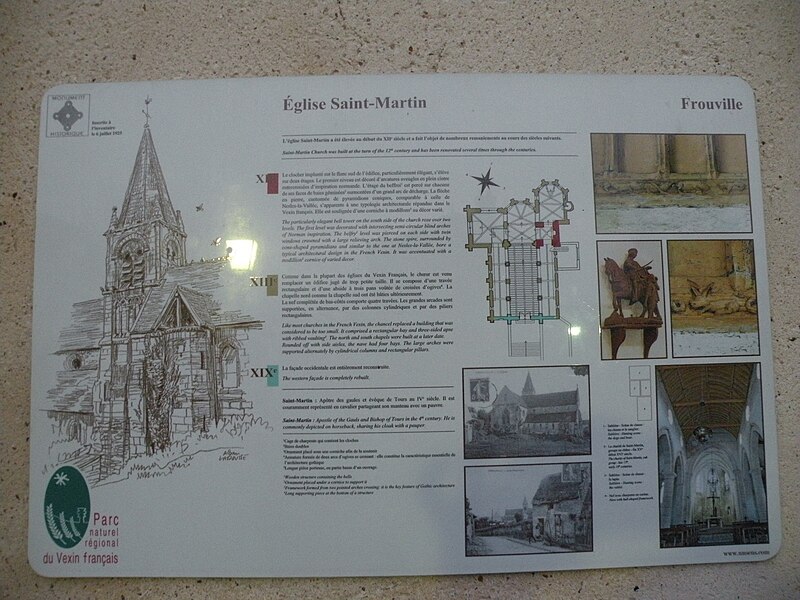 L’église paroissiale Saint-Martin de Frouville (Val-d’Oise) conserve un clocher roman élevé au cours du premier quart du XIIe siècle ; les autres parties de l’édifice relèvent majoritairement du gothique et ont été construites lors de plusieurs campagnes au début et dans la seconde moitié du XIIIe siècle. Le chœur, la chapelle méridionale et la nef datent des premières phases gothiques, la chapelle nord-est appartient à la seconde moitié du XIIIe siècle, la charpente de la nef a été remaniée au XVe siècle et la façade occidentale a été restaurée vers 1896 lors de l’aménagement du parvis sur l’emplacement de l’ancien cimetière. L’église a été inscrite aux monuments historiques par arrêté du 6 juillet 1925 ; elle appartient aujourd’hui à la paroisse de Nesles‑la‑Vallée et n’accueille des messes dominicales que de façon irrégulière.