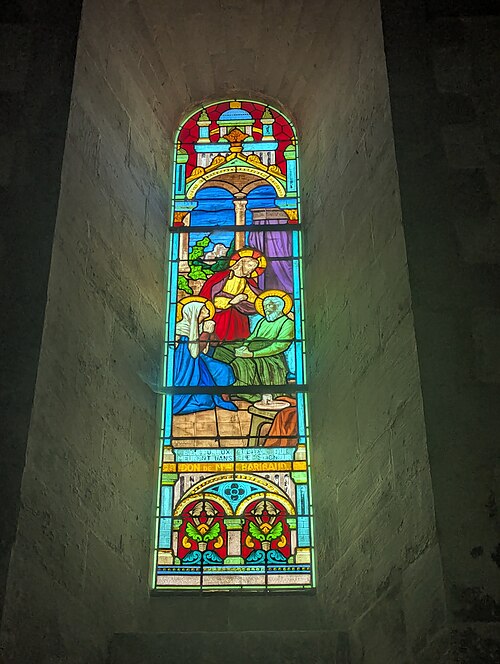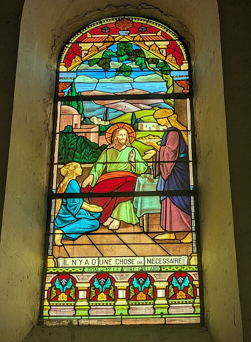 Sur le plan architectural, l'édifice présente des éléments romans et gothiques visibles dans la composition des nefs, le chevet et les contreforts, ainsi que la coupole octogonale sous le clocher et le mur nord d'origine. Les vitraux datés de 1934 proviennent des ateliers Razin de Nantes ; ils relèvent d'un néo-gothique tardif aux motifs floraux marqués d'influences art nouveau. Plusieurs verrières sont des dons ou des dédicaces, notamment à la mémoire du chanoine Géant (curé en 1874) et du curé doyen Louis Rivalin (curé de 1905 à 1931), et proviennent de donateurs identifiés tels que Mademoiselle Baribaud, Mademoiselle Le Coisiel, la fanfare Saint Louis, Monsieur le curé Grillard et les époux L'étang-Bouquet.