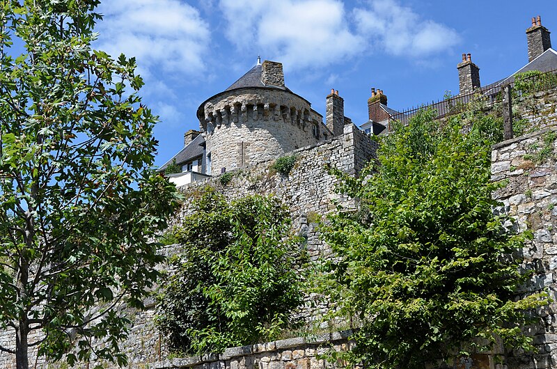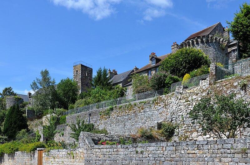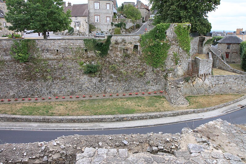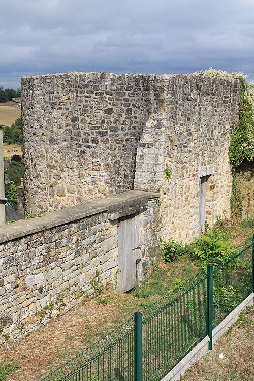 L'enceinte de la ville de Domfront est un ouvrage défensif médiéval dont les vestiges se dressent dans la commune nouvelle de Domfront en Poiraie, dans le département de l'Orne, en Normandie. La ville s'est formée vers 1014 autour d'un château probablement en bois élevé par Guillaume de Bellême ; la basse-cour était alors entourée d'une palissade. Entre 1289 et 1304, Robert II d'Artois fit édifier une enceinte comportant vingt-quatre tours. Aux XIIe et XIIIe siècles, le rocher et la ville furent ainsi entourés d'une puissante muraille percée de quatre portes, dont la porte d'Alençon encadrée de deux flanquements cylindriques. En 1382, Pierre d'Alençon hérita de la seigneurie et fit réparer les fortifications et construire la porte d'Alençon. La place dut subir plusieurs sièges, notamment en 1204 sous la conduite de Philippe Auguste, et lors des guerres de Religion où elle fut prise par le comte de Matignon avec Gabriel Ier de Montgommery. Au XVIIe siècle, les remparts, devenus sans importance militaire et coûteux à entretenir, furent vendus à des particuliers ; certaines tours couvertes et habitées furent conservées, d'autres furent abandonnées, mutilées ou détruites pour réemploi des matériaux. Les remparts urbains furent en partie démantelés en 1610 après la soumission du château à Henri IV, et l'enceinte servit encore, en 1795, de quartier général à Louis de Frotté. Sur les vingt-quatre tours originelles, quatorze subsistent aujourd'hui. La ville subit de nombreux bombardements en 1944, mais elle conserve encore un nombre important de vestiges. L'enceinte reste lisible dans le tissu urbain, notamment le long des rues Montgomery et des Fossés-Plisson au sud, des Barbacanes à l'est, et de la rue de la Poterne jusqu'au Belvédère au nord ; sept tours du front sud, assez bien conservées, sont en partie intégrées aux maisons particulières. On y observe de grosses tours rondes à mâchicoulis, parmi lesquelles figurent les tours Guérin-Lécrivain, Lafaye ou Chicault, Coroller — la mieux conservée — Bigeon, Patry, Chemineau et d'Alençon, située au-dessus de la promenade des Fossés-Plisson ; la poterne au nord se trouve à l'angle de la rue de la Poterne et de la ruelle du Pissot, et la porte de Brière, percée entre les deux tours jumelles dites tours Godras, est aujourd'hui écrêtée. Les restes des deux tours de l'ancienne poterne du château de Gadras sont classés au titre des monuments historiques par arrêté du 9 avril 1929, et les murs d'enceinte, les tours et les vestiges de remparts ont été classés par arrêté du 13 octobre 1988. L'enceinte de Domfront constitue un témoignage important de l'architecture militaire médiévale conservé au cœur du centre-ville.