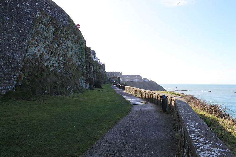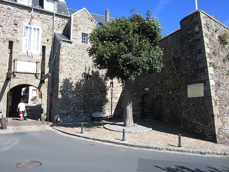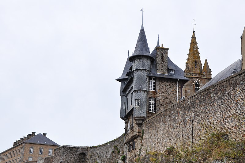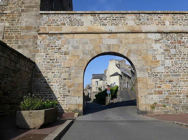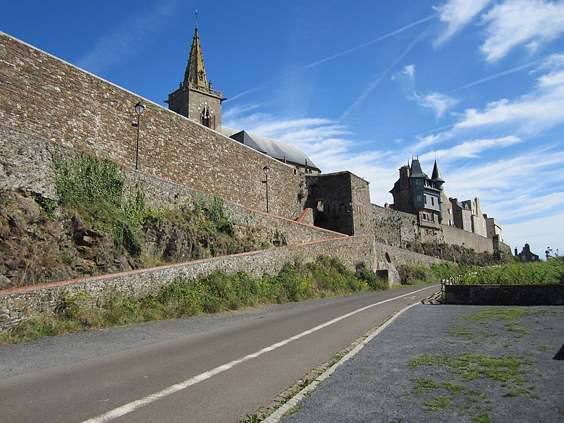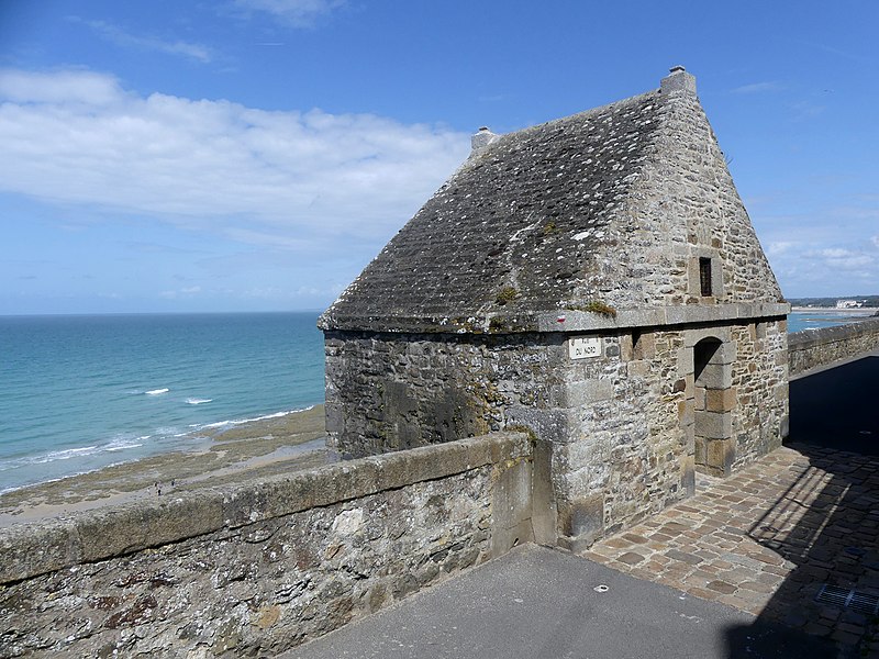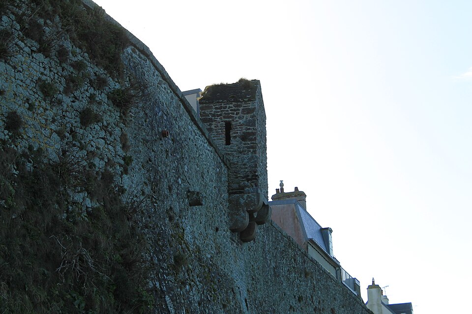 L'enceinte de la Haute-Ville entoure la Haute Ville de Granville, établie sur le cap Lihou, une presqu'île rocheuse d'environ 500 mètres qui s'avance dans la mer à l'ouest de la commune. Les premiers remparts furent édifiés à partir de 1439 par les Anglais; Thomas de Scales, ayant pris la position de Jean d’Argouges, creusa un fossé profond dans le roc pour couper l'isthme et fit élever une citadelle ainsi que l'église Notre-Dame. En 1442, Louis d'Estouteville chassa les Anglais avant l'achèvement des travaux, puis Charles VII augmenta et acheva les fortifications. Sur l'ordre de Louvois, les fortifications furent démolies en 1689. Craignant une attaque anglaise, on édifia toutefois vers 1695 une redoute sur le Roc, conformément au projet de Vauban. L'enceinte fut relevée entre 1727 et 1749, puis remaniée entre 1815 et 1840. Parmi les vestiges de ces phases de reconstruction subsistent la Grand-Porte avec son pont-levis, le Logis du Roi — qui servit de logement au gouverneur de Granville — et la porte Saint-Jean; rien ne subsiste des remparts du XVe siècle. La pointe ouest du roc resta non fortifiée, tandis qu'à l'est le roc fut isolé du plateau par une profonde tranchée creusée par les Anglais. La citadelle centrale et l'église Notre-Dame ont disparu; leurs fondations furent mises au jour en 1835 rue Saint-Michel, à une vingtaine de mètres à l'ouest de l'ancienne mairie. Le plan de Gomboust (1650) montre l'enceinte englobant Notre-Dame et s'étendant jusqu'à l'isthme. Vauban, en 1686, décrit une place où le rempart principal était doublé à l'ouest par un second, moins élevé et séparé par un fossé de deux à trois mètres, la double enceinte étant en outre renforcée à l'ouest et au sud par un chemin couvert; il signale aussi une fortification moderne greffée sur l'enceinte au niveau de la montée du Moulin-à-Vent. La partie principale de l'enceinte fut rasée en 1911 pour faciliter l'accès à la plage du Casino; le réduit, la fortification signalée par Vauban et la braie avaient été détruits au XVIIe siècle et leurs matériaux employés pour combler le grand fossé. La porte de ville, avec les toitures et les façades de la maison qui l'encadre, est classée au titre des monuments historiques par arrêté du 24 janvier 1931, et l'ensemble de l'enceinte est inscrit par arrêté du 26 octobre 2004.