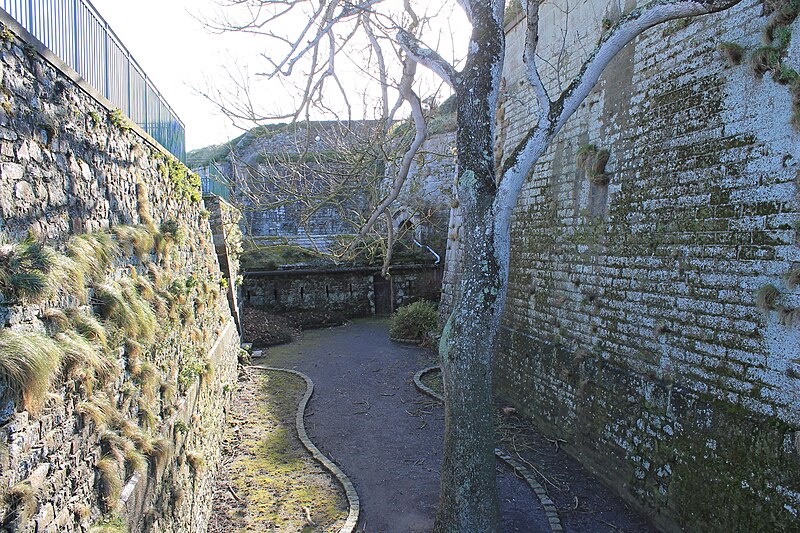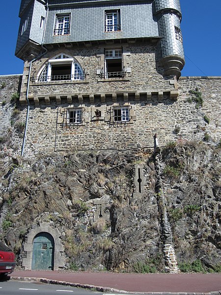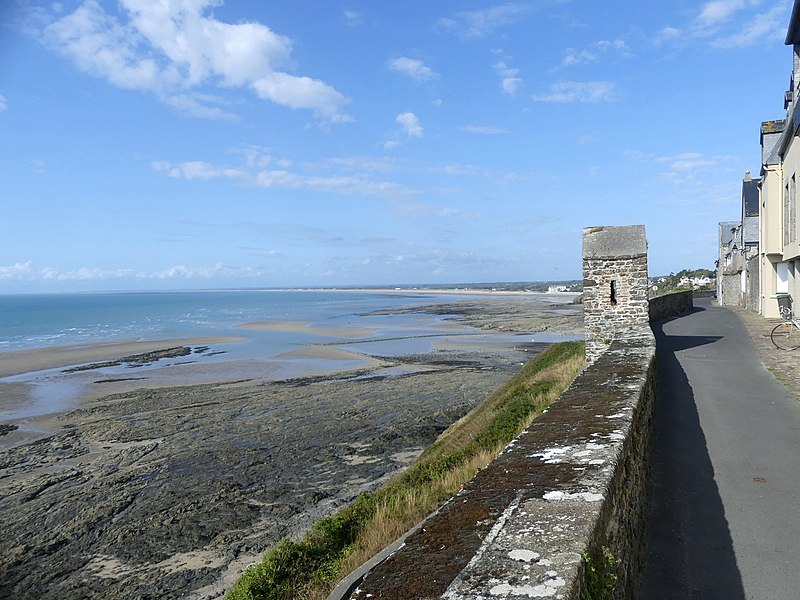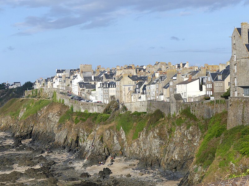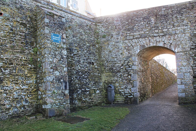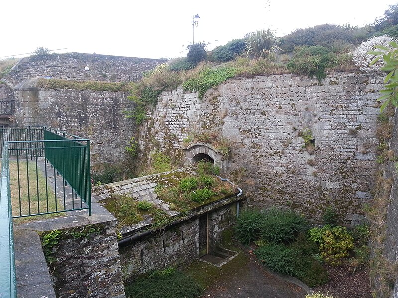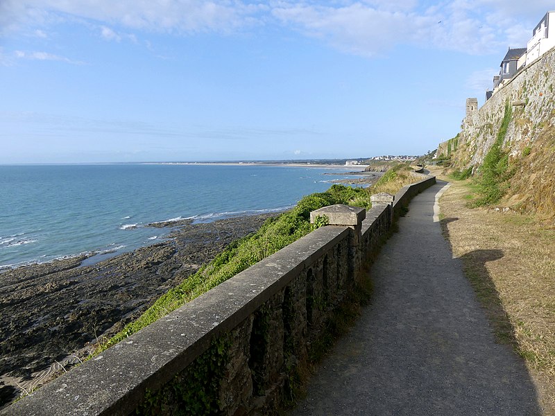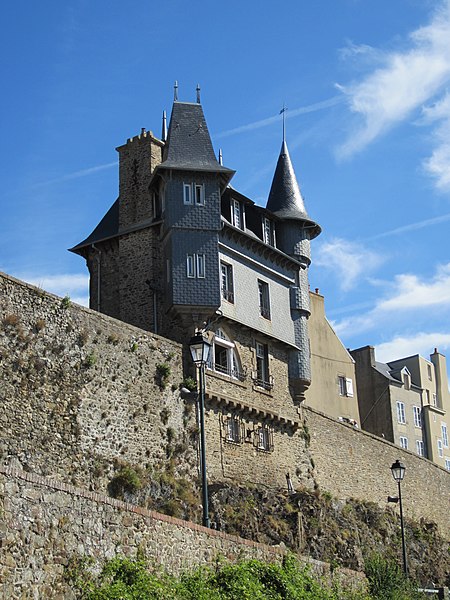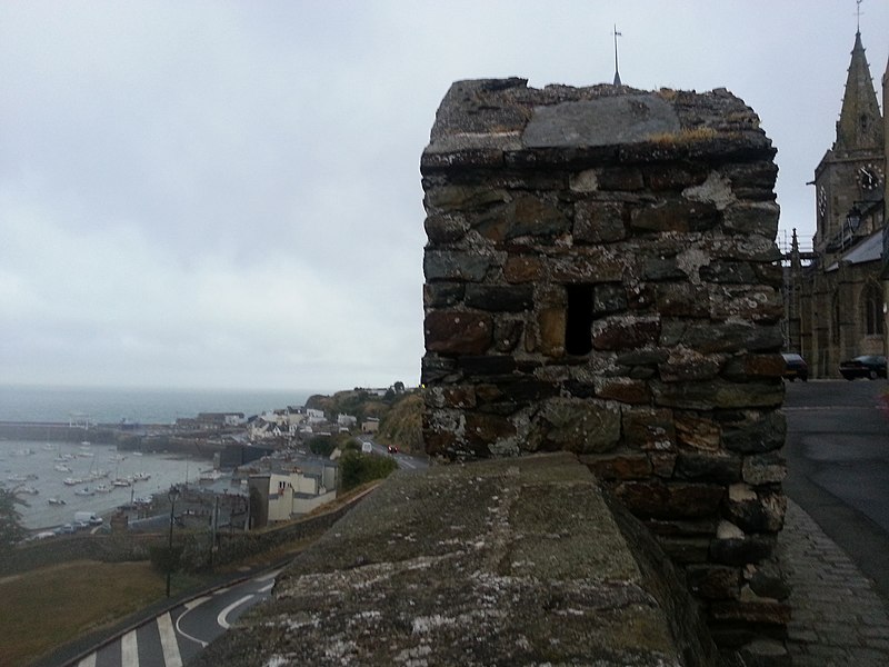 L'enceinte de la Haute-Ville entoure la Haute Ville de Granville, établie sur le cap Lihou, une presqu'île rocheuse d'environ 500 mètres qui s'avance dans la mer à l'ouest de la commune. Les premiers remparts furent édifiés à partir de 1439 par les Anglais; Thomas de Scales, ayant pris la position de Jean d’Argouges, creusa un fossé profond dans le roc pour couper l'isthme et fit élever une citadelle ainsi que l'église Notre-Dame. En 1442, Louis d'Estouteville chassa les Anglais avant l'achèvement des travaux, puis Charles VII augmenta et acheva les fortifications. Sur l'ordre de Louvois, les fortifications furent démolies en 1689. Craignant une attaque anglaise, on édifia toutefois vers 1695 une redoute sur le Roc, conformément au projet de Vauban. L'enceinte fut relevée entre 1727 et 1749, puis remaniée entre 1815 et 1840. Parmi les vestiges de ces phases de reconstruction subsistent la Grand-Porte avec son pont-levis, le Logis du Roi — qui servit de logement au gouverneur de Granville — et la porte Saint-Jean; rien ne subsiste des remparts du XVe siècle. La pointe ouest du roc resta non fortifiée, tandis qu'à l'est le roc fut isolé du plateau par une profonde tranchée creusée par les Anglais. La citadelle centrale et l'église Notre-Dame ont disparu; leurs fondations furent mises au jour en 1835 rue Saint-Michel, à une vingtaine de mètres à l'ouest de l'ancienne mairie. Le plan de Gomboust (1650) montre l'enceinte englobant Notre-Dame et s'étendant jusqu'à l'isthme. Vauban, en 1686, décrit une place où le rempart principal était doublé à l'ouest par un second, moins élevé et séparé par un fossé de deux à trois mètres, la double enceinte étant en outre renforcée à l'ouest et au sud par un chemin couvert; il signale aussi une fortification moderne greffée sur l'enceinte au niveau de la montée du Moulin-à-Vent. La partie principale de l'enceinte fut rasée en 1911 pour faciliter l'accès à la plage du Casino; le réduit, la fortification signalée par Vauban et la braie avaient été détruits au XVIIe siècle et leurs matériaux employés pour combler le grand fossé. La porte de ville, avec les toitures et les façades de la maison qui l'encadre, est classée au titre des monuments historiques par arrêté du 24 janvier 1931, et l'ensemble de l'enceinte est inscrit par arrêté du 26 octobre 2004.