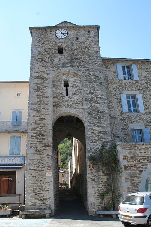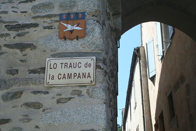 Seul vestige de l'enceinte médiévale du bourg, la « trauc de la campana » ou tour du beffroi remonte aux premières fortifications, probablement du XIIIe siècle. Elle marquait, jusqu'au XVIIIe siècle, la voie principale de traversée du bourg et la portanelle ouvrait, jusqu'en 1860, sur le pont vieux. Tour quadrangulaire à cheval sur les vestiges de l'enceinte, son accès à l'est est couvert d'un arc en berceau percé d'une haute embrasure. L'élévation sud comporte une archère-fente. Le revers, côté ville, présente un arc brisé sans embrasure, surmonté d'une niche. L'ouvrage est couronné d'un petit clocher-mur en pignon abritant la cloche. Les deux niveaux sont planchéiés et l'accès actuel se fait par un escalier de bois aménagé sous la tour.