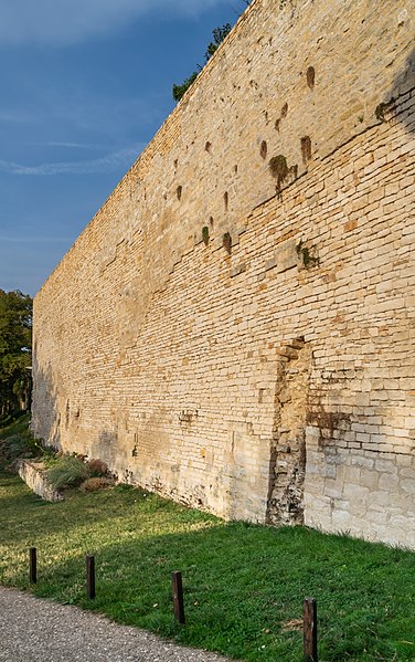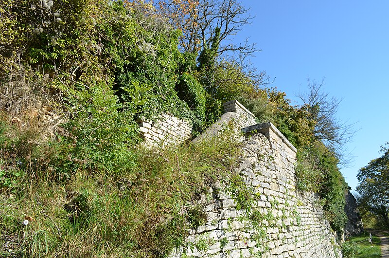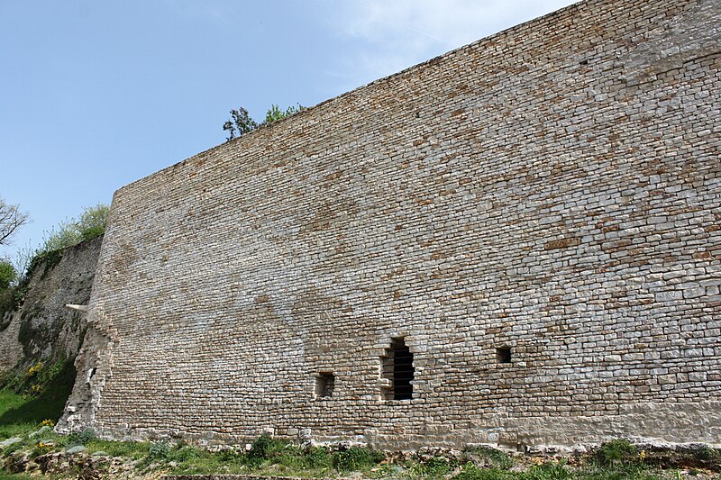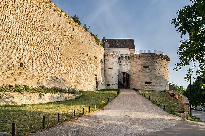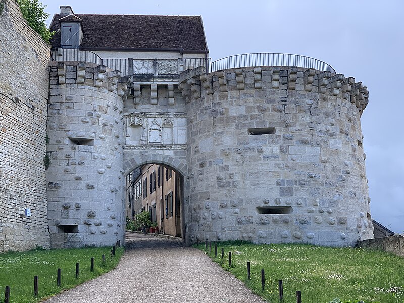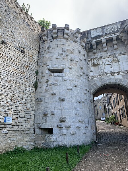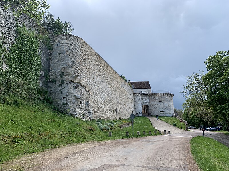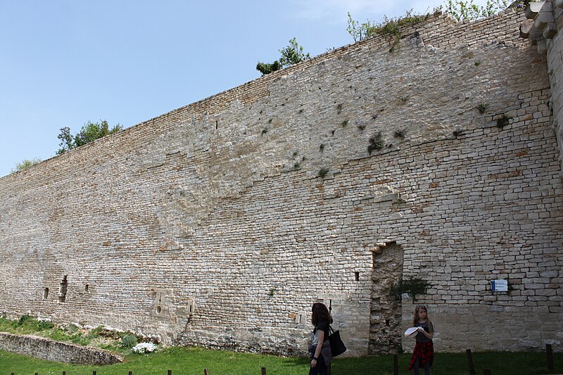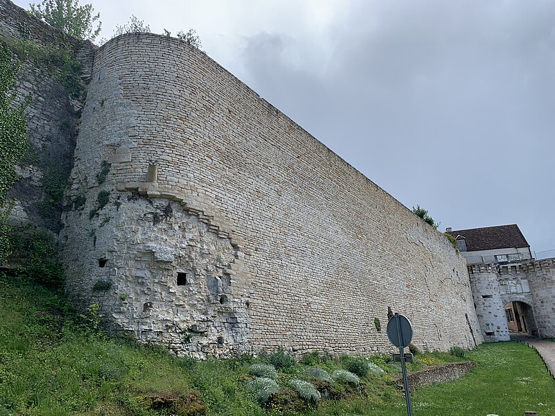 Témoignage du développement des fortifications urbaines du XIIe au XIVe siècle, l'ancienne enceinte de la ville de Vézelay (Yonne) constitue une composante monumentale étroitement liée à la puissante abbaye voisine, qui dut se protéger dans cette région de frontière. Élevée au XIIe siècle, l'enceinte a été complétée au XIVe siècle, avec notamment les portes Neuve et Sainte‑Croix, puis légèrement modifiée au XVIe siècle par la reconstruction de la porte Neuve. Le bourg se fortifie dès 1150 et la porte Sainte‑Croix paraît avoir été édifiée à cette époque pour donner accès à l'abbaye. Une phase importante de reconstruction intervient au XIVe siècle, puis une nouvelle porte est édifiée à la fin du XVe siècle : la porte Neuve, protégée par deux tours rondes de douze mètres de diamètre et des murs d'environ trois mètres d'épaisseur, était barrée par deux herses. Après la perte du rôle de place forte en 1723, le démantèlement commence en 1730. Les murs de courtine, qui épousent les contours naturels de la colline, sont conservés au nord et au sud, et la partie la plus ancienne des remparts se situe à l'est, à la jonction de l'enceinte de l'abbaye et de celle du bourg. La muraille s'étend sur environ 1,9 km, mesure en moyenne 2 mètres d'épaisseur et atteint une hauteur proche de dix mètres. Cinq tours datées du XIVe siècle subsistent, mais les murs présentent des fondations insuffisantes. L'examen de l'ouvrage montre que la défense reposait sur un simple chemin de ronde bordé d'un parapet et sur une importante masse de terre côté ville ; on n'y trouve pas les éléments pittoresques habituels des fortifications médiévales tels que créneaux, mâchicoulis, merlons ou archères. Un bourgeois, Étienne Anscelin, surnommé Borbolin, dirigea des travaux de dégagement des murailles en libérant les côtés du faubourg et en élevant plusieurs tours aux angles de l'enceinte. La porte Sainte‑Croix, dont la voûte menaçante a été démolie en 1814, est prolongée par une muraille remarquable par la qualité de sa construction ; elle était bordée d'une esplanade appelée le Mangoneau ou Butte‑du‑Moulin‑à‑Vent, en souvenir du moulin de l'abbaye. Après la haute muraille qui forme la terrasse de Vézelay se trouve un ancien guichet : on y accédait à la poterne par une échelle mobile et, à l'intérieur, un escalier à vis conduisait à la terrasse du guichet, protégée par des créneaux. La muraille se poursuit ensuite jusqu'à la porte Saint‑Étienne, dite ancienne porte du Barle, qui était octogonale en 1569. L'ensemble des remparts bénéficie de protections au titre des monuments historiques : avis de classement du 13 juillet 1875, inscription par arrêté du 23 mai 1995 et classement par arrêté du 20 juillet 1998.