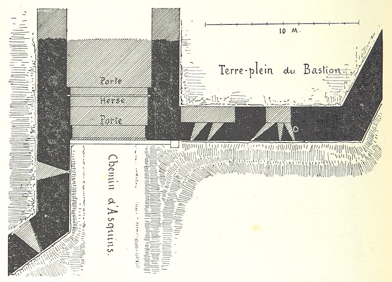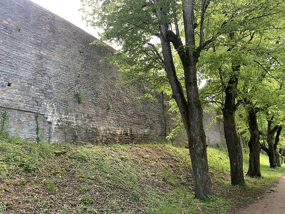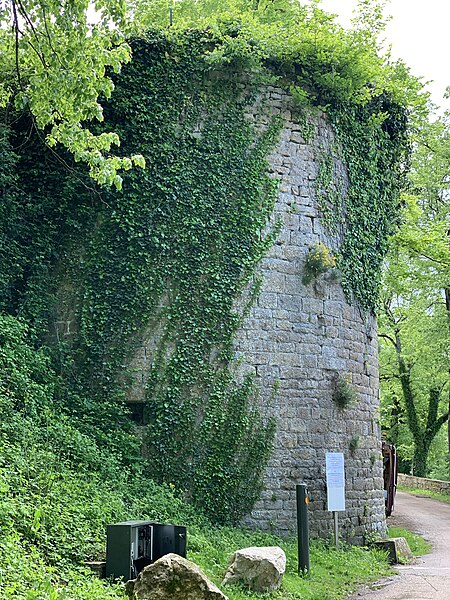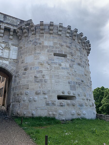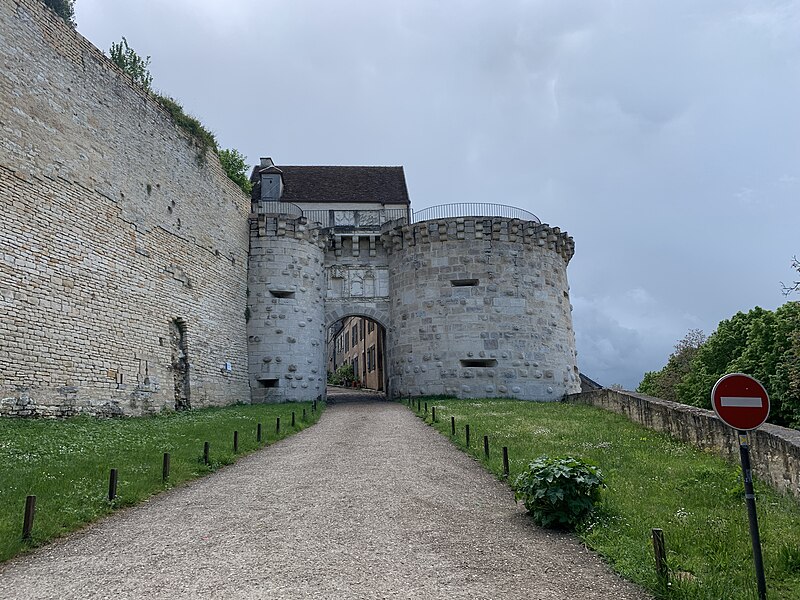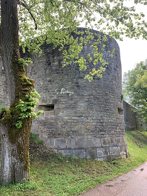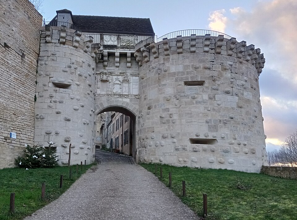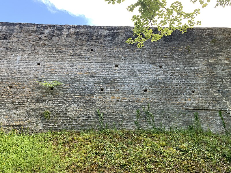 Témoignage du développement des fortifications urbaines du XIIe au XIVe siècle, l'ancienne enceinte de la ville de Vézelay (Yonne) constitue une composante monumentale étroitement liée à la puissante abbaye voisine, qui dut se protéger dans cette région de frontière. Élevée au XIIe siècle, l'enceinte a été complétée au XIVe siècle, avec notamment les portes Neuve et Sainte‑Croix, puis légèrement modifiée au XVIe siècle par la reconstruction de la porte Neuve. Le bourg se fortifie dès 1150 et la porte Sainte‑Croix paraît avoir été édifiée à cette époque pour donner accès à l'abbaye. Une phase importante de reconstruction intervient au XIVe siècle, puis une nouvelle porte est édifiée à la fin du XVe siècle : la porte Neuve, protégée par deux tours rondes de douze mètres de diamètre et des murs d'environ trois mètres d'épaisseur, était barrée par deux herses. Après la perte du rôle de place forte en 1723, le démantèlement commence en 1730. Les murs de courtine, qui épousent les contours naturels de la colline, sont conservés au nord et au sud, et la partie la plus ancienne des remparts se situe à l'est, à la jonction de l'enceinte de l'abbaye et de celle du bourg. La muraille s'étend sur environ 1,9 km, mesure en moyenne 2 mètres d'épaisseur et atteint une hauteur proche de dix mètres. Cinq tours datées du XIVe siècle subsistent, mais les murs présentent des fondations insuffisantes. L'examen de l'ouvrage montre que la défense reposait sur un simple chemin de ronde bordé d'un parapet et sur une importante masse de terre côté ville ; on n'y trouve pas les éléments pittoresques habituels des fortifications médiévales tels que créneaux, mâchicoulis, merlons ou archères. Un bourgeois, Étienne Anscelin, surnommé Borbolin, dirigea des travaux de dégagement des murailles en libérant les côtés du faubourg et en élevant plusieurs tours aux angles de l'enceinte. La porte Sainte‑Croix, dont la voûte menaçante a été démolie en 1814, est prolongée par une muraille remarquable par la qualité de sa construction ; elle était bordée d'une esplanade appelée le Mangoneau ou Butte‑du‑Moulin‑à‑Vent, en souvenir du moulin de l'abbaye. Après la haute muraille qui forme la terrasse de Vézelay se trouve un ancien guichet : on y accédait à la poterne par une échelle mobile et, à l'intérieur, un escalier à vis conduisait à la terrasse du guichet, protégée par des créneaux. La muraille se poursuit ensuite jusqu'à la porte Saint‑Étienne, dite ancienne porte du Barle, qui était octogonale en 1569. L'ensemble des remparts bénéficie de protections au titre des monuments historiques : avis de classement du 13 juillet 1875, inscription par arrêté du 23 mai 1995 et classement par arrêté du 20 juillet 1998.