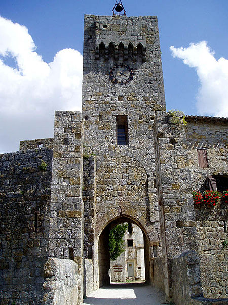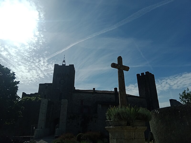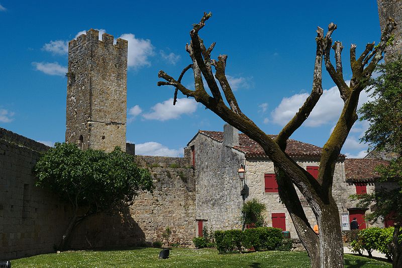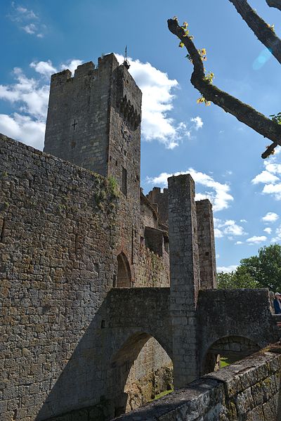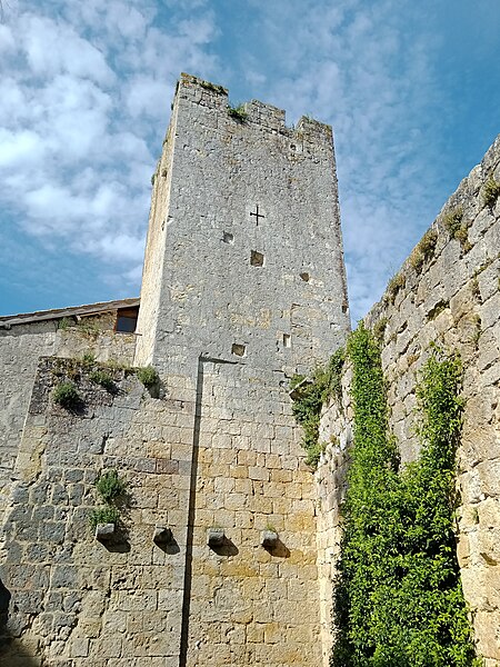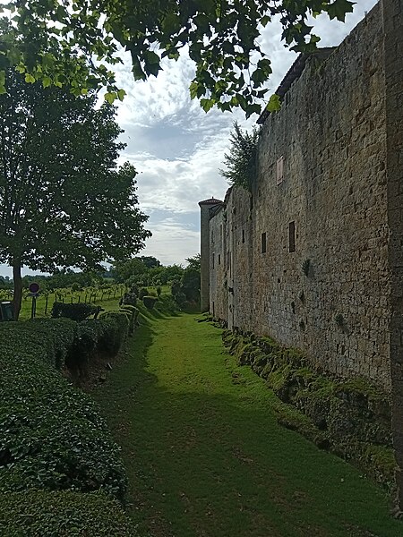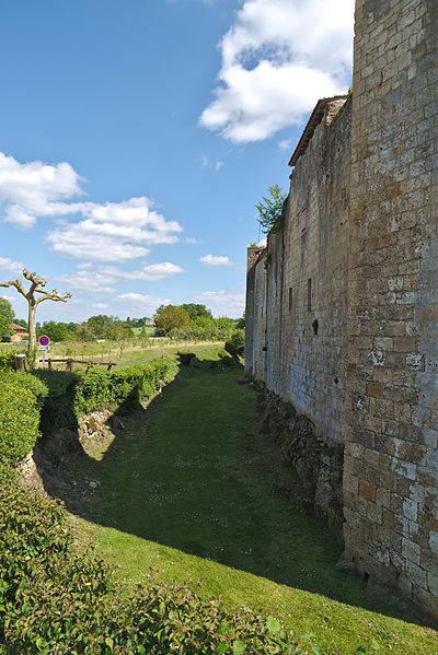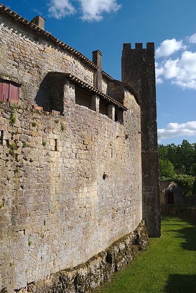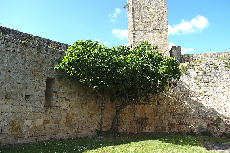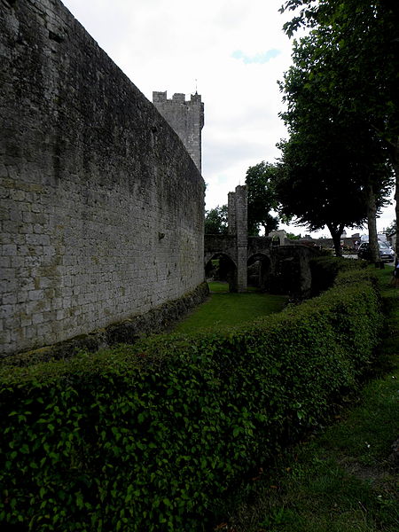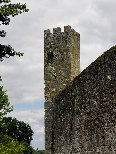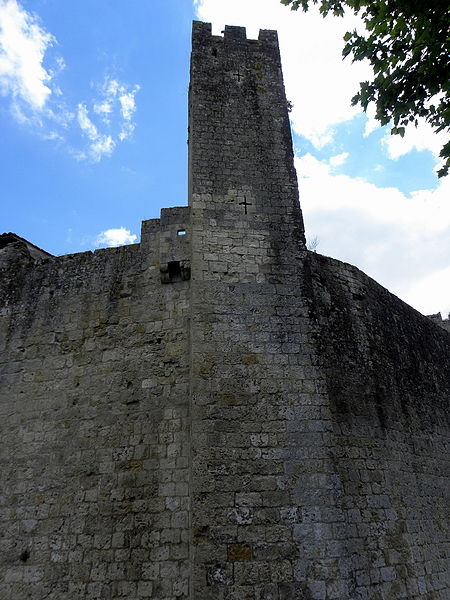 Terrains constituant les fossés de l'enceinte (cad. 470 à 479) : inscription par arrêté du 11 avril 1947 ; Immeubles et sols situés à l'intérieur de l'enceinte fortifiée (cad. 480, 500, 501, 503) : inscription par arrêté du 11 avril 1947 ; Tour d'entrée de l'enceinte, avec son pont : classement par arrêté du 23 mars 1950 ; Parties de l'enceinte situées de chaque côté de la tour d'entrée, d'une part, jusqu'à la limite Est de la propriété Dugoujon, d'autre part, jusqu'à la Tour Malo comprise : classement par arrêté du 24 juin 1950