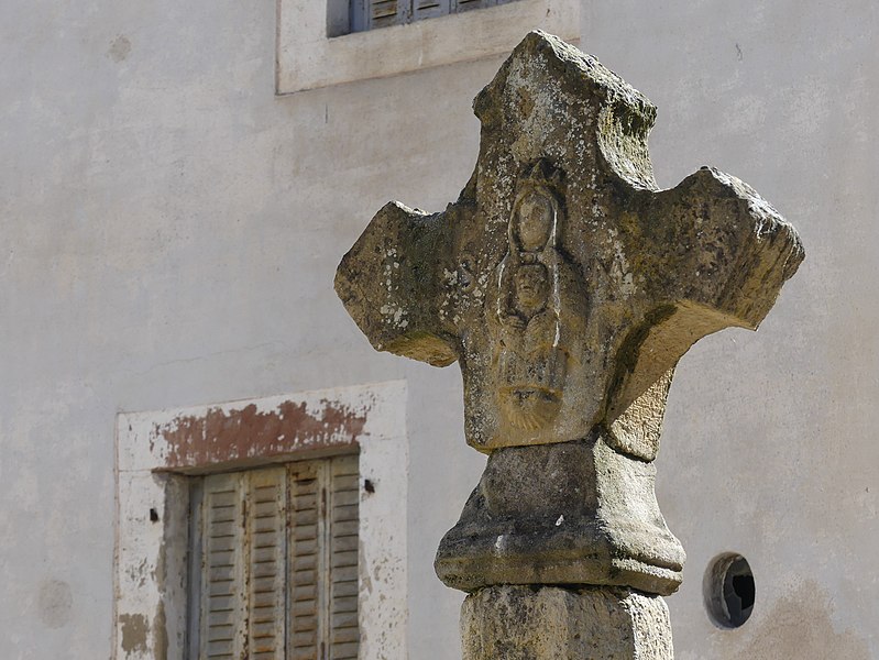 Enceinte ; portes, linteaux de portes et croix de carrefour à l'intérieur du village ; croix de chemin à l'extérieur (cad. 1467 à 1469, 1471, 1472, 1474, 1475, 1477, 1478, 1481, 1482, 1484, 1485, 1488, 1491 à 1494, 1497, 1498, 1505 à 1507, 1509, 1511, 1512, 1514, 1516 à 1509) : inscription par arrêté du 17 avril 1950