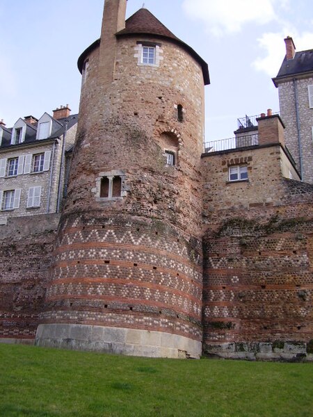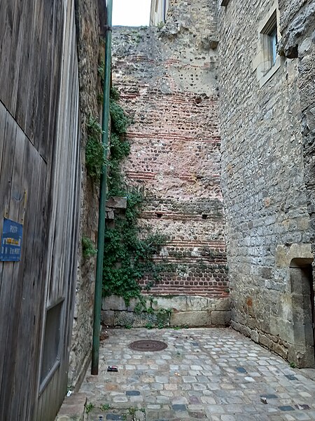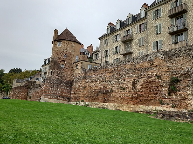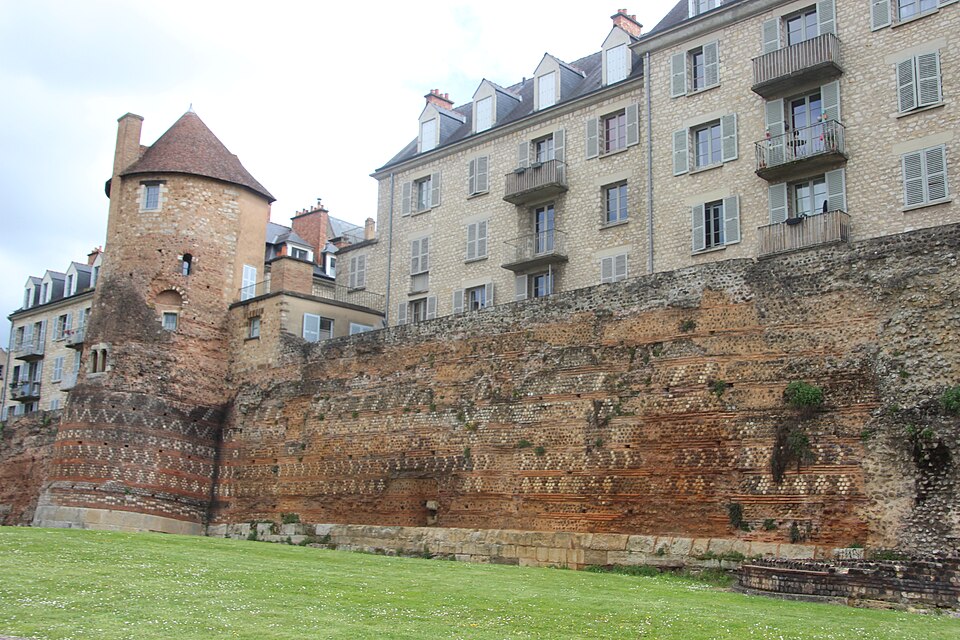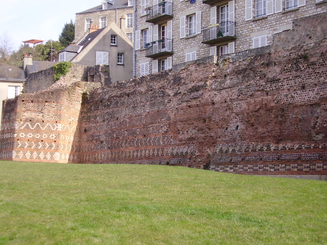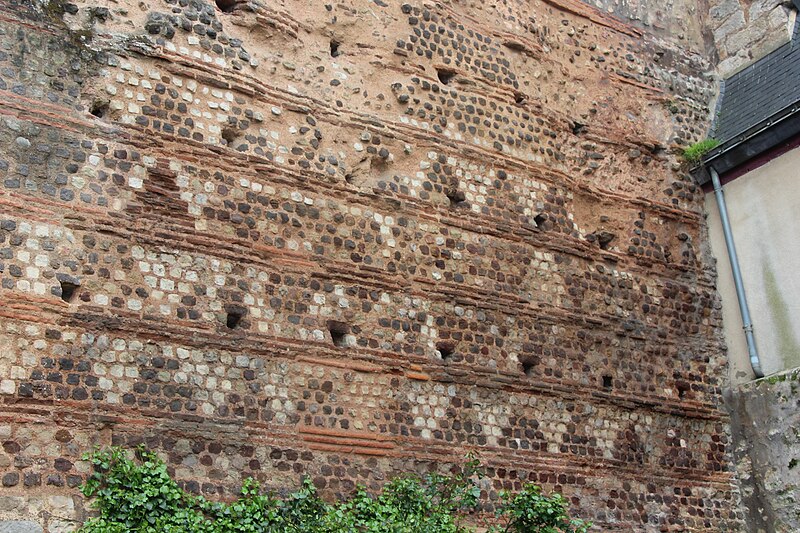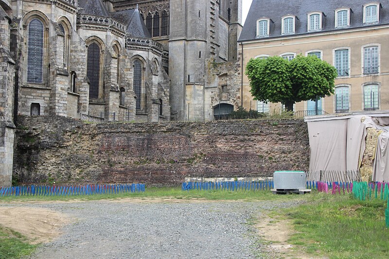 L'enceinte gallo-romaine du Mans, édifiée à la fin de l'Antiquité tardive autour de la cité alors nommée Vindinum ou Vindunum, a longtemps été datée de la fin du IIIe siècle mais des études récentes situent désormais sa construction au début du IVe siècle, au moins pour sa partie orientale. Les recherches montrent qu'il s'agit d'un ouvrage planifié et coûteux, réalisé avec l'accord des autorités impériales et victime d'un important investissement de main-d'œuvre et de ressources, signe de la richesse et du statut de la ville, selon Joseph Guilleux. La muraille a conservé une fonction défensive au Moyen Âge et a été préservée, en partie, parce que son élévation servait de soutènement à la ville haute et parce que des bâtiments se sont adossés à elle ensuite. D'une longueur initiale estimée à 1 300 mètres, l'enceinte est aujourd'hui très bien conservée sur environ 500 mètres et révèle des ornementations géométriques polychromes qui, selon Joseph Guilleux, n'ont « pas d'équivalents en France » ; ces teintes rouges ont valu au Mans le surnom de « ville rouge ». Classée au titre des monuments historiques depuis 1862, l'enceinte fait l'objet d'une candidature au patrimoine mondial de l'UNESCO depuis 2016.