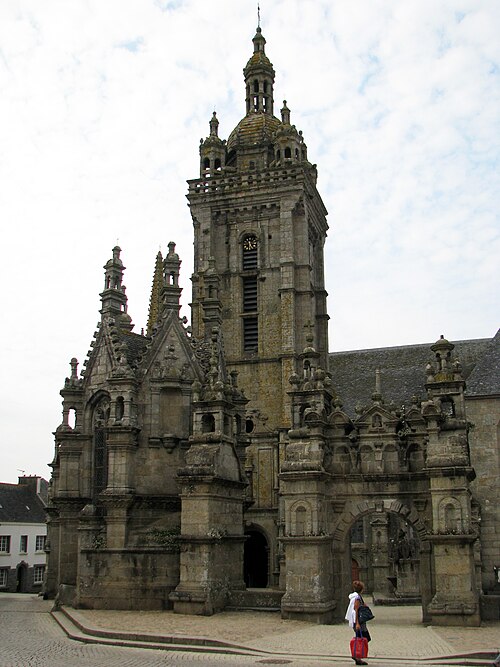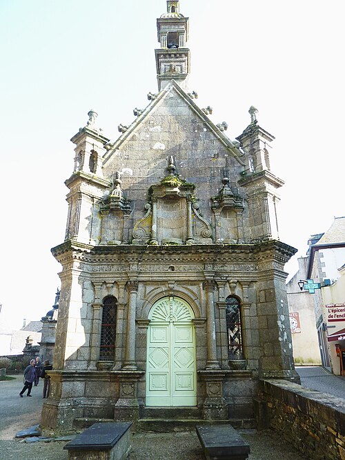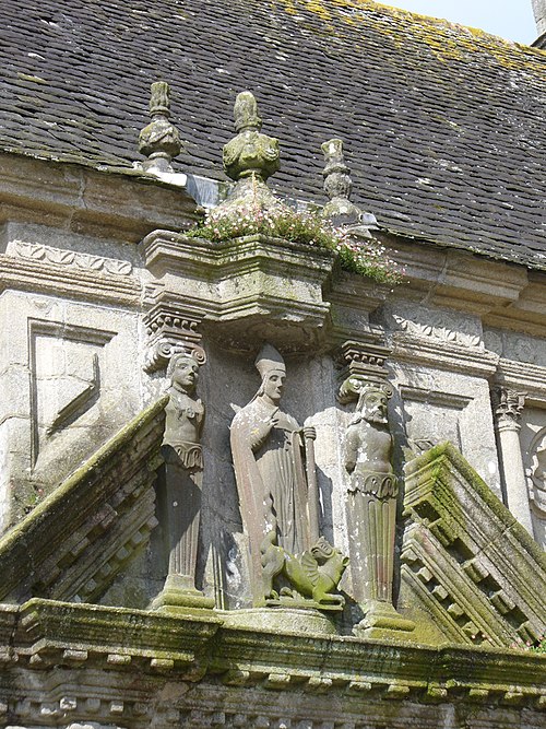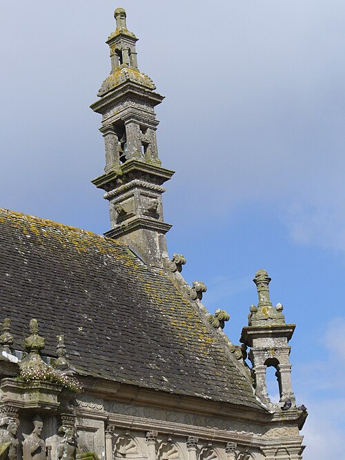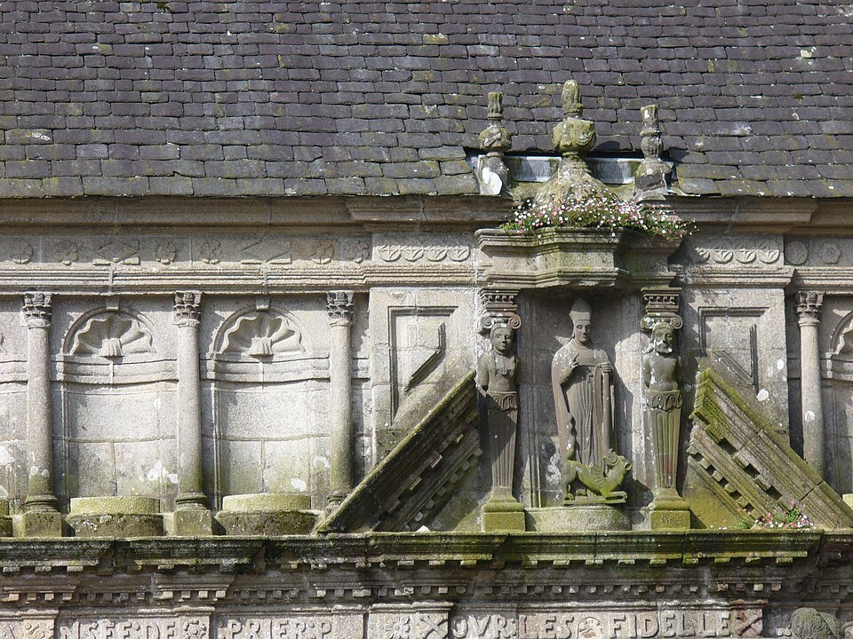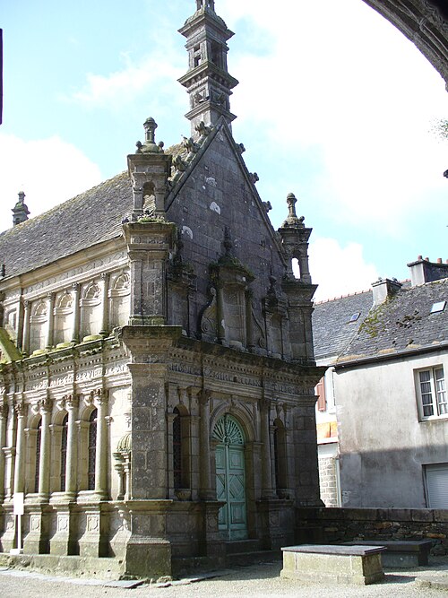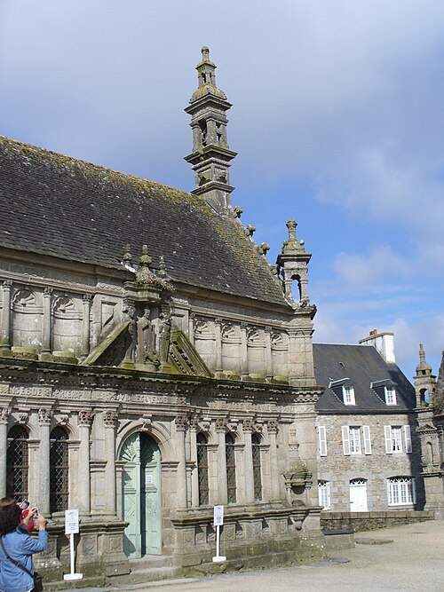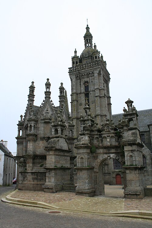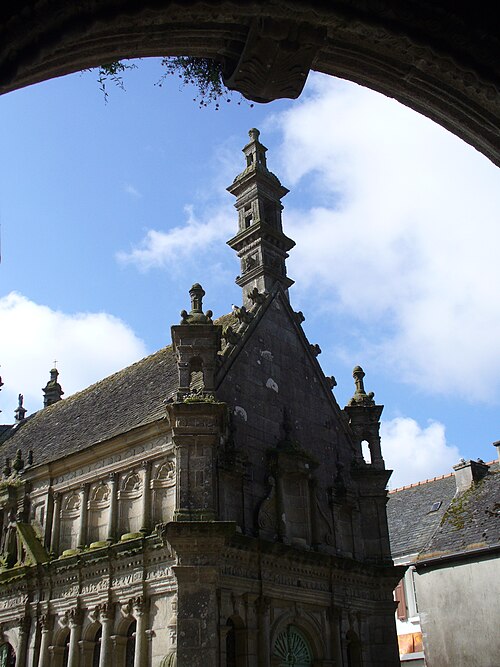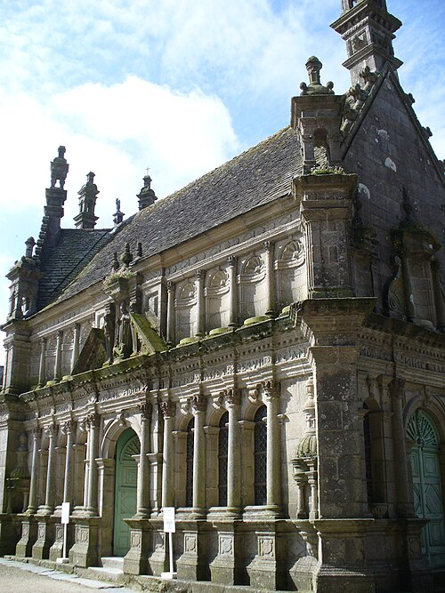 L’ossuaire, situé à gauche de la porte triomphale et construit entre 1676 et 1682 par l’architecte Jean Le Bescont, était destiné à la prière pour les défunts et servait de chapelle funéraire et de reliquaire ; il ne contient toutefois aucun ossement. Le fronton triangulaire de la façade porte une statue de saint Paul Aurélien tenant le dragon qu’il aurait capturé à l’île‑de‑Batz, et une Vierge d’argent au sommet du toit fait face au petit clocher. À l’intérieur, le retable de 1685 est dédié à saint Joseph, patron de la bonne mort, et la crypte abrite une Mise au tombeau spectaculaire. Avant la construction de l’ossuaire actuel, deux autres ossuaires existaient au nord du cimetière ; ils furent détruits vers 1850.