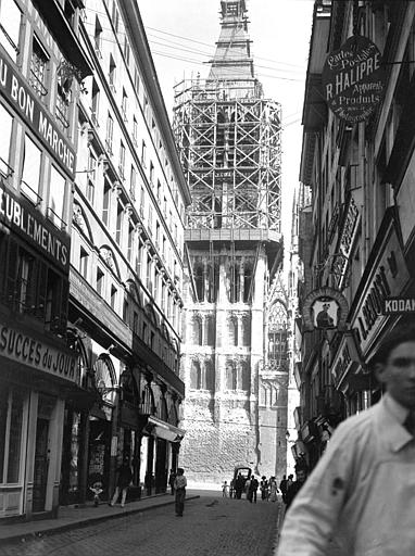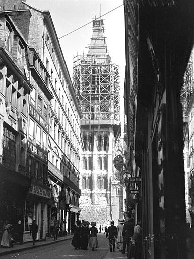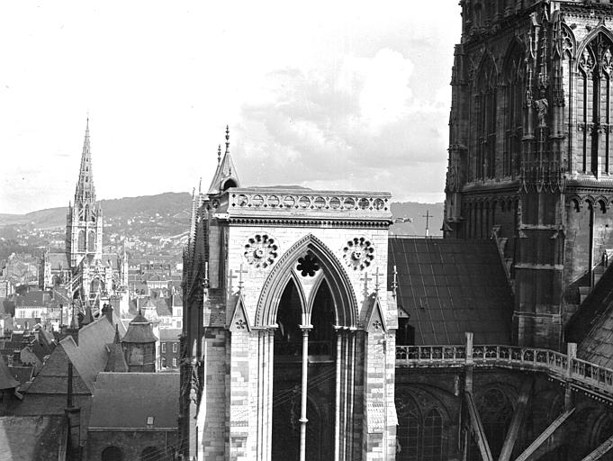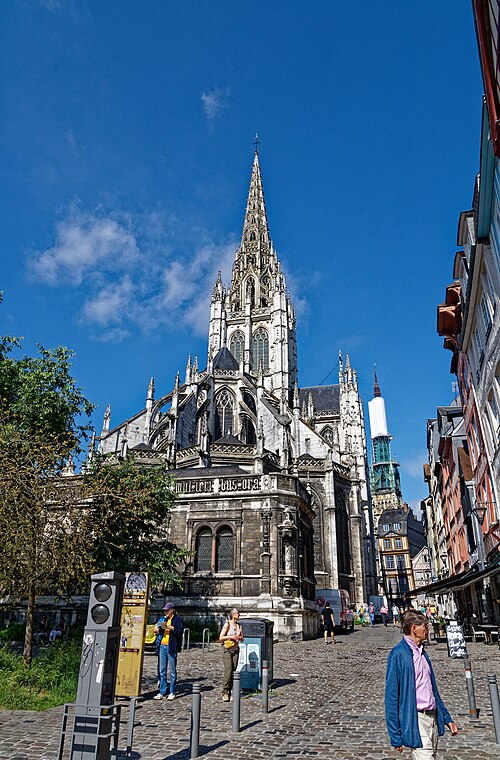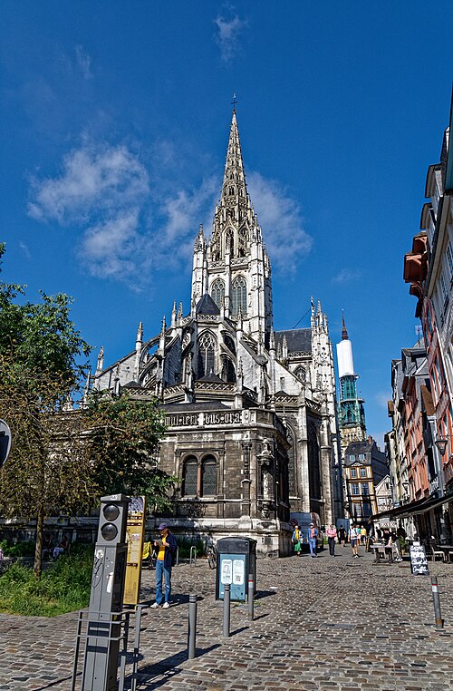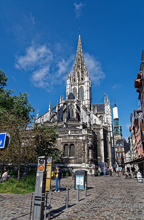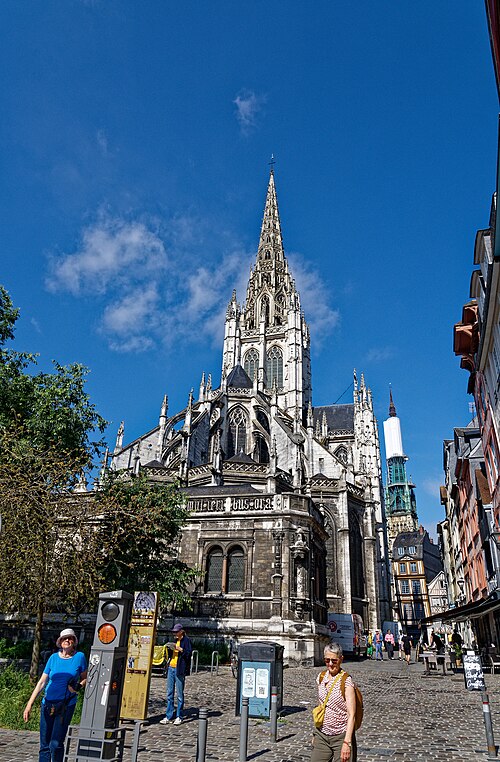 L’ensemble archiépiscopal de Rouen se situe au nord de la cathédrale Notre-Dame et rassemble la cité canoniale et l’archevêché. Le site tire ses origines d’un premier sanctuaire fondé par Saint-Mellon au IIIe siècle et d’un premier groupe épiscopal établi à la fin du IVe ou au début du Ve siècle. Une cathédrale romane existe à la fin du Xe siècle ; la tour Saint-Romain date de 1140-1170, la cathédrale gothique et le cloître se développent aux XIIIe-XIVe siècles, tandis que des travaux à l’archevêché interviennent à la fin du XIIIe siècle et au XVe siècle ; la Maison de l’Œuvre est construite en 1466 et la tour du Beurre entre 1485 et 1506. Le monument fait l’objet de nombreuses restaurations au XIXe siècle.