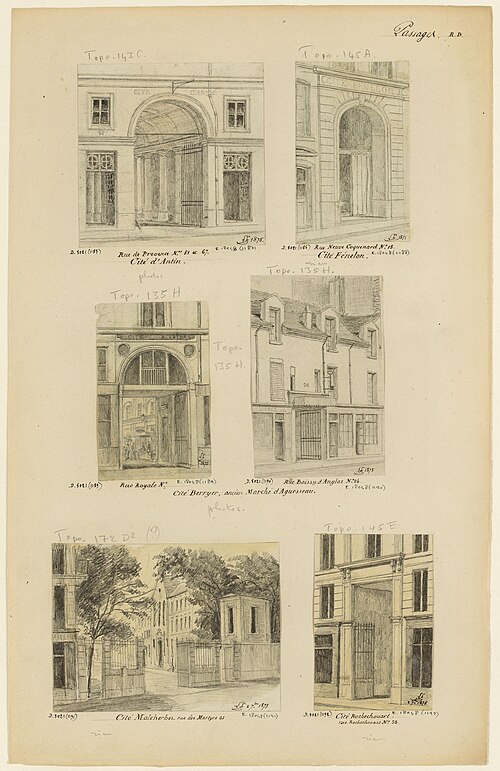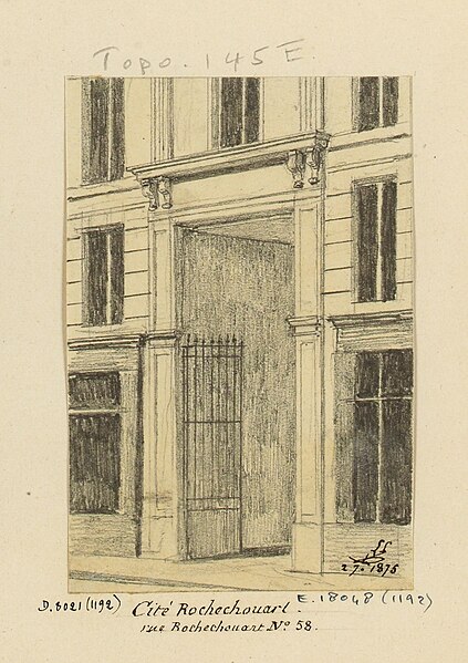 L’ensemble d’immeubles dit Cité Napoléon, édifié dans la seconde moitié du XIXe siècle, est un rare témoignage de phalanstère urbain implanté en ville sans lien direct avec un site industriel ; il se situe dans le 9e arrondissement de Paris aux 58-60 rue de Rochechouart et 25 rue Pétrelle et constitue la première cité ouvrière de la capitale. La Cité Napoléon a été construite entre 1849 et 1851 par l’architecte Marie‑Gabriel Veugny, dit « Veugny aîné » (1785 – vers 1856), à la demande de Louis‑Napoléon Bonaparte, élu président de la Deuxième République le 10 décembre 1848. Pendant sa détention au fort de Ham, Louis‑Napoléon avait publié en 1844 De l’extinction du paupérisme, qui proposait des colonies agricoles pour lutter contre la misère urbaine, et il se présenta pour représenter Paris en s’appuyant sur des idées sociales populaires auprès des ouvriers. Après les élections de juin 1848 et la suppression des ateliers nationaux, il reprit une partie du programme du Parlement du travail, qui prônait la construction de familistères pour loger des familles d’ouvriers et mutualiser consommation et services. En 1850 il envoya une délégation en Angleterre pour étudier les logements ouvriers et fit traduire l’ouvrage de l’architecte Henry Roberts, The Dwelling of the Labouring Classes. La construction d’une cité ouvrière modèle fut engagée : une société au capital de six millions de francs, dirigée par l’ingénieur Joseph Eugène Chabert, fut créée en février 1849, et Louis‑Napoléon fit un don de 500 000 francs le 12 janvier 1849. Le projet, réduit par rapport au programme initial, abandonna l’idée d’association et prévut l’implantation rue Rochechouart, à l’angle de la rue Pétrelle. L’ensemble se compose de quatre bâtiments qui donnent sur un grand jardin arboré agrémenté d’une fontaine. Le bâtiment le plus original, achevé en 1851 le long de la rue Marguerite‑de‑Rochechouart, est formé de deux corps de logis parallèles reliés par des passerelles et des escaliers ; sa partie centrale, éclairée par une toiture vitrée, est construite sur caves et comprend quatre étages abritant 86 logements. Les loyers étaient modulés selon l’équipement : 100 francs pour les pièces sans feu, 150 pour les pièces chauffées, et jusqu’à 300 francs pour un logement comprenant une chambre à feu, un cabinet clair et une petite cuisine. L’architecte a veillé à l’aération et à l’hygiène : les toilettes et l’évacuation des eaux usées étaient placées à chaque extrémité du bâtiment, à raison de quatre par étage. Les habitants disposaient de visites médicales gratuites, d’une garderie pour les enfants, d’un lavoir, d’un séchoir et d’un pavillon de bain séparé. Les autres bâtiments, disposés en cour, reprenaient un plan plus traditionnel ; l’accès se faisait par une unique entrée placée sous la surveillance d’un concierge. Inaugurée le 18 novembre 1851, la cité ne rencontra pas le succès escompté, sans doute en raison du règlement strict imposant notamment un couvre‑feu à 22 heures. L’ingénieur C. Détain jugea en 1867 que l’ensemble était satisfaisant du point de vue de la propreté et de la salubrité, mais qu’il rappelait trop la caserne, l’hôpital ou le cloître. La cité jouxtait les ateliers de la manufacture militaire Godillot, dont l’incendie de 1895 faillit détruire le quartier, et Alexis Godillot possédait un hôtel particulier au 56 rue Marguerite‑de‑Rochechouart. Peu d’exemples similaires furent réalisés à Paris : les conservateurs considéraient ce type de cité comme un « repaire » de révolutionnaires, tandis que les socialistes y voyaient des « ghettos » ouvriers placés sous surveillance policière en raison de leur fermeture par une grille. L’ensemble des immeubles a été inscrit au titre des monuments historiques par arrêté du 9 décembre 2003 ; les passerelles et escaliers le long de la rue Marguerite‑de‑Rochechouart ont été remis en état en 2011.