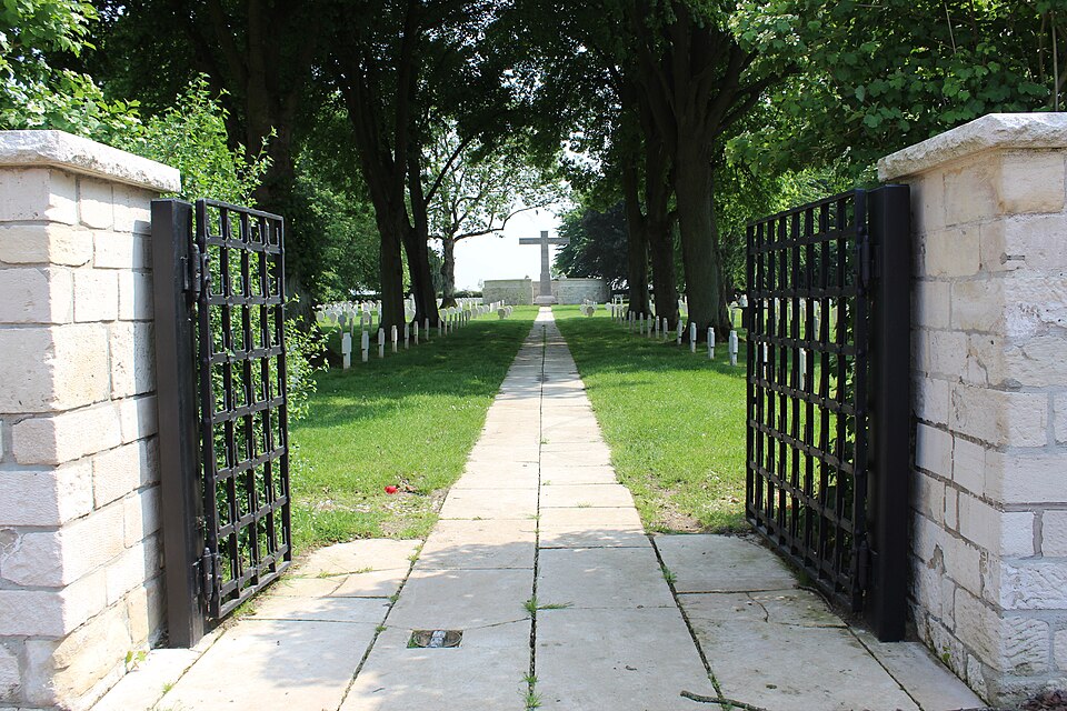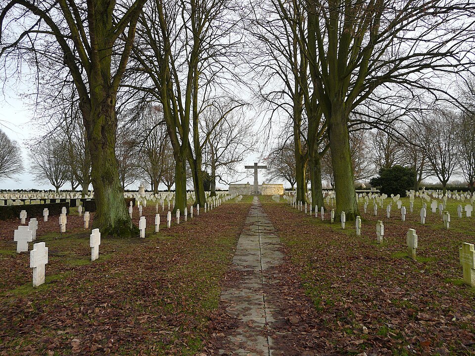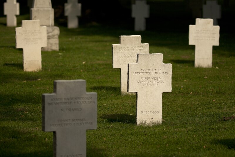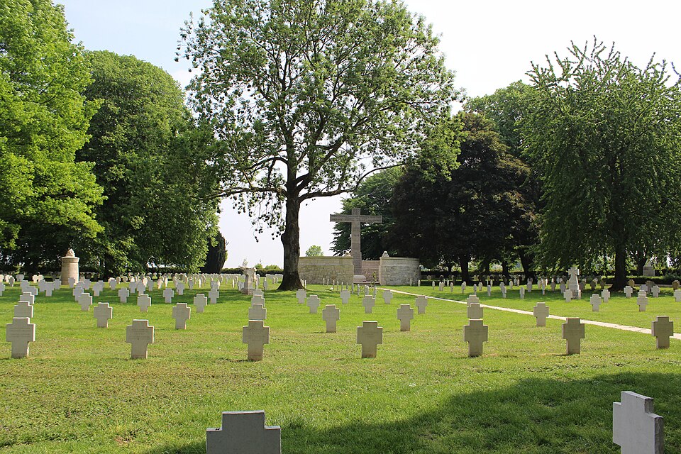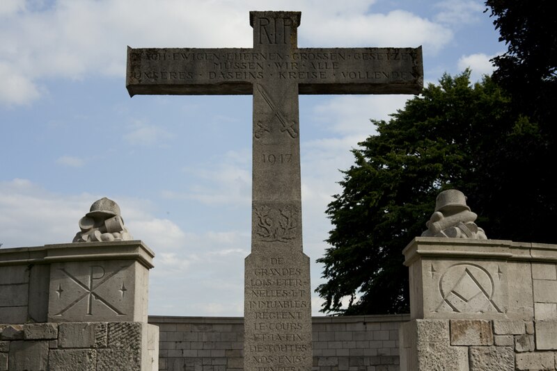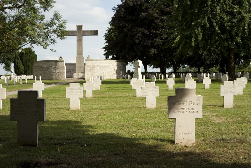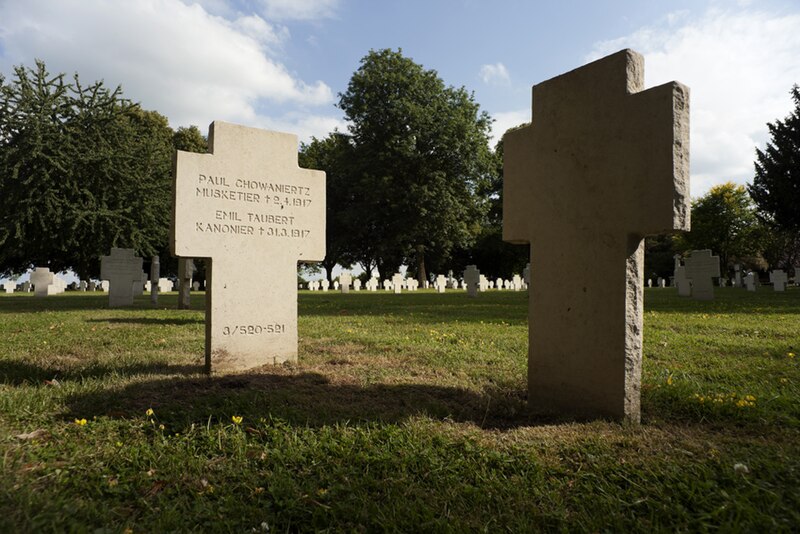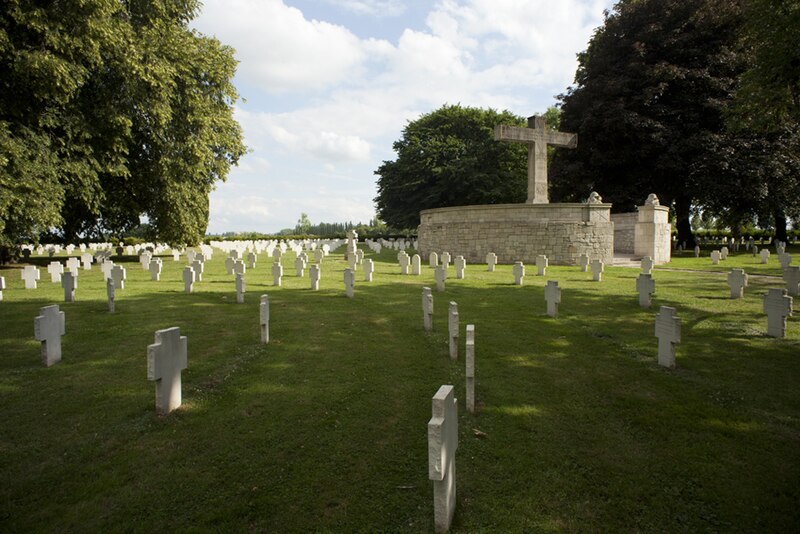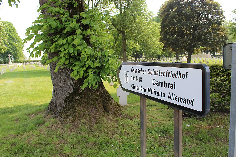 L'ensemble formé par le cimetière allemand de la route de Solesmes et le Cambrai East Military Cemetery se situe sur la commune de Cambrai, dans le département du Nord. Le cimetière militaire allemand de Cambrai a été établi par les troupes allemandes en mars 1917, alors que la ville accueillait postes de commandement, approvisionnement et hôpitaux. Des soldats allemands, français et anglais y furent inhumés dans ce nouveau cimetière militaire commun. Le nombre d'inhumations augmenta avec les combats d'Arras en avril 1917 puis avec l'attaque britannique sur Cambrai en novembre, lors du premier emploi massif de chars, qui causa de lourdes pertes aux troupes allemandes. D'autres pertes résultèrent de l'offensive allemande en mars 1918 et des combats défensifs de septembre et octobre 1918. En septembre 2023, le site a été inscrit parmi les 139 sites mémoriels et funéraires de la Première Guerre mondiale inscrits au patrimoine mondial de l'UNESCO. En 1966, la Commission des sépultures de guerre allemandes a procédé à d'importantes plantations d'arbres et d'arbustes, au verdissement de l'espace funéraire et au renouvellement des couvertures. À partir de 1977, les croix en béton et en bois ont été remplacées par des stèles en pierre gravée portant les noms et les dates. Un cimetière militaire russe de 192 tombes est intégré dans l'ensemble. Sur les 10 685 soldats allemands tombés au combat, 7 939 reposent en tombes individuelles, dont 242 restent inconnus, tandis que 2 746 victimes sont enterrées dans une tombe commune, parmi lesquelles seulement 442 sont identifiables par leur nom. Le carré militaire britannique, composé de 64 tombes, se trouve à l'intérieur du cimetière allemand ; il est entouré d'une haie et une stèle surmontée d'un casque allemand occupe le centre. Les 192 soldats russes inhumés ici étaient arrivés en France dans le cadre de l'Alliance franco-russe. Des informations complémentaires sont disponibles notamment via le Volksbund et divers portails consacrés à la Première Guerre mondiale et au patrimoine du Nord.