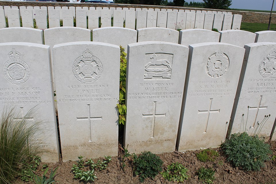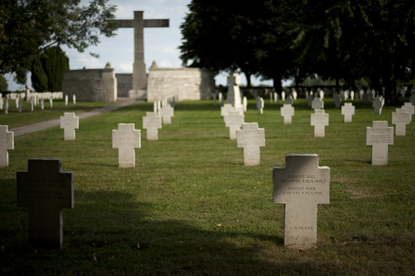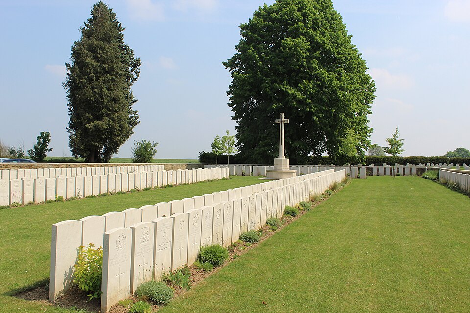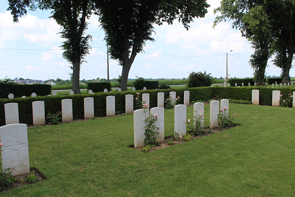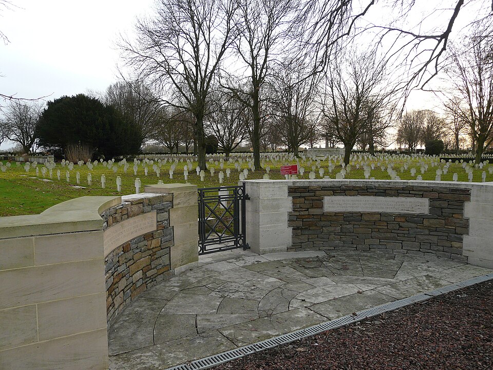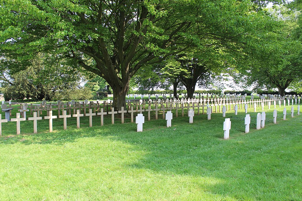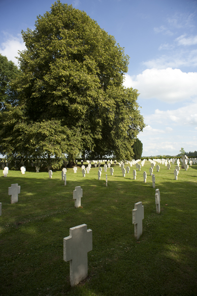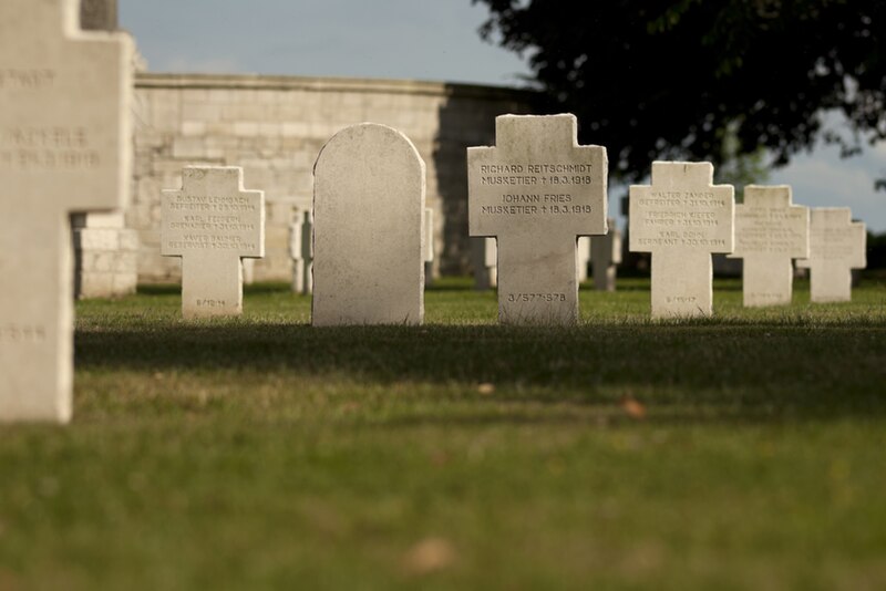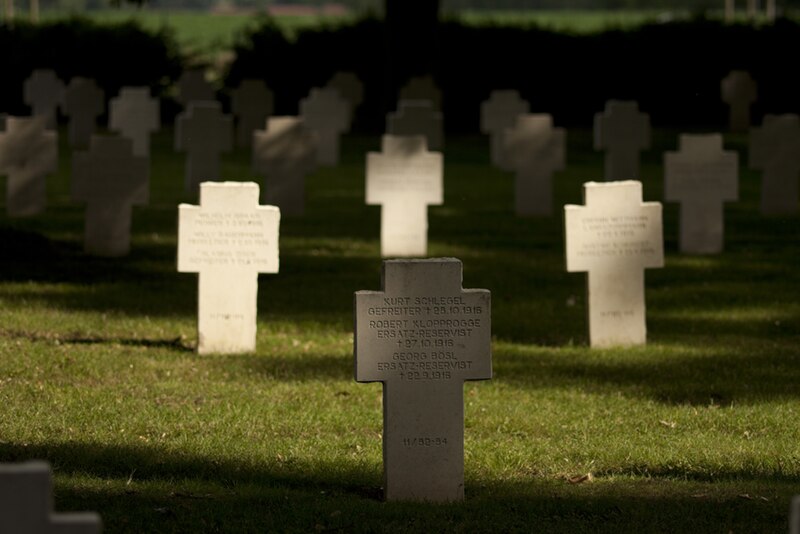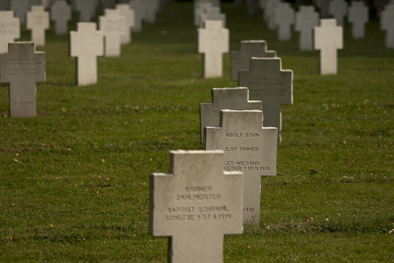 L'ensemble formé par le cimetière allemand de la route de Solesmes et le Cambrai East Military Cemetery se situe sur la commune de Cambrai, dans le département du Nord. Le cimetière militaire allemand de Cambrai a été établi par les troupes allemandes en mars 1917, alors que la ville accueillait postes de commandement, approvisionnement et hôpitaux. Des soldats allemands, français et anglais y furent inhumés dans ce nouveau cimetière militaire commun. Le nombre d'inhumations augmenta avec les combats d'Arras en avril 1917 puis avec l'attaque britannique sur Cambrai en novembre, lors du premier emploi massif de chars, qui causa de lourdes pertes aux troupes allemandes. D'autres pertes résultèrent de l'offensive allemande en mars 1918 et des combats défensifs de septembre et octobre 1918. En septembre 2023, le site a été inscrit parmi les 139 sites mémoriels et funéraires de la Première Guerre mondiale inscrits au patrimoine mondial de l'UNESCO. En 1966, la Commission des sépultures de guerre allemandes a procédé à d'importantes plantations d'arbres et d'arbustes, au verdissement de l'espace funéraire et au renouvellement des couvertures. À partir de 1977, les croix en béton et en bois ont été remplacées par des stèles en pierre gravée portant les noms et les dates. Un cimetière militaire russe de 192 tombes est intégré dans l'ensemble. Sur les 10 685 soldats allemands tombés au combat, 7 939 reposent en tombes individuelles, dont 242 restent inconnus, tandis que 2 746 victimes sont enterrées dans une tombe commune, parmi lesquelles seulement 442 sont identifiables par leur nom. Le carré militaire britannique, composé de 64 tombes, se trouve à l'intérieur du cimetière allemand ; il est entouré d'une haie et une stèle surmontée d'un casque allemand occupe le centre. Les 192 soldats russes inhumés ici étaient arrivés en France dans le cadre de l'Alliance franco-russe. Des informations complémentaires sont disponibles notamment via le Volksbund et divers portails consacrés à la Première Guerre mondiale et au patrimoine du Nord.
