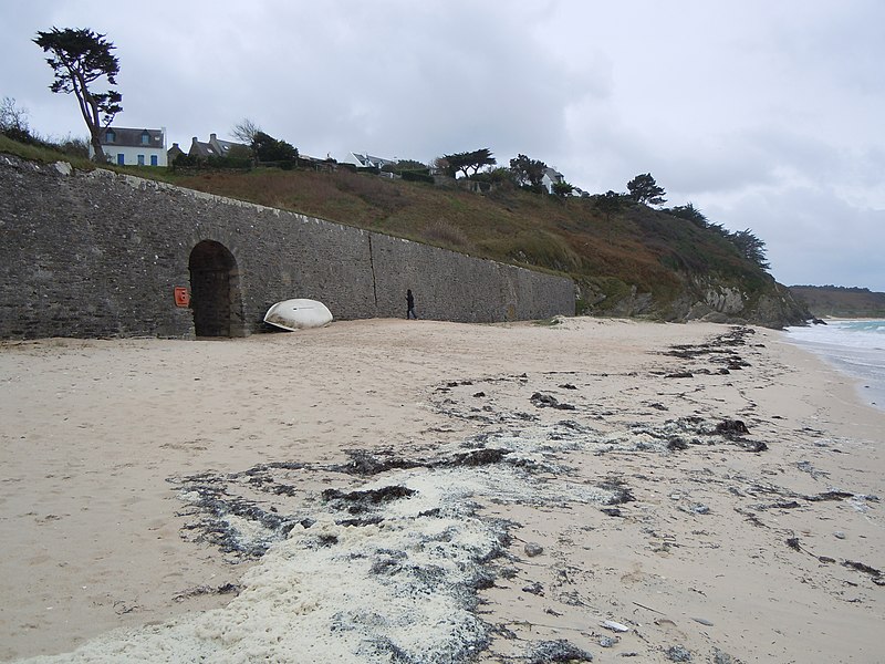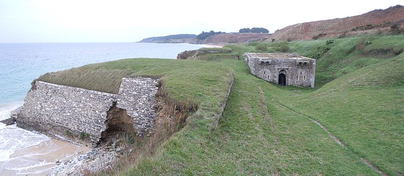 L’ensemble fortifié de La Ferrière est un dispositif de défense des XVIIIe et XIXe siècles, implanté le long des plages des Grands-Sables et de Samzun, sur la commune de Locmaria à Belle-Île-en-Mer (Morbihan). Lors de son séjour à Belle-Île en 1689, Vauban demanda de renforcer la défense des Grands-Sables, principal point de débarquement, et cinq ouvrages y sont mentionnés en 1692. Une campagne de travaux destinée à renforcer les défenses des Grands-Sables et de Samzun fut lancée en 1746 ; en 1747 on édifia un grand mur d’escarpe à simple redan, remplaçant le bastion projeté. La batterie de La Ferrière fut créée à cette occasion, à mi‑chemin entre les redoutes de Saint‑Laurent et de Ker David ; les travaux, interrompus à la fin de la guerre de Succession d’Autriche, reprirent au début de la guerre de Sept Ans. Les batteries et retranchements furent entretenus et renforcés pendant les guerres de la Révolution et de l’Empire. En 1841, la Commission mixte d’armement reconnut l’importance des Grands‑Sables et attribua trois batteries — du Bugul, de La Ferrière et de la Biche — qui, en 1858, furent les premières entreprises dans le programme pour Belle‑Île. La batterie de La Ferrière fut construite en 1858 ; son corps de garde crénelé, issu des études de 1846, fut entamé la même année et achevé en 1859. Ce réduit correspond au type de corps de garde dit « 1846 n°2 » et constitue le seul exemplaire subsistant de ce modèle sur l’île ; ses couronnements furent arasés peu après sa construction et il est aujourd’hui en partie enseveli par les dunes. L’armement initialement prévu — trois canons de 30 livres et trois obusiers de 22 cm, avec pour réduit une tour crénelée armée de deux obusiers de montagne — fut réduit à quatre pièces lourdes par la Commission de défense des côtes en 1862, la tour crénelée ayant été remplacée par un corps de garde renforcé dès les premières études. Les « dés » en maçonnerie des plates‑formes d’artillerie furent posés en 1862. Malgré une décision de désarmement en 1874, la batterie fut conservée comme point d’appui pour la défense mobile, comme le montrent des aménagements du corps de garde datables des années 1870‑1880. En 1939‑1940, un détachement de la garde des points importants du littoral fut affecté à la surveillance des Grands‑Sables. Pendant l’Occupation, les troupes allemandes renforcèrent la zone en aménageant de nombreux ouvrages aux abords de la plage et un réseau de tranchées. La muraille construite en 1747 couvre environ 1 200 mètres, soit la totalité des deux plages, et comporte trois portails fortifiés permettant l’accès (deux aux extrémités de la plage des Grands‑Sables et un à Samzun). L’ensemble est aujourd’hui en voie de dégradation importante : la base des fortifications est régulièrement attaquée par les tempêtes hivernales et la montée du niveau de la mer, et le fortin a été laissé à l’abandon. Les fortifications sont inscrites au titre des monuments historiques depuis le 2 mars 2001. Des photographies montrent notamment la partie ouest du mur depuis la plage des Grands‑Sables, le réduit de La Ferrière et la porte d’accès à la plage de Samzun.