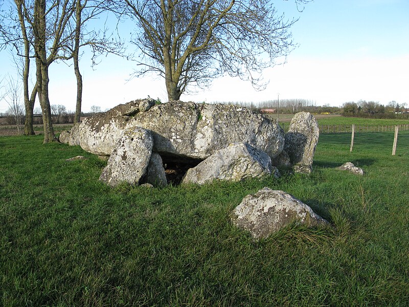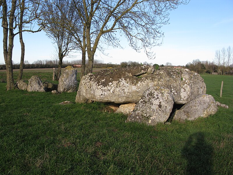 L'ensemble mégalithique de la Pierre Levée se compose de deux dolmens situés sur la commune de La Vallée, en Charente-Maritime. La propriété, anciennement détenue par l'État (ministère de la Culture), a été transférée à la commune le 27 août 2007. L'ensemble est classé au titre des monuments historiques depuis 1938. Le dolmen Sud se distingue par une table de couverture rectangulaire presque d'un mètre d'épaisseur, mesurant 5,20 m de long sur 4 m de large et estimée à 50 tonnes, reposant sur cinq orthostates. Au sud de la chambre, des dalles visibles, hautes d'au maximum 1,30 m, correspondent aux vestiges du couloir d'accès. Le dolmen Nord est ruiné : six orthostates subsistent et en dessinent encore le pourtour, tandis que la table de couverture gît renversée et brisée en deux parties. Un troisième dolmen, aujourd'hui disparu, se trouvait au nord des deux autres. L'ensemble a été érigé entre 4 000 et 3 600 av. J.-C., et il est probable qu'un unique tumulus, désormais disparu, englobait les trois chambres funéraires. Fouillés à plusieurs reprises au XIXe siècle, notamment par François Daleau, les dolmens ont livré plusieurs mâchoires humaines, des fragments de poteries attribués au Néolithique et à l'âge du Bronze, ainsi que quelques éclats de silex. Selon une légende locale, la Sainte Vierge aurait laissé tomber les pierres qu'elle transportait dans son tablier, formant ainsi les édifices visibles aujourd'hui.