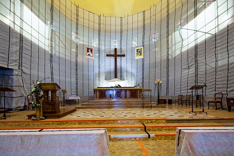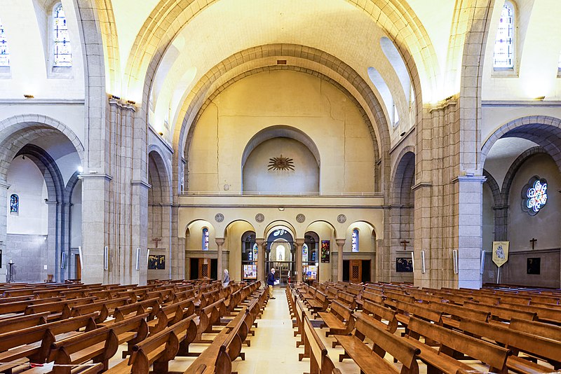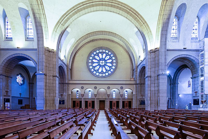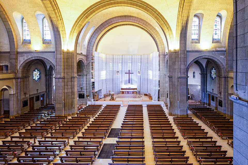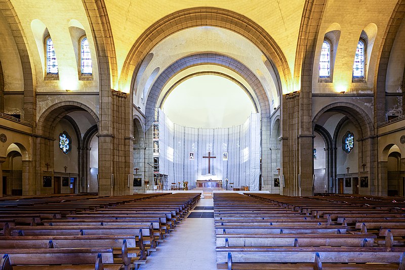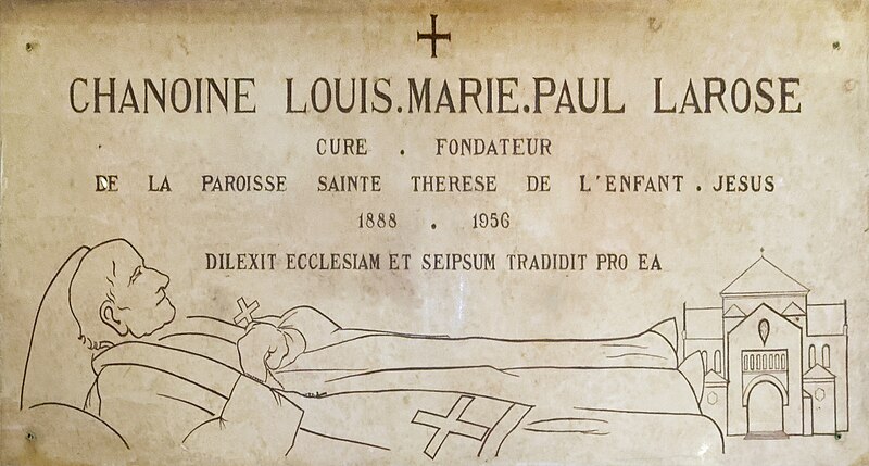 L'ensemble paroissial Sainte-Thérèse réunit l'église, le presbytère et l'école Sainte-Agnès avec le collège Saint-Théophane-Vénard, formant un groupe architectural et urbain homogène. L'église a été édifiée entre 1933 et 1961 d'après les plans de l'architecte nantais René Ménard, achevée par son collaborateur Maurice Ferré, avec la participation du sculpteur Jean Fréour et du maître-verrier Gabriel Loire. Le presbytère a été construit par René Ménard entre 1940 et 1947. L'école diocésaine mixte, érigée en même temps que l'église, a été agrandie dans les années 1960-1970. L'utilisation marquée de la brique confère à l'ensemble une forte unité architecturale et illustre l'extension urbaine de Nantes au XXe siècle. Situé en Loire-Atlantique, le site est inscrit au titre des monuments historiques par arrêté du 27 janvier 2011. L'église occupe le côté sud-ouest de la place Alexandre-Vincent, dans le quartier Breil-Barberie, et se trouve en vis-à-vis des autres bâtiments paroissiaux de l'autre côté de la rue du Chanoine Larose. La création de la paroisse a été décidée par Mgr Le Fer de La Motte pour accompagner l'urbanisation du quartier; elle fut placée sous le patronage de sainte Thérèse de l'Enfant-Jésus à la suite d'un pèlerinage du premier titulaire, l'abbé Louis Larose. Une première chapelle provisoire fut installée dans un hangar désaffecté sur la route de Vannes. À la demande de l'abbé Larose, René Ménard et Maurice Ferré conçurent une église de style romano-byzantin en béton, ravalée en brique rouge de Beauvais et appuyée sur des colonnes de granit de Saint-Macaire-en-Mauges. Le projet prévoyait des chapiteaux non décorés, une coupole octogonale et une tour-campanile dont la hauteur initialement envisagée devait atteindre 70 mètres, mais qui s'arrêta finalement à 23 mètres. La première pierre fut posée le 3 octobre 1935; les fondations furent creusées le 29 mars 1939. Les travaux subirent des interruptions et des destructions, notamment lors des bombardements du 16 septembre 1943 qui endommagèrent la partie sud de l'édifice; le chanoine Larose fit alors distribuer les tuiles destinées à la construction aux sinistrés du quartier. Les travaux reprirent en 1952 et la chapelle sous la tour fut ouverte au culte le 4 octobre de la même année. En 1958, l'église s'enrichit d'une œuvre de Jean Fréour, un Christ en gloire; elle accueillit la messe de minuit de Noël 1959 et fut consécrée en octobre 1960 par Mgr Villepelet, évêque de Nantes, et Mgr Jacquemin, évêque de Bayeux et Lisieux. L'ensemble comprend, outre le presbytère et la nef orientée vers le chœur avec son orgue, des cloches nommées Marie-Françoise d'Amboise et Marie-Thérèse de l'Enfant-Jésus.