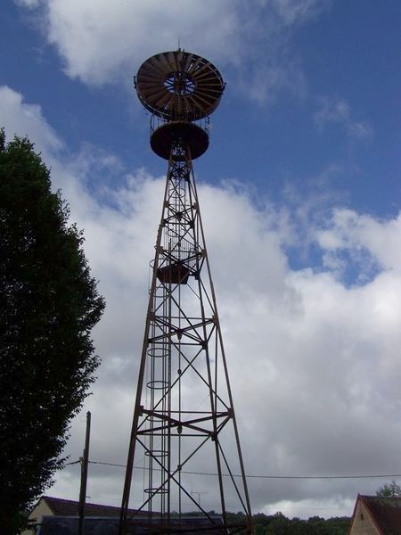 L'éolienne de Vaudeurs, située dans l'Yonne, a été conçue pour alimenter la commune, le lavoir et les abreuvoirs publics en eau. Le projet débute en 1922 et la municipalité décide d'acquérir un terrain, de forer un puits, d'établir un réservoir en ciment de 80 m3 et d'y installer une éolienne. Après examen de plusieurs offres, le système Bollée monté sur pylône est retenu ; il s'agit d'un groupe de trois pompes actionnées par une turbine éolienne installée sur un pylône de 18 mètres, avec un moteur de secours à essence prévu. Le dossier est confié en avril 1922 à M. Hodry, agent voyer de l'arrondissement de Joigny ; les établissements Carruelles de Paris, Chêne de Saint-Quentin et la maison Araou de Narbonne sont écartés pour insuffisance de performance ou expériences insatisfaisantes dans le département. Le forage du puits et la construction de l'abri destiné aux pompes et au moteur de secours sont attribués à l'entreprise Jouannet de Migennes, tandis que la construction du réservoir en ciment armé est confiée à la société Les bétons Cimenfer de Montereau. Le devis, estimé à 58 400 francs, est adopté le 22 décembre 1922 ; pour financer l'opération, le conseil municipal contracte un emprunt de 25 000 francs auprès du Crédit Foncier, voté le 8 avril 1923, remboursable sur trente ans par une imposition extraordinaire. Construite en 1923, l'éolienne a fonctionné jusque dans les années 1950 et reste l'une des dernières machines de ce type en Bourgogne. Le réservoir en ciment armé, accolé à l'abri des pompes, a été détruit à la fin des années 1970 lors de la construction de la salle des fêtes, et le lavoir, devenu propriété privée en 1980, a été désaffecté et remanié. En 1989, le conseil municipal décide la restauration de l'éolienne : les travaux de serrurerie sont adjugés à la société Jennetie de Sens, le sablage et la peinture à M. Peynot de Vaudeurs, pour un coût de 80 000 francs financé par un Contrat de pays, un don du Comité des fêtes et le solde pris en charge par la commune. L'éolienne, récemment réfectionnée, est en bon état ; l'ancien abri des pompes, régulièrement entretenu, sert aujourd'hui de local technique, tandis que le puits subsiste sans ses pompes ni son moteur de secours. L'édifice est inscrit au titre des monuments historiques et possède le label « Patrimoine du XXe siècle ».
