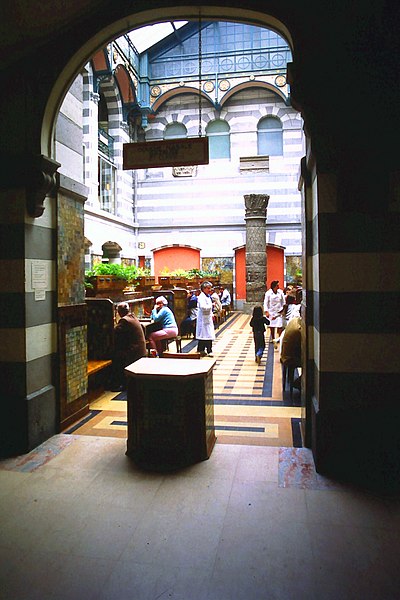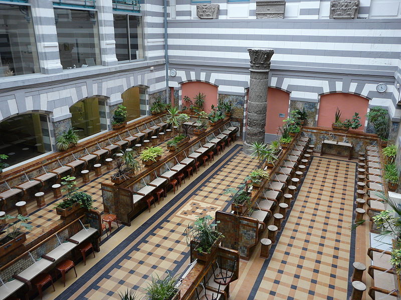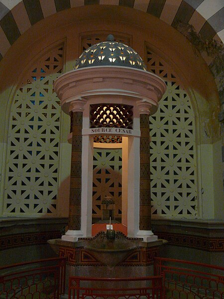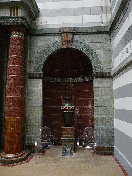 Le Mont-Dore devint une villégiature prisée sous la Restauration et le Second Empire en raison de la qualité thérapeutique de ses eaux sulfureuses, ce qui entraîna un accroissement continu de la clientèle thermale et la nécessité d'agrandir l'établissement. Dès 1809, le préfet Ramond et le médecin-inspecteur Michel Bertrand envisagèrent la transformation des bains du XVIIIe siècle ; en 1810 le projet fut confié à l'ingénieur Cournon et à l'architecte parisien L.-C.-F. Ledru. Les plans furent approuvés en 1816 et les travaux commencèrent en 1817; au cours du chantier, des vestiges gallo-romains d'un temple et de thermes furent découverts et le projet fut remanié. Le dernier bâtiment de ce premier ensemble fut achevé à la fin de 1824 et la réception définitive des travaux intervint en 1832. En 1850 Agis-Léon Ledru dirigea la construction d'un établissement des vapeurs, agrandi en 1875 par Louis Ledru-Gaultier de Biauzat, et des réaménagements intérieurs eurent lieu dans les années 1870 et 1880. Chargé d'un nouvel agrandissement à la fin du siècle, Émile Camut conserva le parti extérieur de Ledru en ajoutant à la façade principale deux pavillons d'angle et un étage supplémentaire, mais remania entièrement l'intérieur ; les espaces créés au nord et au sud furent ouverts progressivement entre 1890 et 1894, la réception définitive ayant lieu fin 1894. Au XXe siècle, d'importantes transformations furent réalisées : entre 1934 et 1938 l'architecte auvergnat E. Pincot transforma les deux cours, les salles centrales du rez-de-chaussée et du premier étage et la source du second, puis, entre 1942 et 1957, un étage de laboratoires et de services fut ajouté. Dans les années 1970, l'architecte Bosser remplaça l'ancien établissement des vapeurs par un nouveau bâtiment au nord et fit édifier une piscine (1974-1975), et l'aile sud fut étendue en 1983. L'architecture conserve l'esprit d'origine avec des influences des thermes romains, matérialisées notamment par la réutilisation de vestiges antiques, et de l'art roman auvergnat, perceptible dans le plan basilical et les arcades en plein cintre de l'intérieur. Des équipements modernes, tels que l'établissement des vapeurs et la piscine, complètent aujourd'hui l'ensemble. L'établissement thermal fait l'objet d'une protection partielle au titre des monuments historiques : certaines parties ont été inscrites par arrêté du 30 octobre 1987 et d'autres classées par arrêté du 6 octobre 1989. Pour approfondir, on peut se référer à l'ouvrage d'Annie Lemonnier-Lafont de 1997 consacré à l'intervention d'Émile Camut sur l'établissement thermal du Mont-Dore.