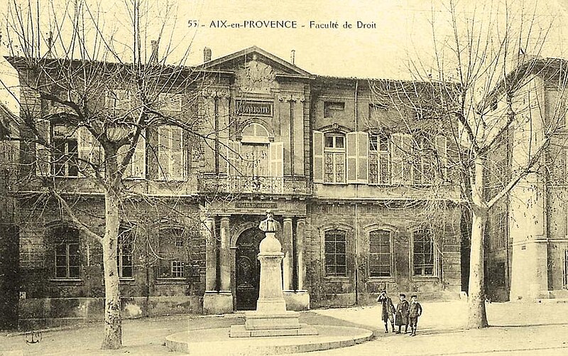 Le projet des nouvelles facultés fut confié en 1933 à Jean Boët, qui envisageait une implantation boulevard du Roi René, mais la municipalité d'Aix-en-Provence attribua en 1936 le site actuel, au 3 avenue Robert Schuman. Après le décès de Jean Boët en 1947, le projet passa à René Egger, puis à son associé Fernand Pouillon. Le chantier de la bibliothèque Schuman commença en 1950 et s'acheva en 1954 ; le bâtiment principal de la faculté fut achevé en 1955 et labellisé Patrimoine du XXe siècle en 2006.