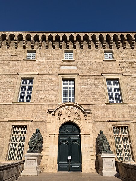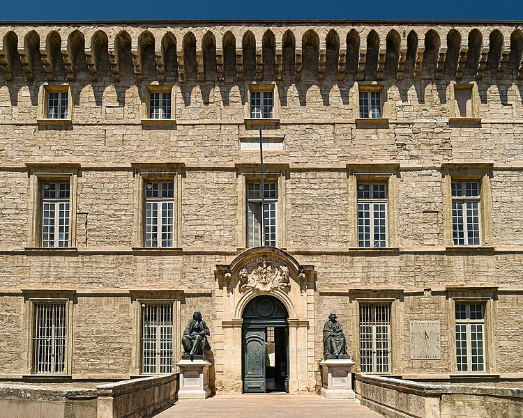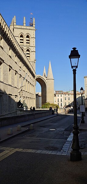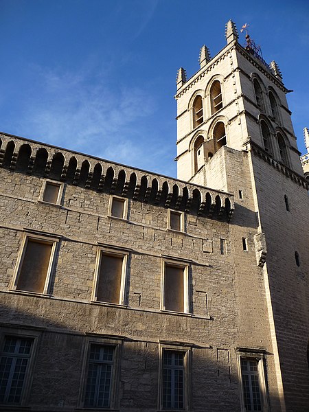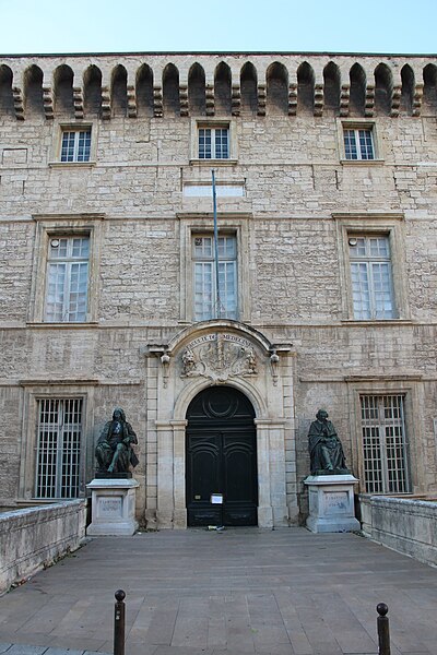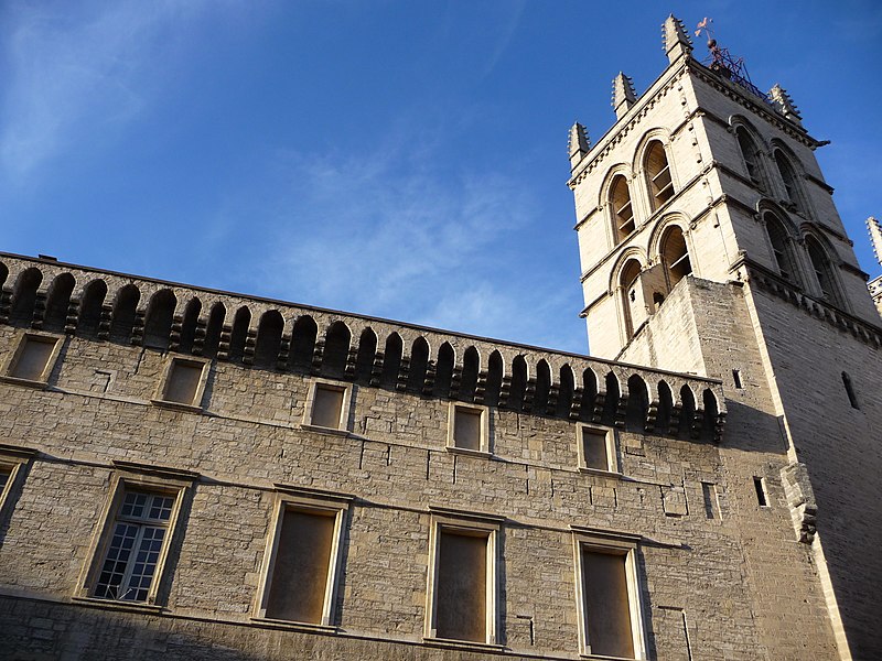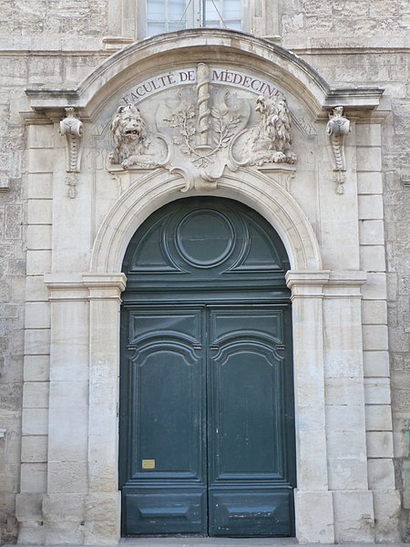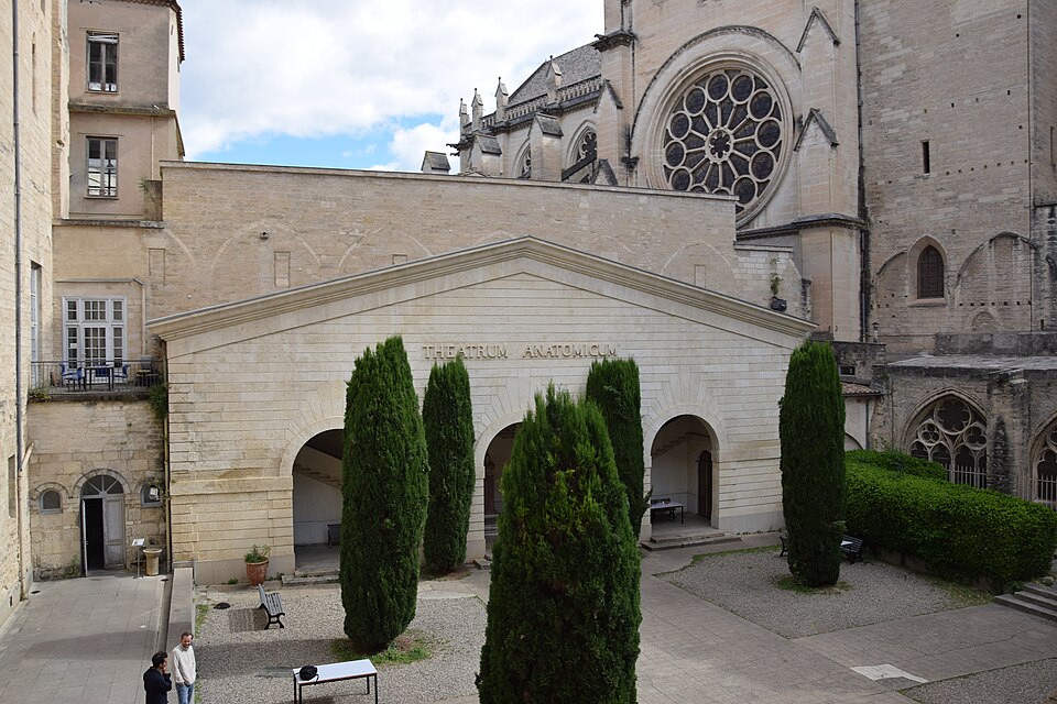 Jusqu'au XIVe siècle, les cours se tenaient chez les maîtres ou dans des églises ; l'enseignement anatomique sur cadavre apparaît dès 1340. Sous l'impulsion du pape Urbain V ont été construits au milieu du XIVe siècle le collège des douze médecins et le collège Saint-Benoît-Saint-Germain, ce dernier formant avec son abbatiale et son cloître un ensemble monumental qui deviendra plus tard la cathédrale Saint-Pierre. Transformé en palais épiscopal à partir du XVIe siècle, le site subit des dégradations pendant les guerres de Religion, puis des restaurations et des aménagements d'apparat aux XVIIe et XVIIIe siècles.