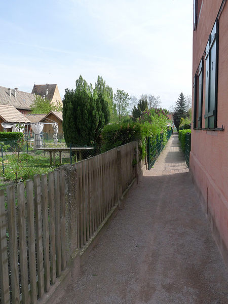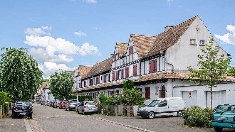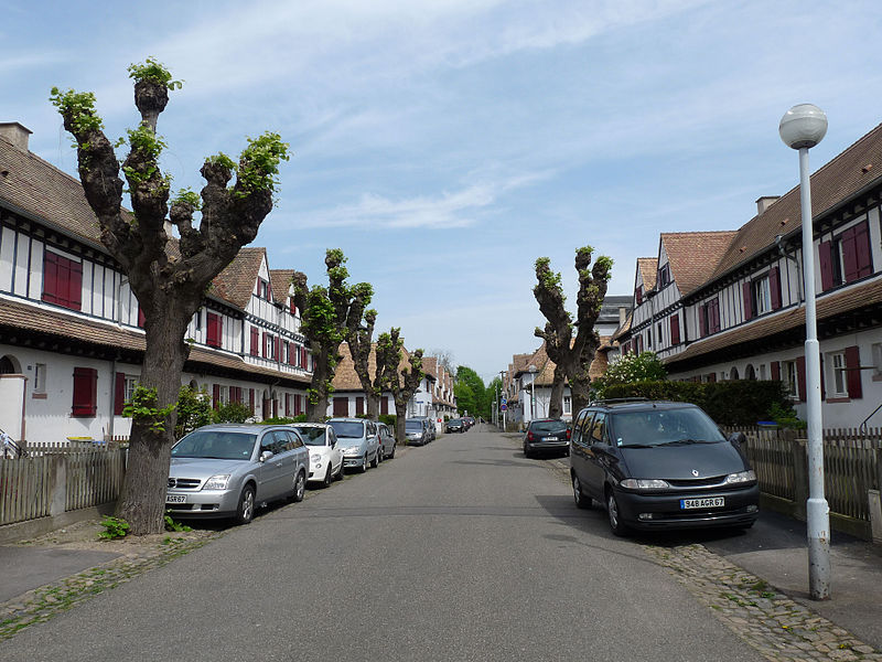 Tracé de la cité-jardin selon le plan annexé à l'arrêté ; façades et toitures des bâtiments d'origine et leurs annexes : clôtures sur rue, jardins, alignements d'arbres (cad. 27 106/1, 1et 3 rue du Coucou, 107/1, 5 et 7 rue du Coucou, 108/1, 9 et 11 rue du Coucou, 109/1, 13 et 15 rue du Coucou, 110/1, 10 et 12 rue du Coucou, 111/1, 6 et 8 rue du Coucou, 112/1, 2 et 4 rue du Coucou, 113/1, 1 et 3 allée David-Goldschmidt, 114/1, 5 et 7 allée David-Goldschmidt, 115/1, 9 et 11 allée David-Goldschmidt, 47, 5 et 7 rue des Serins, 179/47, 1 et 3 rue des Serins, 116/48, 1 et 3 rue de Breitlach, 117/48, 5 et 7 rue de Breitlach, 118/48, 9 et 11 rue de Breitlach, 119/48, 13 et 15 rue de Breitlach, 120/48, 17 et 19 rue de Breitlach, 121/48, 21 et 23 rue de Breitlach, 122/48, 17 et 19 rue de Lichtenberg, 123/48, 34 et 36 allée David-Goldschmidt, 124/48, 38 allée David-Goldschmidt, 125/48, 21 rue de Lichtenberg, 126/48, 23, 25 et 27 rue de Lichtenberg, 127/48, 40 et 42 allée David-Goldschmidt, 128/48, 44 allée David-Goldschmidt, 131/48, 58 et 60 allée David-Goldschmidt, 132/48, 44, 46, 48, 50, 52, 54 et 56 rue de Lichtenberg, 133/48, 38, 40 et 42 rue de Lichtenberg, 134/48, 36 rue de Lichtenberg, 135/48, 25, 27, 29, 31, 33, 35, 37, 39, 41 et 43 rue de Breitlach, 140/48, 22 et 24 rue de Breitlach, 141/48, 18 et 20 rue de Breitlach, 142/48, 14 et 16 rue de Breitlach, 143/48, 10 et 12 rue de Breitlach, 144/48, 6 et 8 rue de Breitlach, 145/48, 2 et 4 rue de Breitlach, 146/48, 30 et 32 allée David-Goldschmidt, 147/48, 13 et 15 rue de Lichtenberg, 148/48, 11 rue de Lichtenberg, 149/48, 28 allée David-Goldschmidt, 150/48, 16, 18, 20, 22, 24 et 26 allée David-Goldschmidt, 151/48, 5, 7 et 9 rue de Lichtenberg, 152/48, 12 et 14 allée David-Goldschmidt, 153/48, 8 et 10 allée David-Goldschmidt, 154/48, 1 et 3 rue de Lichtenberg, 155/48, 6 et 8 rue de Lichtenberg, 156/48, 10 et 12 rue de Lichtenberg, 157/48, 14, 16, 18, 20, 22, 24 et 26 rue Lichtenberg, 158/48, 28, 30 et 32 rue de Lichtenberg, 159/48, 34 rue de Lichtenberg, 160/48, 26, 28, 30, 32, 34, 36, 38, 40, 42 et 44 rue de Breitlach, 162/48, 25 rue du Stockfeld, 163/48, 15, 17, 19, 21 et 23 rue du Stockfeld, 164/48, 13 rue du Stockfeld, 165/48, 11 rue du Stockfeld, 166/48, 3, 5, 7 et 9 rue du Stockfeld, 167/48, 2 et 4 rue de Lichtenberg, 168/48, 4 et 6 allée David-Goldschmidt, 169/48, 2 allée David-Goldschmidt, 170/48, 1 rue du Stockfeld, 172/48, 24 et 26 rue du Stockfeld, 46 rue Anguleuse et 2 rue du Rossignol, 173/48, 4 et 6 rue du Rossignol, 174/48, 8 et 10 rue du Rossignol, 177/48, 4 rue des Serins, 178/48, 2 rue des Serins, 181/48, 6, 8, 10, 12, 14, 16, 18, 20, 22, 24, 26, 28, 30, 32 et 34 rue des Grives, 186/48, 5, 7 et 9 rue du Rossignol, 187/48, 1 et 3 rue du Rossignol, 188/48, 28, 30, 32 et 34 rue du Stockfeld, 189/48, 14 Gauchmatt ou 14 place des Colombes, 402/48, rue de la Griesmatt et place des Colombes, 136/48, 31 rue du Stockfeld, 411/48, 2 et 4 rue des Grives, 413/48, 36, 38 et 40 rue des Grives, 176/48, 22, 24, 26, 28, 30, 32, 34, 36, 38, 40, 42 et 44 rue Anguleuse, 175/48, 1, 3, 5, 7, 9, 11, 13, 15, 17, 19, 21, 23, 25, 29 et 31 rue des Grives) : inscription par arrêté du 20 décembre 1996