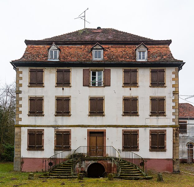 La ferme-château Le Bel, située 1-2 rue du Château-le-Bel à Lampertsloch (Bas-Rhin), est inscrite au titre des monuments historiques depuis 2008. Elle a été reconstruite à partir de 1805 sur un emplacement où s'élevaient déjà des bâtiments avant la Révolution; une girouette du laboratoire, aujourd'hui disparue, portait la date 1779. Antoine Le Bel, capitoul, acquit des terrains contenant des sables bitumineux et, pendant plus d'un siècle, la famille Le Bel développa l'exploitation minière tout en résidant dans la ferme-château. Marie Joseph Achille, fils d'Achille Le Bel, fit édifier la demeure dont le chambranle de la porte porte la date 1805. Dans l'état actuel, aucun bâtiment antérieur au XIXe siècle n'a survécu. L'ensemble comprend une grande demeure de plan carré avec un logement contigu daté 1832, un bâtiment en pan de bois élevé en 1813 — qui servit de laboratoire à Achille Le Bel et avait auparavant abrité une lingerie, un atelier de tonnelier et d'autres activités domestiques — ainsi qu'un groupe de trois bâtiments agricoles édifiés à partir de 1821 puis agrandis entre 1832 et 1835. La grille de l'escalier donnant accès au rez-de-chaussée porte les initiales J. A. L. Un style régionaliste prévaut pour l'ensemble des constructions. Au cours de la seconde moitié du XIXe siècle, la ferme-château et l'exploitation pétrolière connurent une grande prospérité. Projet original et précurseur, le domaine fut à la fois exploitation agricole, berceau de l'étude et de l'exploitation du pétrole, lieu de naissance de la chimie agricole et station agronomique expérimentale, constituant l'un des derniers témoignages architecturaux d'une aventure scientifique et industrielle alsacienne aux répercussions dépassant la région. Après la fermeture de la raffinerie, la demeure accueillit un restaurant, puis fut vendue à une chaîne thermale qui, pour l'instant, a renoncé à exploiter les sources d'eau présentes sur la commune.