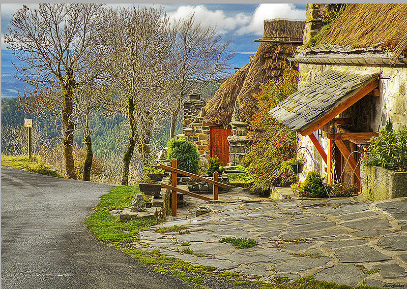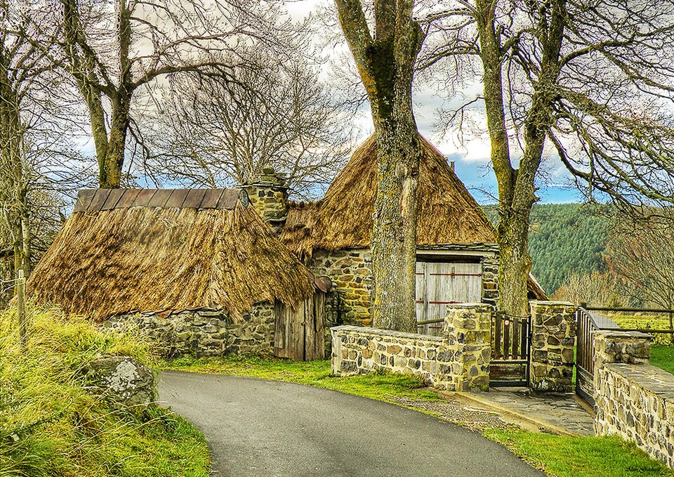 La ferme de Bigorre se situe à Saint-Front, dans le département de la Haute-Loire en région Auvergne-Rhône-Alpes. Elle appartient au hameau de Bigorre, l'un des rares villages à avoir conservé un ensemble substantiel de chaumières. La ferme illustre le modèle de la maison-bloc : une pièce d'habitation et une étable au premier niveau, et une grange à l'étage. Sa construction remonterait à la fin du XVIIIe siècle ou au XIXe siècle. Dans les années 1980, un écomusée a été mis en place grâce à l'engagement de Robert Cortial ; cette activité a cessé en 2022. La ferme, sa cour et une annexe en surplomb sont inscrites au titre des monuments historiques par arrêté du 31 décembre 1996. L'architecture rurale et les chaumières du Velay ont été étudiées notamment par Roger Nicolas et Jean Chervalier. La ferme de Bigorre est également documentée dans la base Mérimée et visible sur Wikimedia Commons, et figure parmi les monuments historiques de la Haute-Loire.