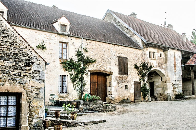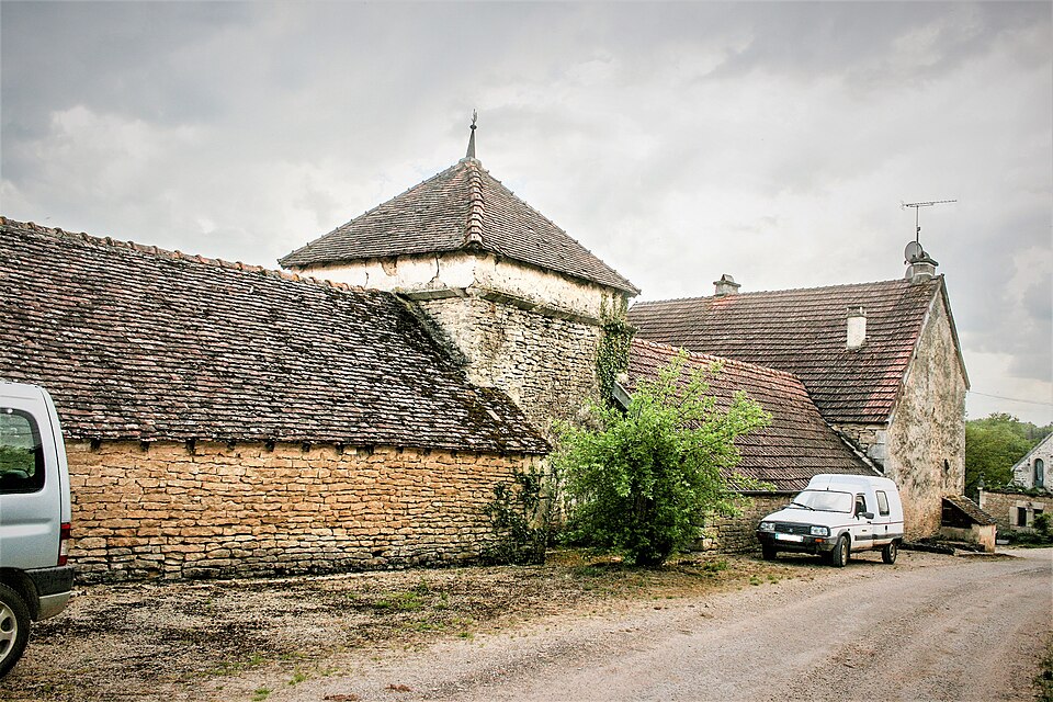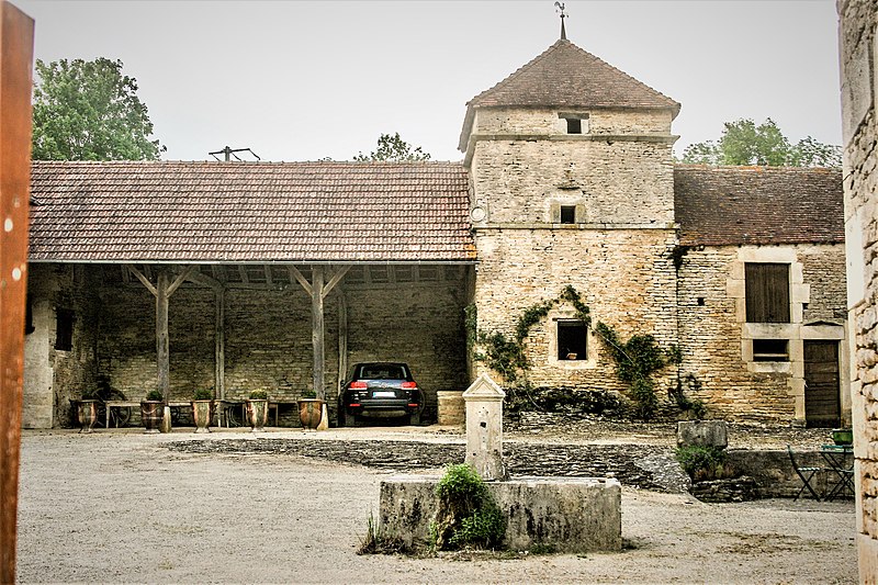 La ferme fortifiée d'Étalante, dite ferme de la Pothière, est un ensemble rural fortifié du XVIe siècle situé à Étalante, en Côte-d'Or. Elle se trouve à la limite ouest de la commune, en surplomb du val du Revinson, et s'atteint par un chemin sans issue partant de la RD 901. Le site montre un peuplement ancien : un gisement ossifère paléolithique a été mis au jour et la source de la Coquille, lieu de culte dès l'époque gauloise, a livré une statuette de divinité lingonne. Des ex‑voto gallo‑romains en pierre, des tessons de poterie et des fragments de mosaïque témoignent d'occupations postérieures. Construite en 1574, la partie la plus ancienne servait de rendez‑vous de chasse au Prince de Condé. Une coquille Saint‑Jacques sculptée sur la fenêtre de l'escalier indique par ailleurs qu'elle a accueilli des pèlerins sur le chemin de Compostelle. Le corps de ferme illustre l'architecture bourguignonne des XVe et XVIe siècles : au‑dessus du porche se situe une ancienne salle des gardes d'où l'on pouvait tirer sur d'éventuels assaillants. On remarque une tourelle d'escalier percée de meurtrières, une fontaine‑abreuvoir alimentée par une source au centre de la grande cour carrée et, à l'angle sud, un cadran solaire singulier. Le colombier remonterait au XVIIe siècle ; dans l'enclos se situent également un lavoir, des étables et des écuries. À l'intérieur, des plafonds à la française et des charpentes en chêne subsistent ; elles soutenaient autrefois une toiture en laves. Les façades, les toitures et le colombier sont inscrits au titre des monuments historiques par arrêté du 28 décembre 1988.