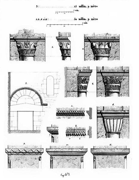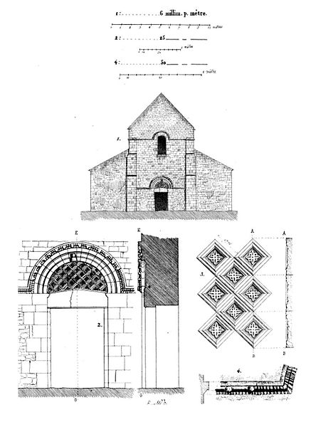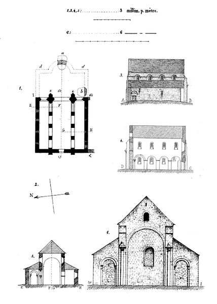 La chapelle Saint-Rémy présente des affinités avec les édifices bourguignons et s'apparente au type d'élévation rencontré près de Vignory. Son mur nord de collatéral a été remanié ; de plan rectangulaire à trois nefs, la nef est percée de quatre arcades en plein cintre qui reposent sur des supports carrés ou rectangulaires via de simples impostes. À la façade, le tympan réticulé repose sur un linteau en bâtière et est surmonté d'un arc de décharge ; l'ouverture latérale sud, plus sobre, rappelle celles des églises comparées. Les baies latérales sont coiffées de dalles de pierre dans lesquelles sont découpés les cintres. L'ornementation intérieure se limite à des masques aux amortissements des piliers et à des chapiteaux volumineux ornés de palmettes sur deux rangées et de faux godrons en ondulation, qui soulignent l'arc triomphal. Selon Emmanuel Woillez, la chapelle mesurerait 13,35 m de longueur sur 12,42 m de largeur, avec 8,70 m de hauteur intérieure et 12,00 m à l'extérieur.