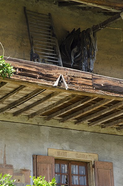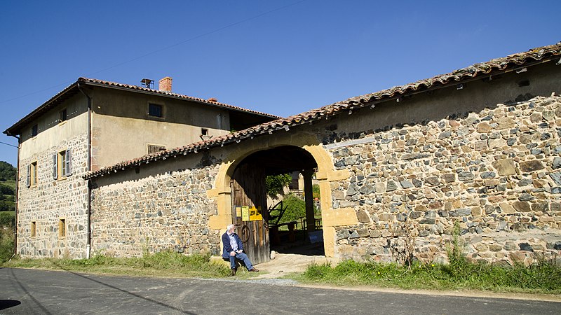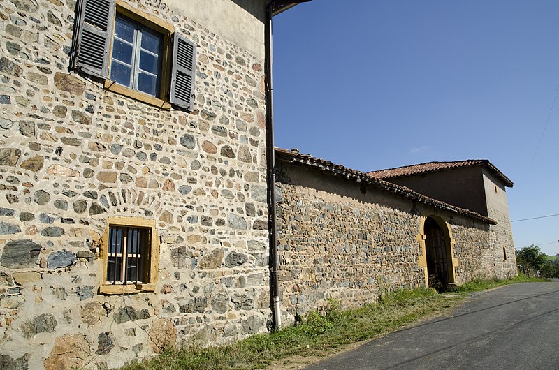 Grande ferme à cour fermée, caractéristique de la région au nord des monts du Lyonnais, dont l'intérêt est renforcé par un décor intérieur remarquablement préservé. La maison d'habitation fait face à l'écurie et à la grange, et un pressoir se situe au nord-est. La plus ancienne mention de la maison date de 1540. Au XVIIe siècle, trois propriétés furent réunies pour n'en former qu'une. D'importants travaux ont été entrepris vers 1822-1823. Le décor peint, intérieur et extérieur, ainsi que les boiseries, offrent des éléments précieux pour comprendre la vie des habitants.