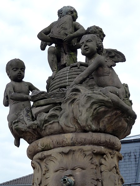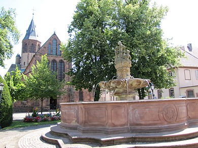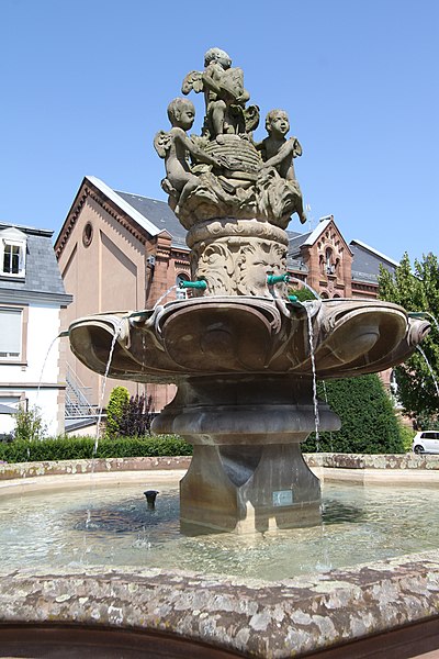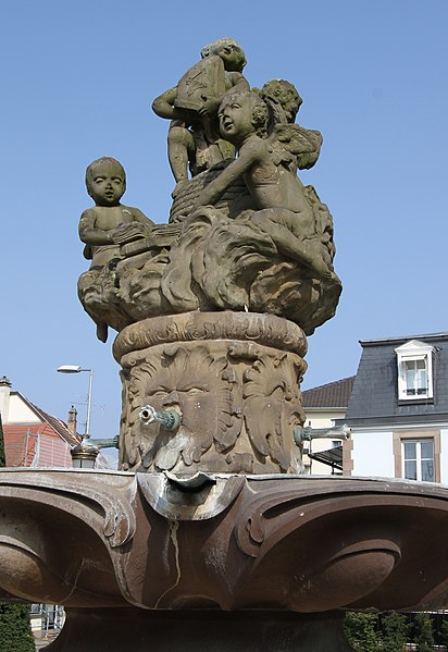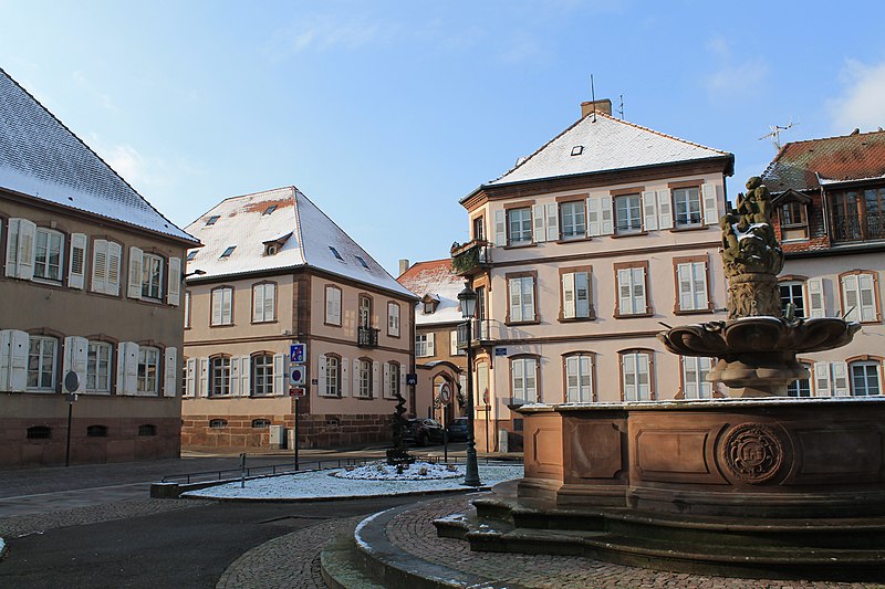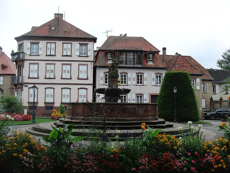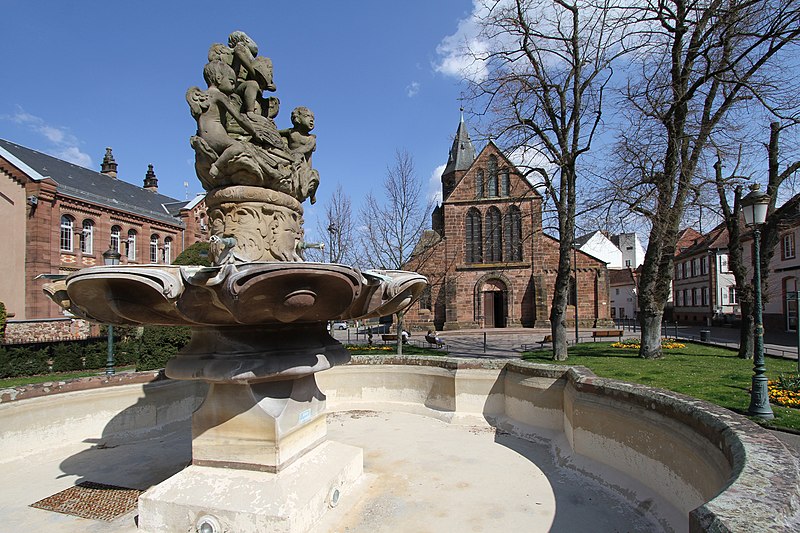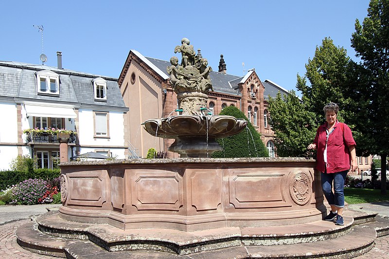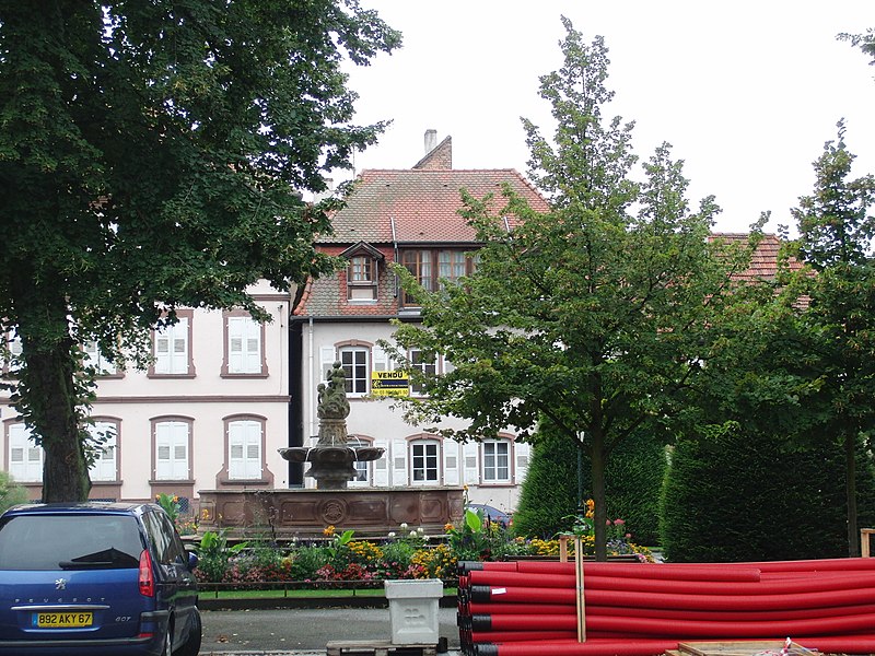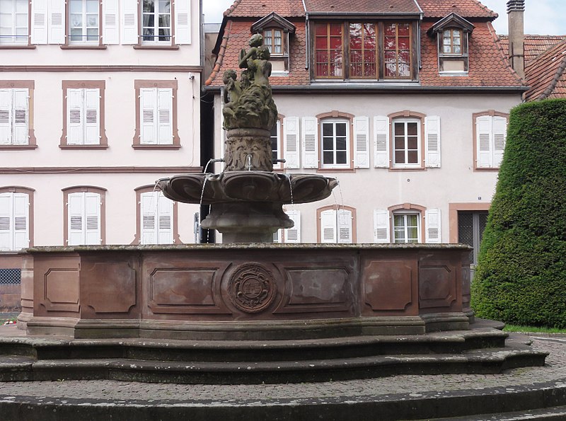La Fontaine aux Abeilles est un monument historique situé à Haguenau (Bas‑Rhin), implantée au carrefour du square Saint‑Georges, de la rue des Écoles et de la rue Saint‑Georges. Elle provient de l'ancienne abbaye cistercienne de Neubourg, dans la commune de Dauendorf, et aurait été commanditée par l'abbé FR JOS SPECHT entre 1760 et 1777. En 1866, la fontaine fut déplacée dans la commune d'Ueberach ; elle occupe son emplacement actuel à Haguenau depuis 1886. L'édifice est classé au titre des monuments historiques depuis 1984. Pour en savoir plus, on peut se reporter à l'article de M. Sandel « La fontaine aux abeilles, Haguenau » (Fruits et abeilles, 1986, n°10) et aux ressources disponibles sur Wikimedia Commons, au dossier Mérimée et aux portails consacrés aux bassins, aux fontaines, aux monuments historiques et au Bas‑Rhin ; les listes des monuments historiques de Haguenau et du Bas‑Rhin ainsi que la notice sur l'abbaye de Neubourg sont également pertinentes.