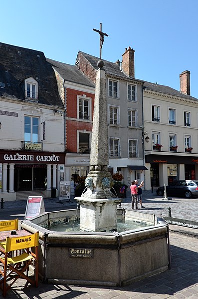 La fontaine a été établie à la suite d'une pétition en 1477. L'édicule actuel aurait été construit aux frais de Robert Hoyau en 1651.