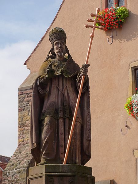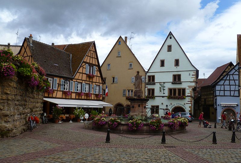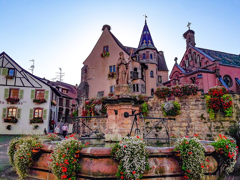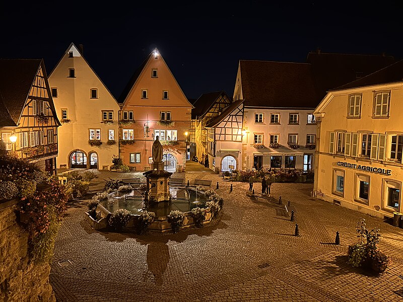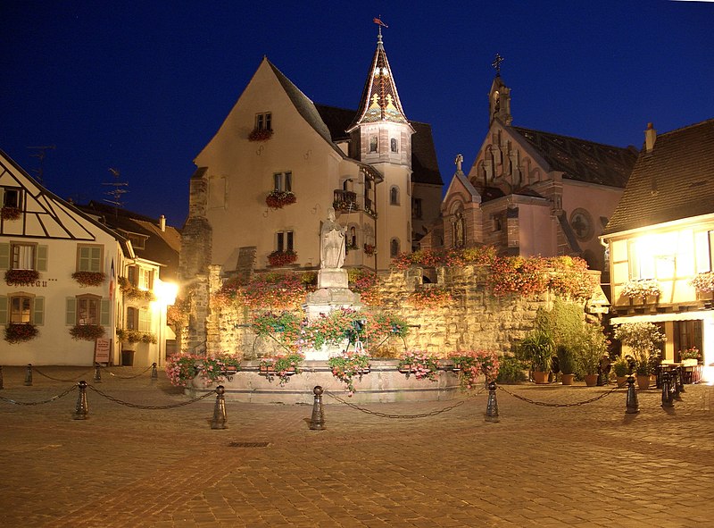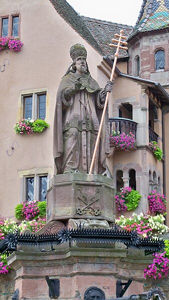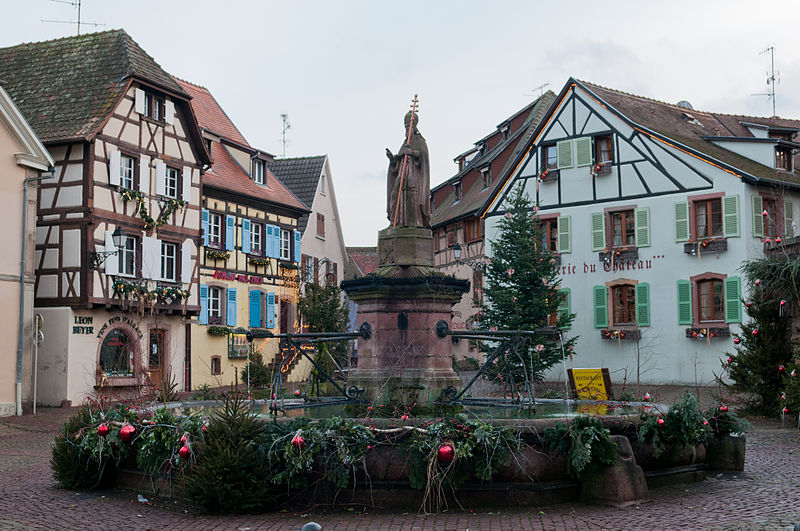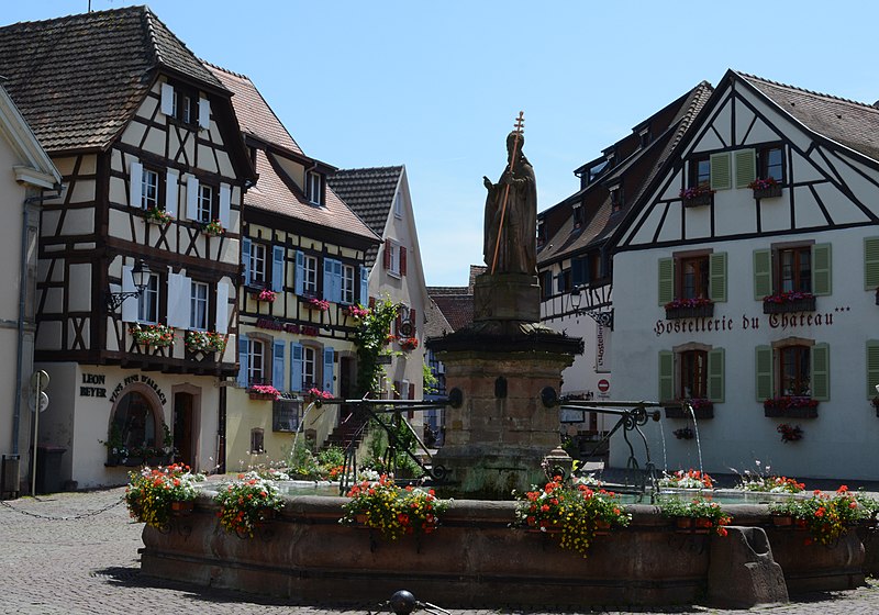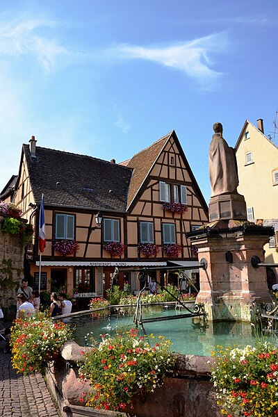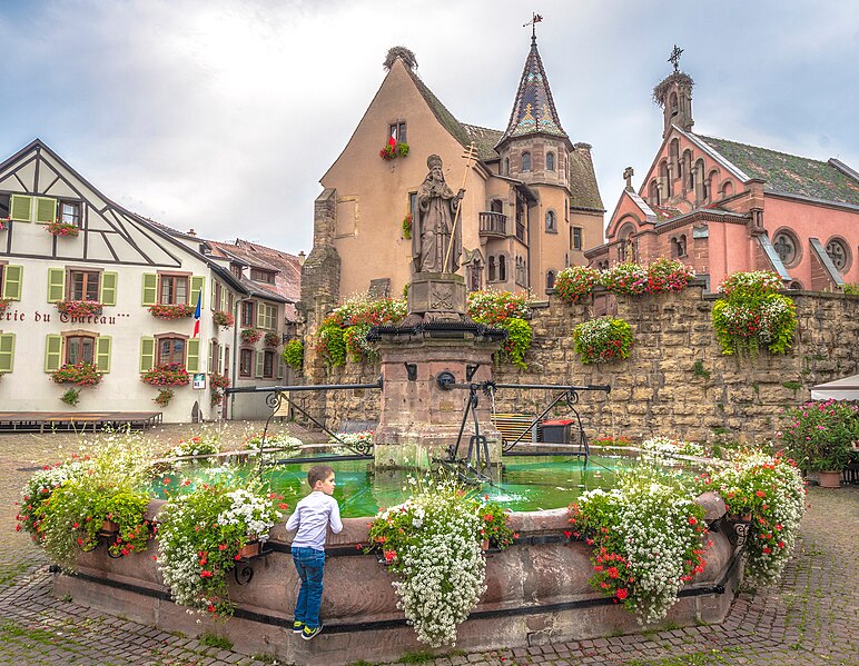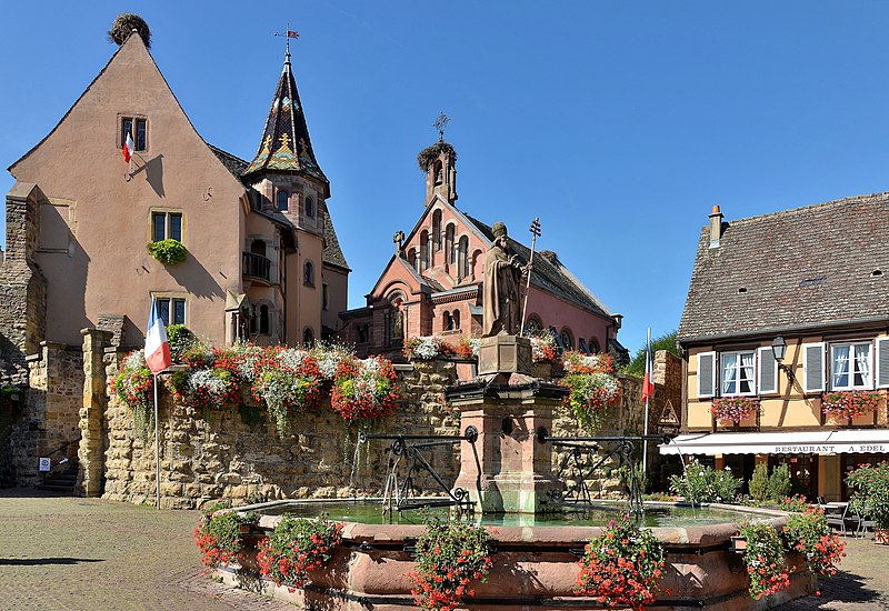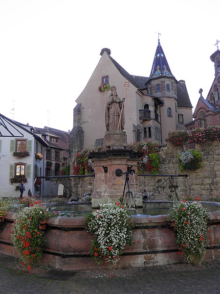 La fontaine datée de 1557, située devant l'École des Filles à Eguisheim (Haut-Rhin), se trouve à l'intersection de la Grand-Rue et de la rue Monseigneur Stumpf. Elle est inscrite au titre des monuments historiques depuis 1934. Pour en savoir plus, consulter la base Mérimée, le portail des bassins et des fontaines, le portail des monuments historiques français et le portail du Haut-Rhin ; la fontaine figure également dans la liste des monuments historiques du Haut-Rhin.