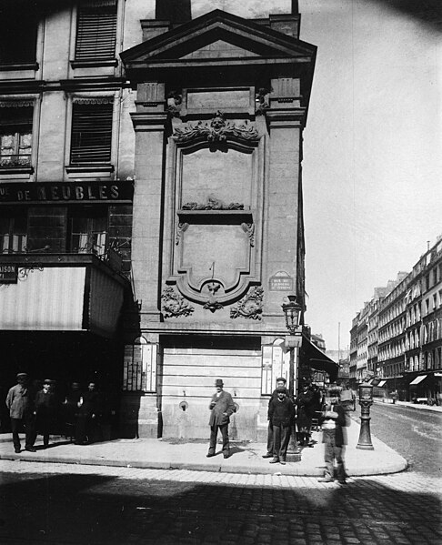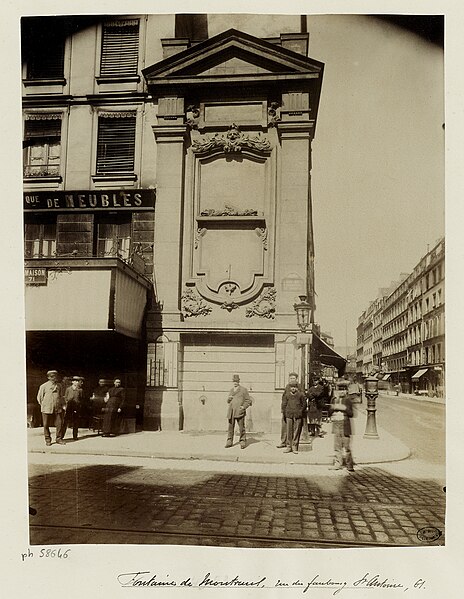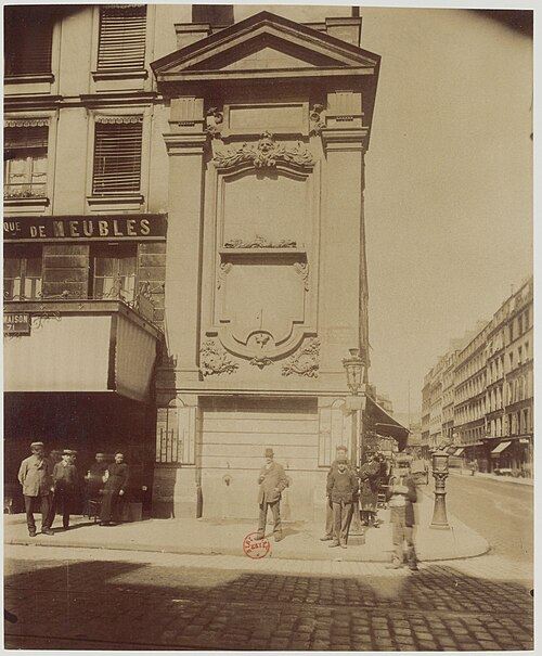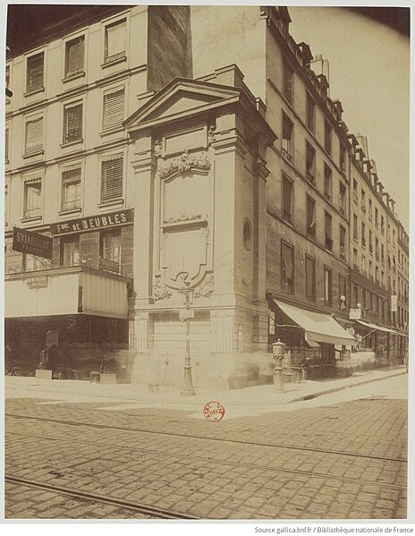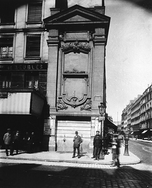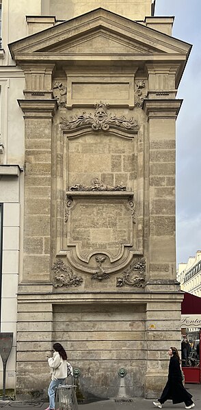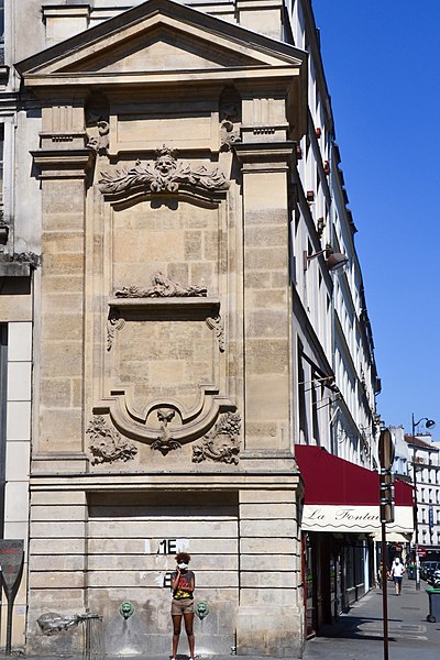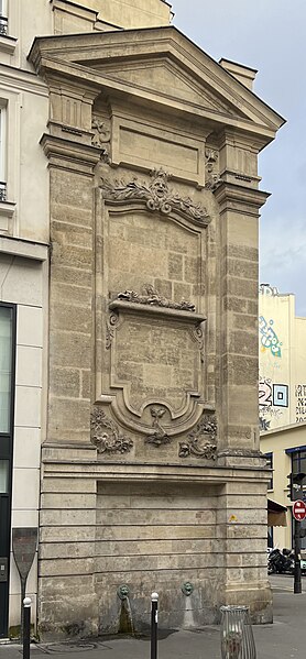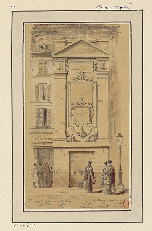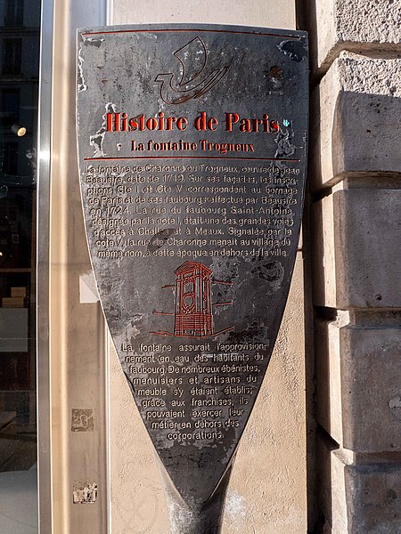 La fontaine de Charonne, aussi appelée fontaine Trogneux, se situe à l'angle de la rue du Faubourg-Saint-Antoine et de la rue de Charonne dans le 11e arrondissement de Paris. Classée au titre des monuments historiques depuis le 29 septembre 1995, elle a été conçue pour alimenter en eau les habitants du faubourg Saint-Antoine dans le cadre d'un plan de construction institué par une ordonnance de Louis XV visant cinq fontaines pour le quartier. Édifiée après les lettres patentes de 1719 et avant 1724, sa datation est parfois précisée par certaines sources entre 1719 et 1721. La réalisation de ces ouvrages fut confiée à Jean Beausire, maître général, contrôleur et inspecteur des bâtiments de la ville, et les marques de bornage gravées sur les deux faces de la fontaine témoignent des limites de la ville déterminées à cette époque. Alimentée d’abord par la pompe Notre-Dame puis par la pompe à feu de Chaillot, la fontaine fut remontée entre 1806 et 1810, sous le Premier Empire, et restaurée à nouveau en 1963. Elle doit son nom à un brasseur du faubourg, Trogneux. Construite en alignement des immeubles et en coin de rue, elle présente une imposante façade à pilastres et moulures d'environ douze mètres de hauteur, surmontée d'un fronton triangulaire dans un style Louis XV. La décoration comprend des dauphins, des volutes et des encadrements moulurés; près du sol, deux mascarons de bronze à tête de lion servent d'orifices d'écoulement et rejettent l'eau dans une grille au sol.