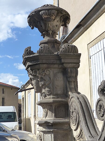 Le nom « fontaine de l'Éperon » désigne au moins deux fontaines publiques distinctes, l'une en France et l'autre à Florence en Italie. En France, la fontaine s'inscrit dans une campagne d'aménagement urbain sous le Second Empire ; bien qu'elle soit datée 1856, elle a probablement été édifiée entre mars 1857 et septembre 1858. En 1857, la municipalité de Billom a voté la création de trois nouvelles fontaines, dont celle de l'Éperon ; le projet a été conçu par l'architecte clermontois H. Taché et réalisé par le sculpteur Pierre Béraud. Le traité entre la commune et le sculpteur date de mars 1857 et le procès-verbal de réception des travaux en septembre 1858. Le décor de cette fonte mêle des réminiscences de l'antiquité romaine et témoigne du goût éclectique de l'architecte, peu courant dans le Puy-de-Dôme. Le projet initial prévoyait une tête de grenouille crachant l'eau dans le bassin, remplacée lors de la réalisation par un masque de femme. À Florence, la Fontana dello Sprone se situe entre la Via dello Sprone et le Borgo San Jacopo, sous une terrasse de la Casa dei Frescobaldi, et est considérée comme l'une des fontaines publiques les plus remarquables et élégantes de l'Oltrarno. L'éperon en pierre porte un bouclier aux armes des Médicis et une fontaine dont le jet sort d'un mascaron se déversant dans un bassin en forme de coquille. Le mascaron, de style maniériste tardif, a longtemps valu à la fontaine une attribution à Bernardo Buontalenti ; on suppose aujourd'hui qu'elle fut érigée à la fin des travaux de l'aqueduc commandé par Ferdinand II en 1638-1639 et exécutée par le sculpteur Francesco Generini. L'élément est mentionné dès 1608, dans le cadre des aménagements liés au mariage de Côme II de Médicis et de Marie-Madeleine d'Autriche. La fontaine florentine a été restaurée au début du XIXe siècle par Giuseppe Del Rosso, puis de nouveau en 1944 après des dommages de guerre. Elle se caractérise par de grandes spirales élégantes sur le bord du bassin en coquille ; l'eau jaillit du mascaron, descend dans ce bassin, puis s'écoule vers un réservoir inférieur destiné à la collecte et à l'évacuation.