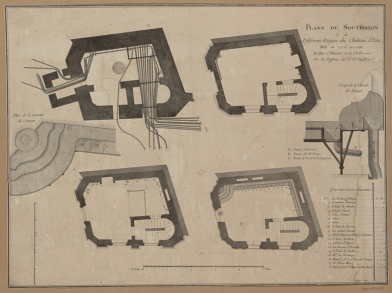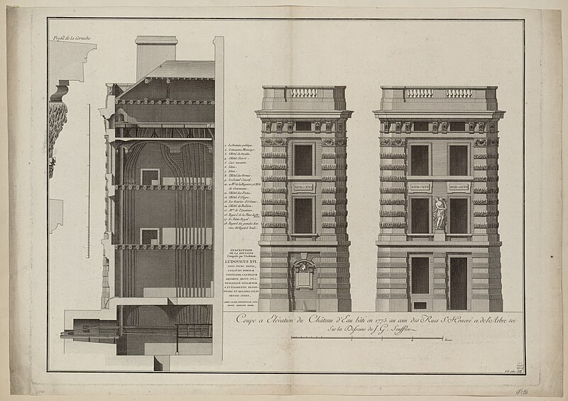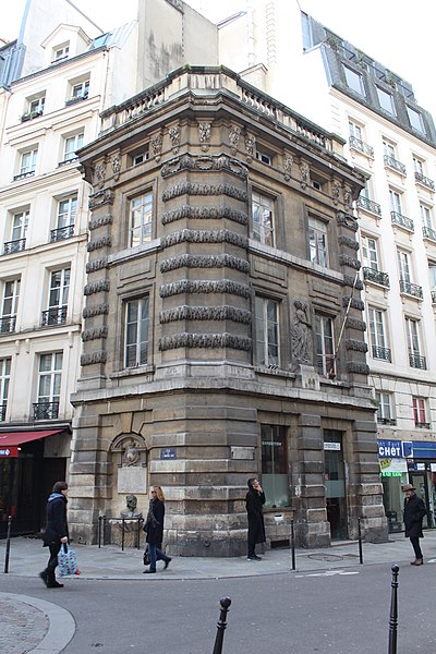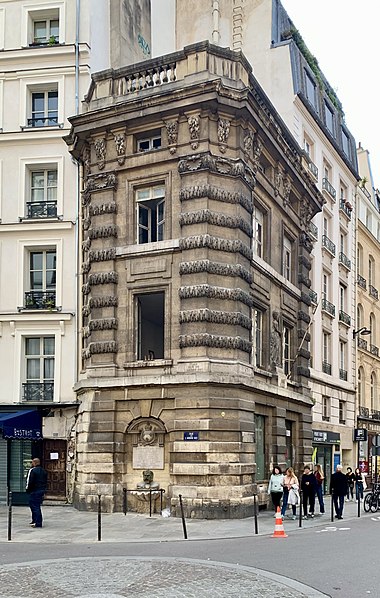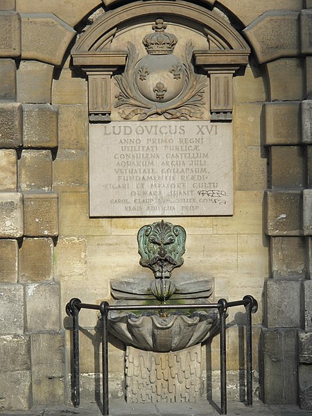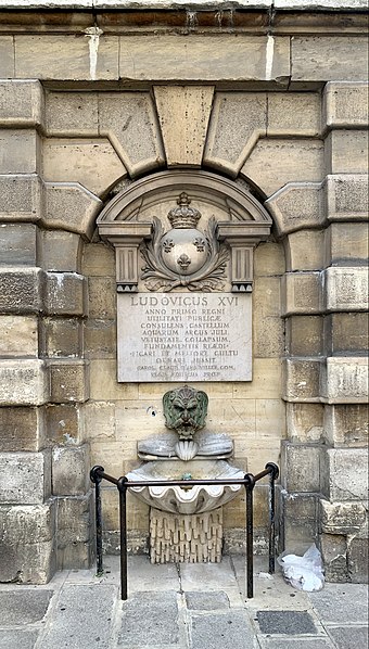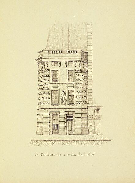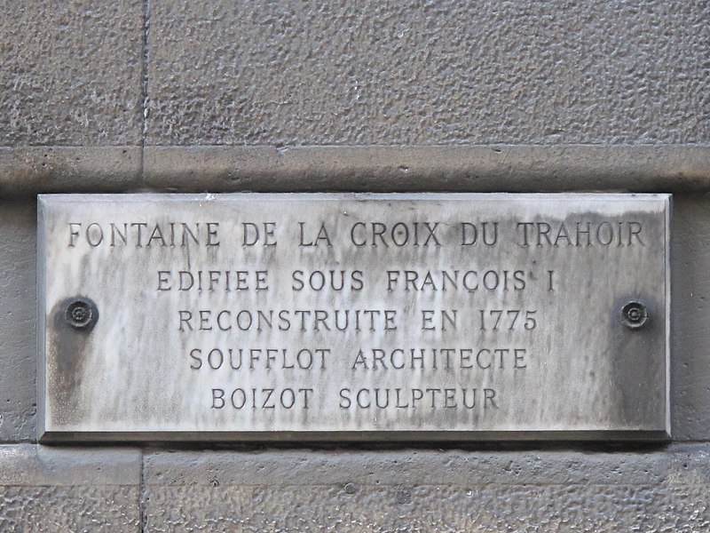 La première fontaine de la Croix-du-Trahoir, réalisée par le sculpteur Jean Goujon à l'initiative de François Ier, date de 1529 ; elle a été reconstruite en 1606 puis déplacée de quelques mètres en 1636 pour améliorer la circulation dans la rue Saint-Honoré. Au XVIIIe siècle, Jacques-Germain Soufflot a inscrit la fontaine dans un édifice polygonal élevé à l'intersection des rues de l'Arbre-Sec et Saint-Honoré ; il confia à Louis-Simon Boizot la sculpture d'une nymphe visible depuis la rue Saint-Honoré, inspirée des figures de Jean Goujon pour la fontaine des Innocents. L'ouvrage présente un bossage en stalactites rappelant la Fontaine Médicis et l'écoulement de l'eau est assuré par un mascaron.