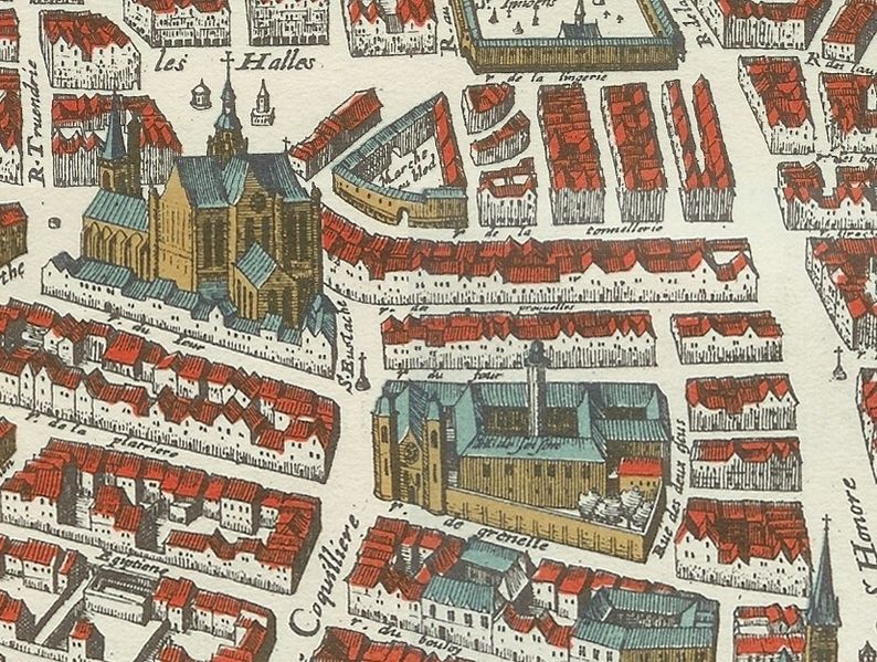 La place de la Croix-du-Trahoir était, pendant plusieurs siècles, un carrefour majeur aux abords de Paris, à la croisée des grandes voies nord-sud et est-ouest. Son nom, initialement « tiroir », serait lié au fait qu'on y tirait et étendait des étoffes. La place a été le théâtre d'exécutions publiques relevant de la juridiction de Saint-Germain-l'Auxerrois jusqu'en 1698, notamment celles de faux-monnayeurs en raison de la proximité de l'atelier de frappe. Des luthériens y furent brûlés vifs le 21 janvier 1535 et le marquis de Bonnesson y fut décapité le 15 décembre 1659 ; jusqu'en 1739 on y pratiquait encore des châtiments corporels tels que la coupure des oreilles des serviteurs indélicats. La place comportait une roue de supplice et une potence, parfois confondues avec l'« arbre sec », confusion qui est une erreur car l'« arbre sec » relève de récits mythiques. Une croix ancienne, destinée à favoriser les dernières prières des condamnés, occupait le site jusqu'à sa destruction en 1789 ; son soubassement en pierre servait aussi d'étal pour des bouchers et des marchands de légumes.