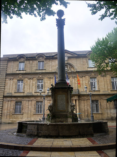 La fontaine de la place de l'Hôtel-de-Ville se situe à Aix-en-Provence (Bouches-du-Rhône). Elle est classée au titre des monuments historiques depuis 1905. Pour en savoir plus, consulter la base Mérimée, le portail des bassins et fontaines, le portail des monuments historiques français ou le portail d'Aix-en-Provence, ainsi que la liste des monuments historiques d'Aix-en-Provence.