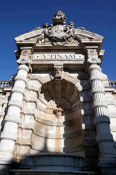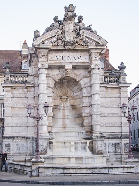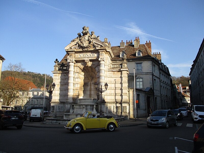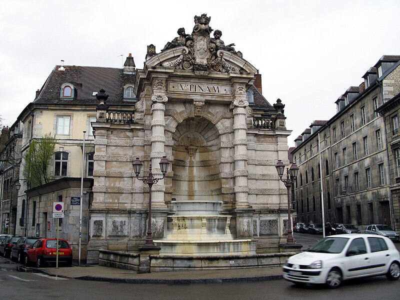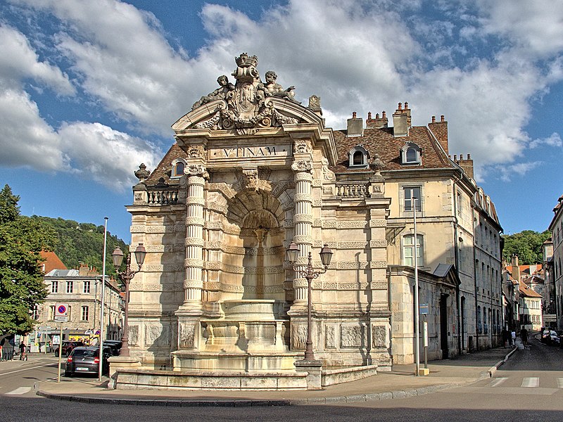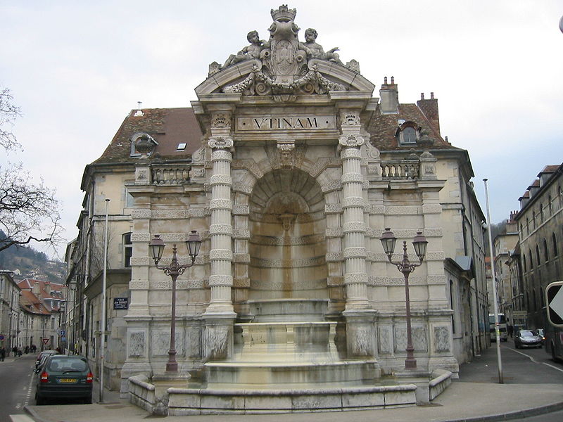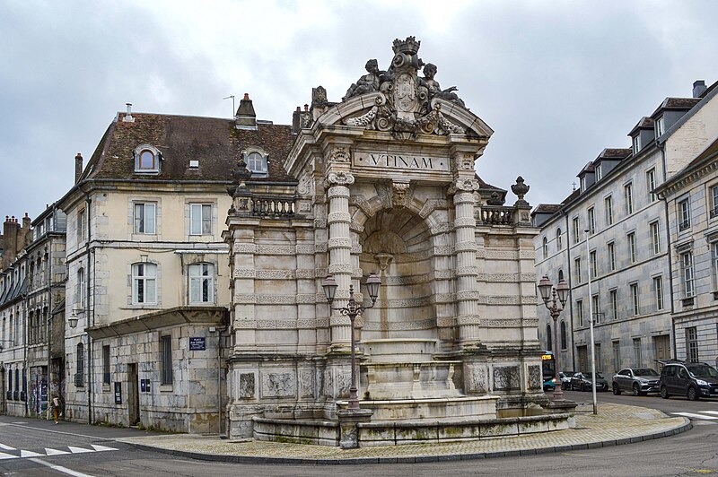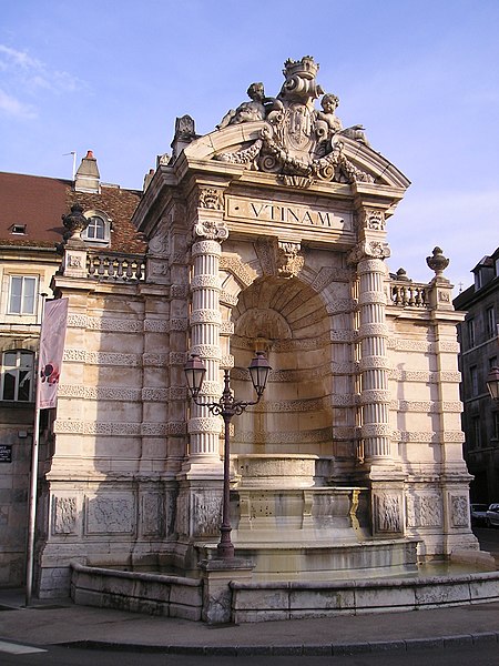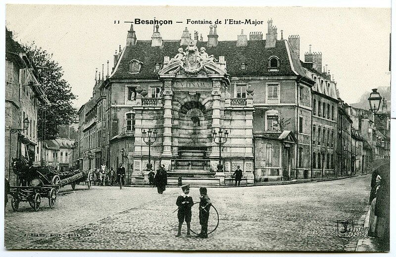 La fontaine monumentale, appelée aussi fontaine de l'État-Major, se situe sur la place Jean-Cornet à Besançon (Doubs). La mise en eau du centre-ville fut améliorée après la construction du pont de Bregille en 1689, puis par la pose de conduites en troncs de bois puis en fonte au début du XVIIIe siècle, ce qui permit la création de trois nouvelles fontaines, dont celle de la future place Jean-Cornet. L'hôtel de la Vicomté, élevé pour le prince d'Isenghien et achevé en 1736, occupe un angle de la place ; c'est à proximité que Charles Joseph Foresse réalisa une première fontaine-monument inaugurée trois ans après. Cette fontaine était ornée d'un groupe en bronze sculpté par Louis Jacques Herpin représentant des dauphins jouant avec des enfants ;, comme d'autres œuvres métalliques de la ville, ce groupe fut fondu pendant la Révolution pour la fabrication de monnaie. Peu entretenue et fortement dégradée, la fontaine originelle fut déconstruite et remplacée en 1900 par l'édifice actuel, nommé « de l'État-Major » en référence à l'ancien nom de la place. Sur des plans d'Étienne Bernard Saint-Ginest, le sculpteur Albert Pasche conçut la nouvelle fontaine monumentale qui porte sur son fronton l'une des devises de la ville, Utinam. À l'origine pourvue d'un urinoir, celui-ci a été retiré ultérieurement. La fontaine a été inscrite à l'inventaire des monuments historiques le 21 octobre 1937. L'hôtel de la Vicomté fut par ailleurs surélevé d'un étage en 1771 par Claude Joseph Alexandre Bertrand. La fontaine actuelle, haute de plusieurs mètres, est adossée au mur d'angle et masquée en grande partie par celui-ci ; il s'agit d'une structure mixte faisant office de fontaine et de lavoir.