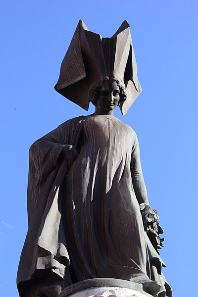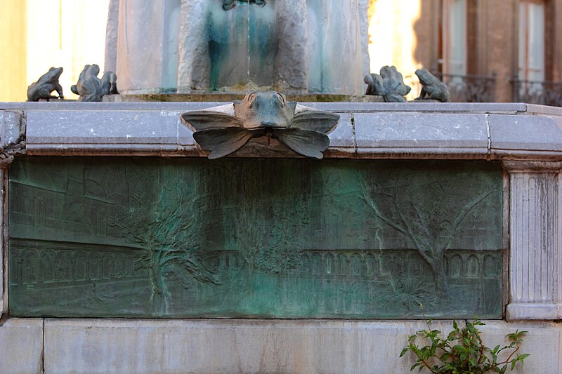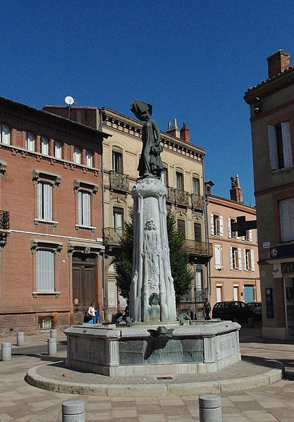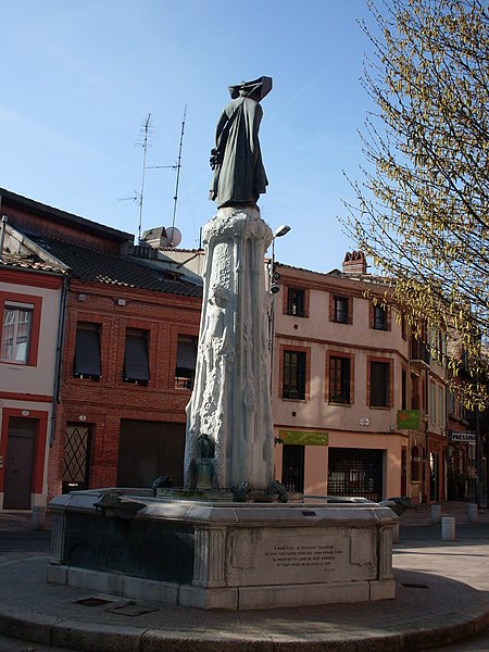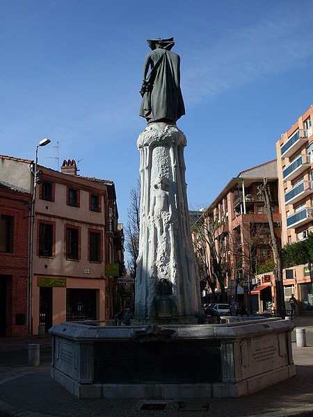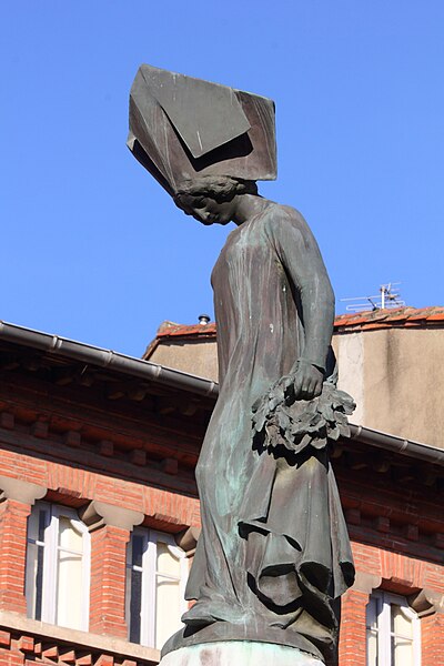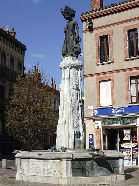 La fontaine Clémence Isaure, dite La Poésie romane, est une œuvre de Léo Laporte-Blairsy située place de la Concorde, dans le quartier des Chalets à Toulouse. De style Art nouveau, elle associe motifs floraux (églantines, violettes, soucis) et motifs animaliers en bronze (tortues, libellules, grenouilles), allégories de l'esprit des sources, à des formes épurées et géométriques, avec une vasque de marbre et un hennin marquant la figure. La statue, disposée au sommet d'une colonne au centre du bassin, se tient debout, drapée d'une robe simple et fluide ; sa sensualité discrète évoque le corps féminin et le lien entre la terre et les hommes. La fontaine a été financée par un don d'Octave Sage, pharmacien de la place, le 10 mai 1905 ; son but était à la fois esthétique et utilitaire. Un concours organisé en 1910 fut remporté par Léo Laporte-Blairsy, l'architecte Guitard et l'entrepreneur Portet. Une première maquette montrant le personnage tête nue fut rejetée par la population ; le hennin démesuré de la version retenue est peut-être une réponse sarcastique du sculpteur. Laporte-Blairsy essuya de vives critiques pour une représentation jugée fantaisiste, mais, selon Pierre Salies, la statue devait être une allégorie de la poésie romane plutôt qu'un portrait de Clémence Isaure. La fontaine fut inaugurée le 3 mai 1913, à l'occasion de l'anniversaire des premiers jeux floraux. À son inauguration, la modernité de la statue choqua de nombreux Toulousains qui ne reconnaissaient pas l'image de Clémence Isaure déjà représentée à l'Académie des Jeux Floraux, à l'Hôtel d'Assézat. La nouvelle statue visait cependant à restaurer une image médiévale jugée plus conforme sur le plan historique. L'évêque de Toulouse, qui avait d'abord envisagé d'interdire la statue, se laissa convaincre et toléra finalement sa présence. Comme d'autres sculptures de bronze de la ville, elle fut démontée en 1942 pour échapper à la réquisition et à la fonte, puis retrouvée intacte à la fin de la Seconde Guerre mondiale. Chaque 31 décembre, les habitants du centre-ville et du quartier fleurissent la statue pour le 1er janvier ; les fleurs, non coupées, sont déposées sur l'eau et flottent. Les grenouilles grimpant sur la colonne établissent un lien avec l'eau et suggèrent une ascension symbolisant le renouveau. Le centenaire de la statue a été fêté par les habitants et la tradition du fleurissement perdure ; il est question de repeindre la statue pour lui rendre ses couleurs d'origine. Le bassin comporte des ornements en bronze et plusieurs plaques, notamment un legs Sages aux Jeux Floraux de la ville de Toulouse accompagné du blason de la ville, des représentations en bronze du cloître du musée des Augustins, du Pont-Neuf et du Pont Saint-Pierre avec son ancien tablier, ainsi que des inscriptions poétiques en français et en occitan, extraits de Pipert et de Mengaud.