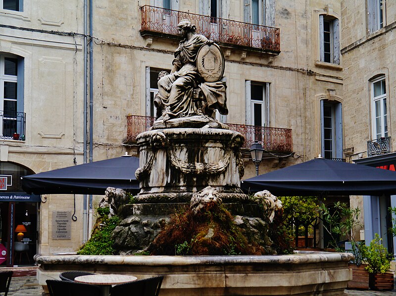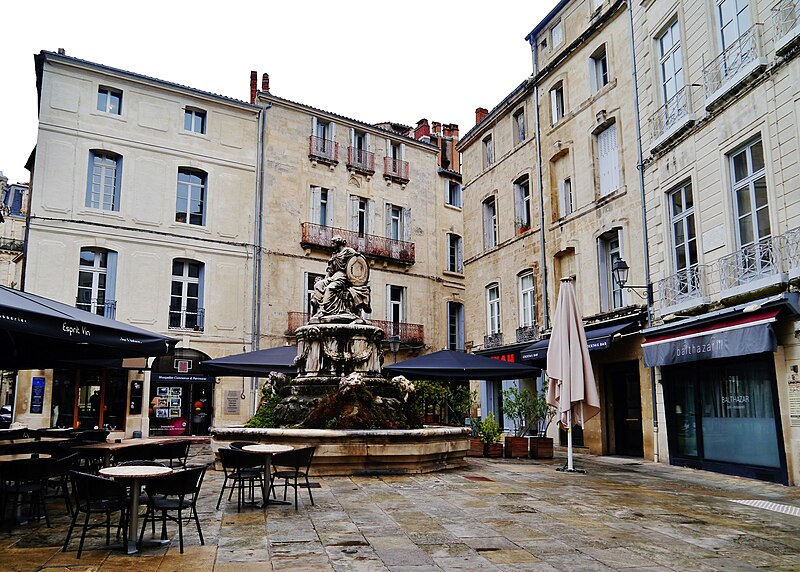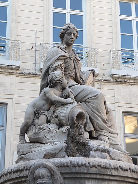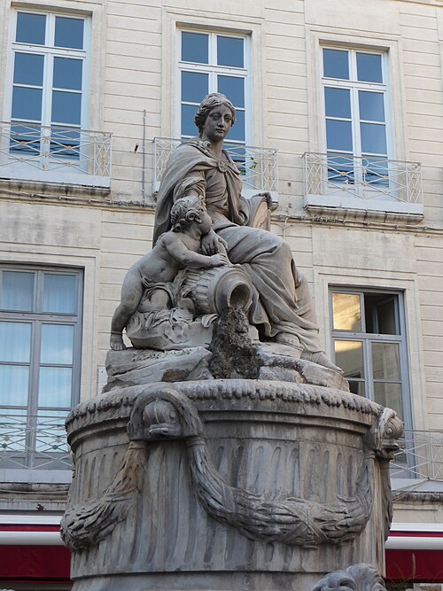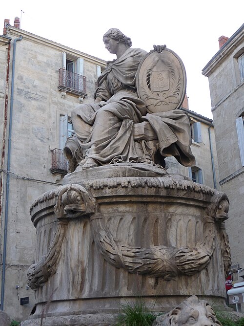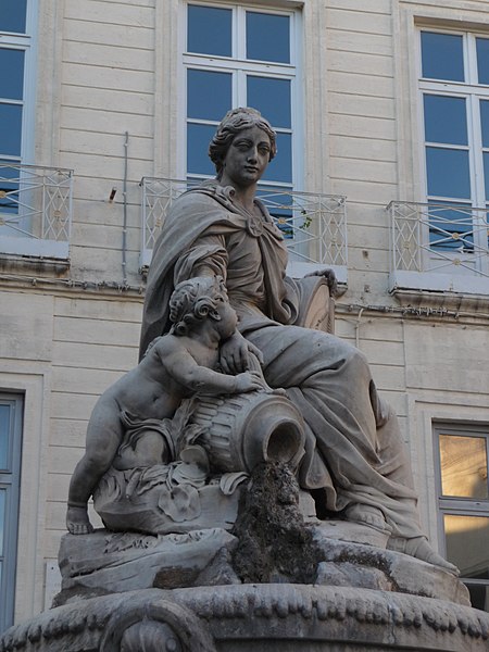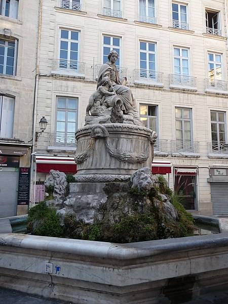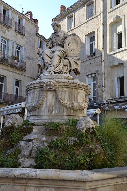 Cette fontaine appartient à un ensemble de trois fontaines monumentales commandées en 1770 par le Conseil de Ville. Destinée à orner la place de l'Intendance — l'actuelle place Chabaneau — elle a été commandée au sculpteur Jean Louis Journet, originaire du Vigan, en 1773 et installée en 1776 ; elle porte la date 1775.