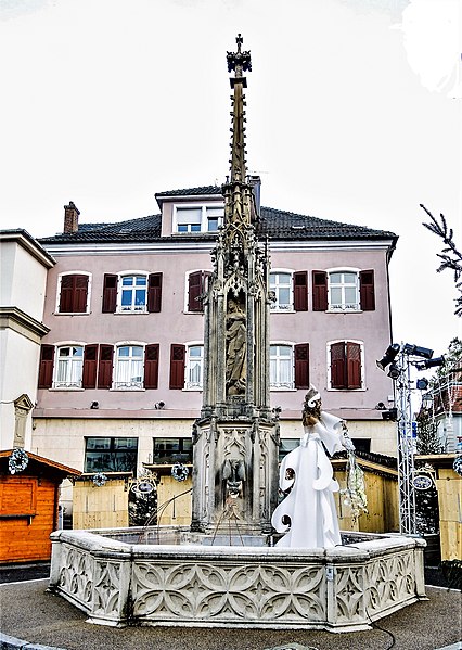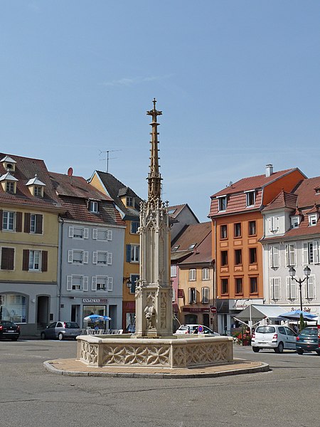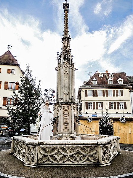 La fontaine de la Vierge, située place de la République à Altkirch (Haut-Rhin), a été élevée au milieu du XIXe siècle en réutilisant des éléments du XVe siècle, notamment la statue de la Vierge et une partie de son pinacle. Son bassin hexagonal, construit en 1857, présente sur ses six faces des réseaux aveugles en arc de cercle de style gothique flamboyant. Au centre se dresse un fût hexagonal orné d'arcatures flamboyantes qui abritent trois gargouilles en gueule de dragon, alternant avec trois écus couronnés aux armes de la ville et portant l'inscription « Anno Domini, 1857 ». Au-dessus du soubassement, un dais ajouré à réseau gothique, contemporain du bassin, est couronné par un pinacle à crochets d'un décor plus ancien et terminé par un grand fleuron. Sous ce dais se trouve la statue de la Vierge, qui décorait auparavant l'angle sud-est du chœur de l'ancienne église démolie en 1844 ; la fontaine a été érigée à l'emplacement de l'abside de cette église. Le dessin de l'ensemble est dû à Charles Goutzwiller. L'édifice et la statue bénéficient d'une protection au titre des monuments historiques depuis le 9 mars 1987.